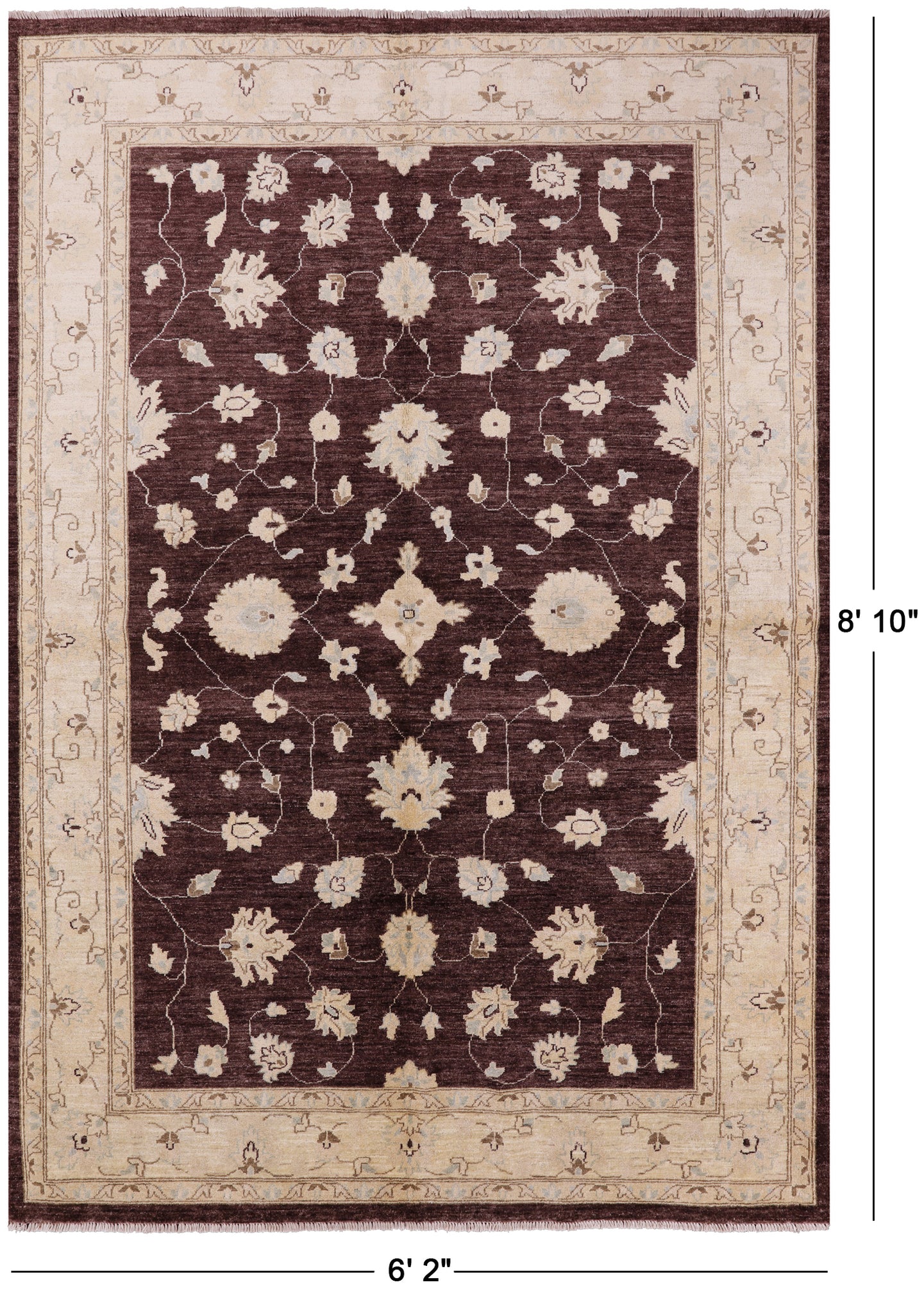Brown Peshawar Hand Knotted Wool Rug - 6' 2" X 8' 10"