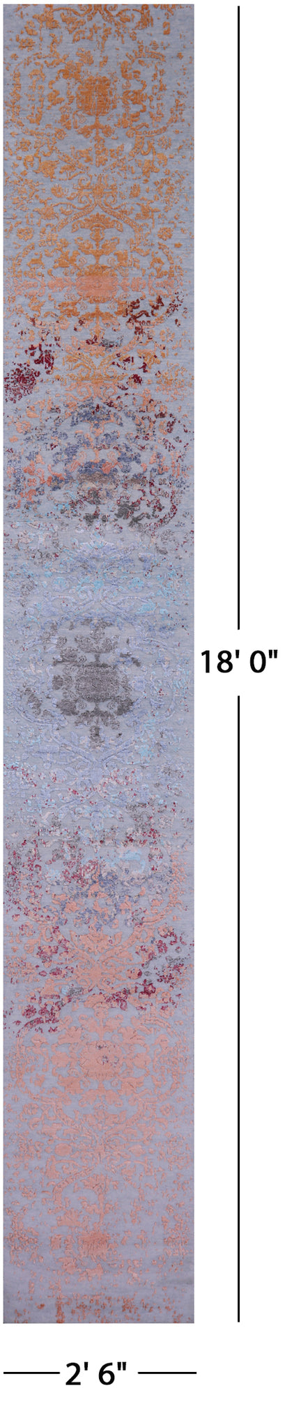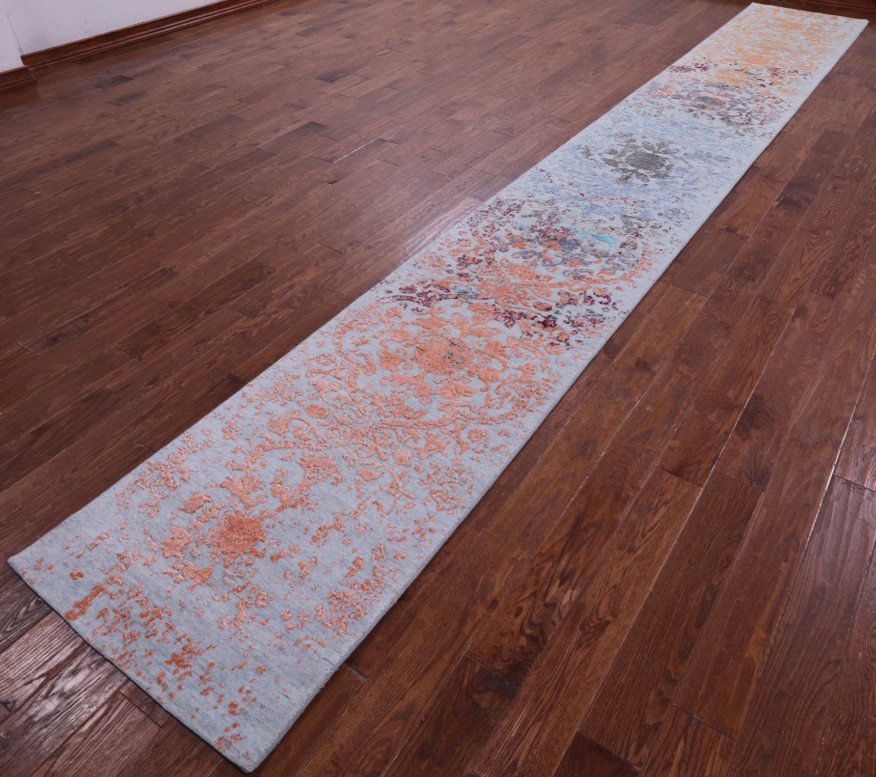 Contemporary Handmade Wool & Silk Runner Rug - 2' 6" X 18' 0"