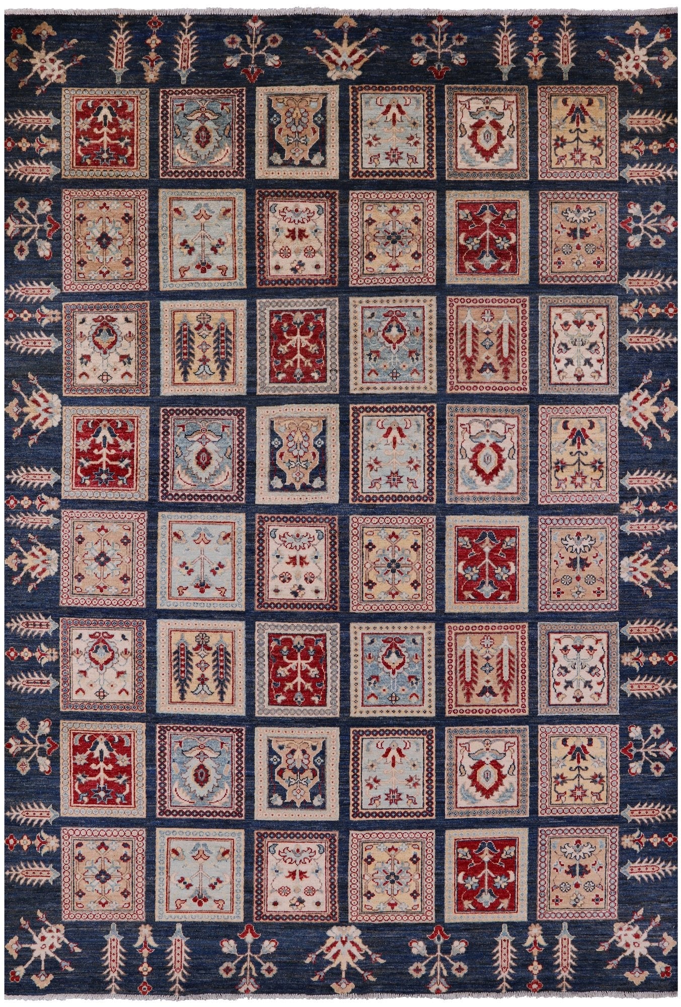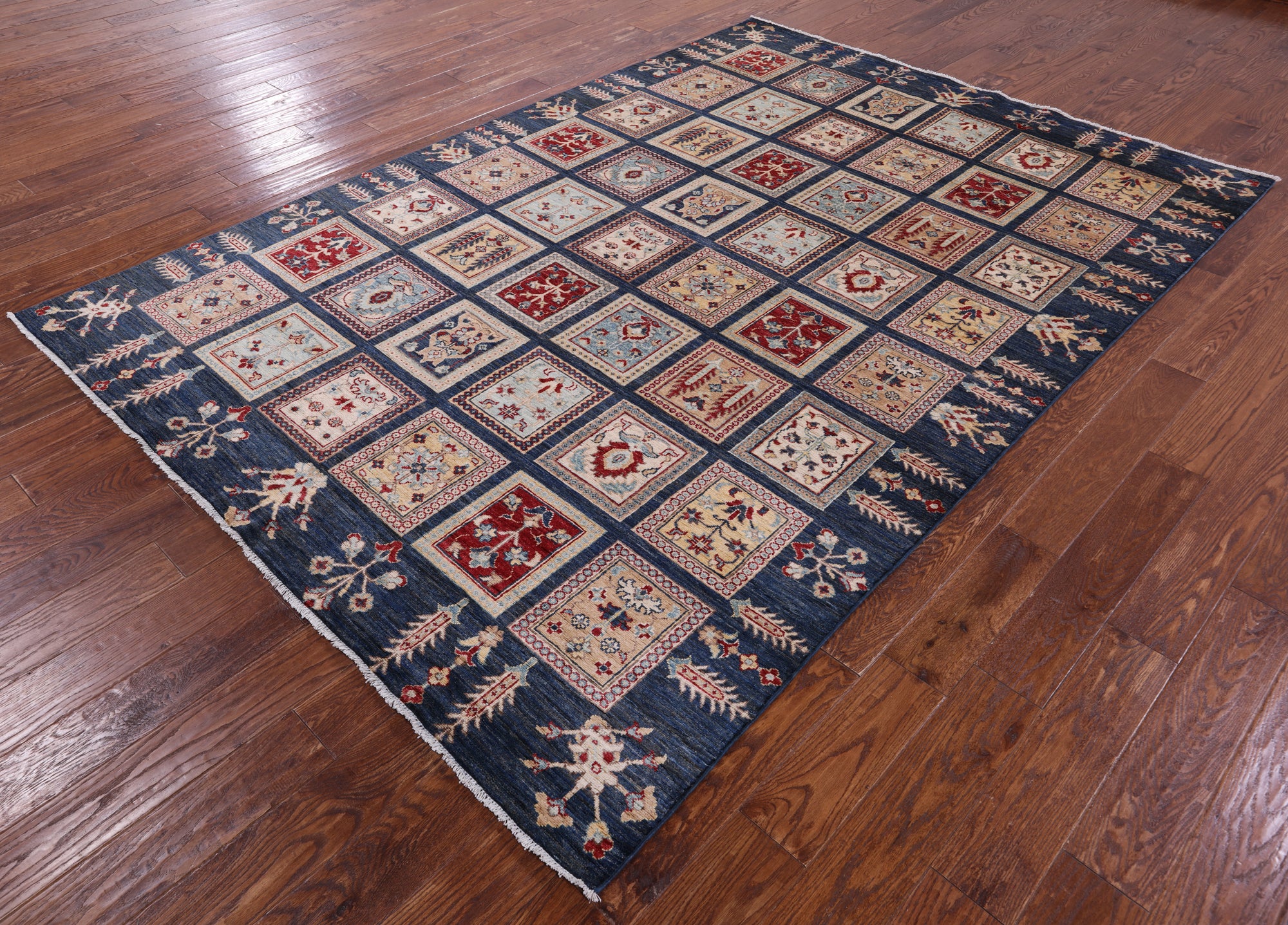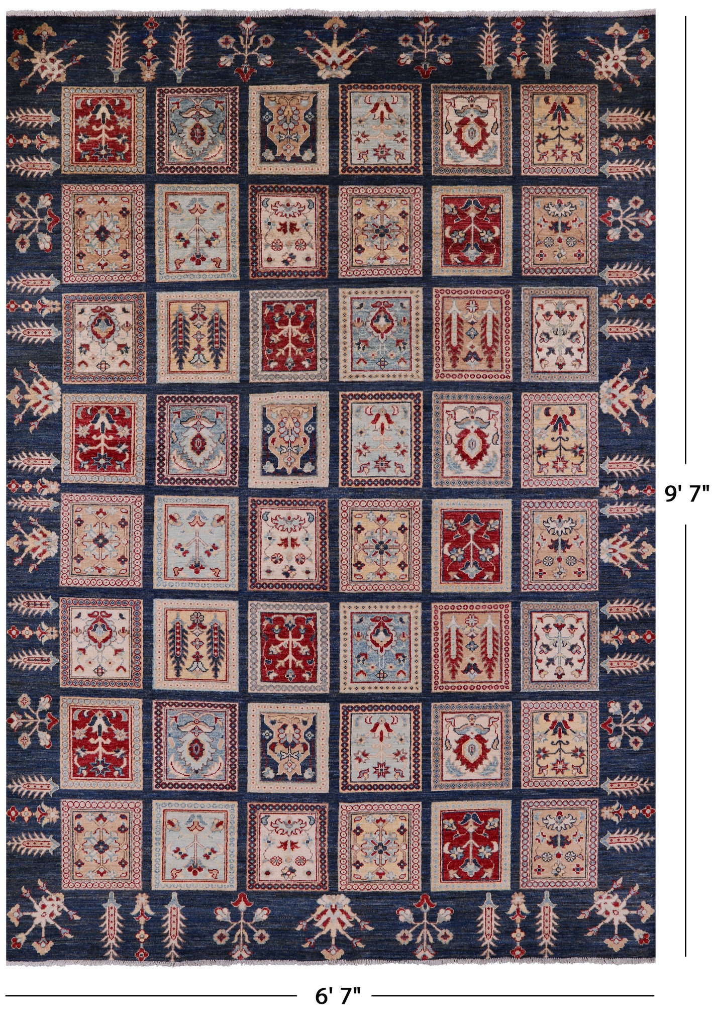 Blue Garden Design Persian Handmade Wool Rug - 6' 7" X 9' 7"