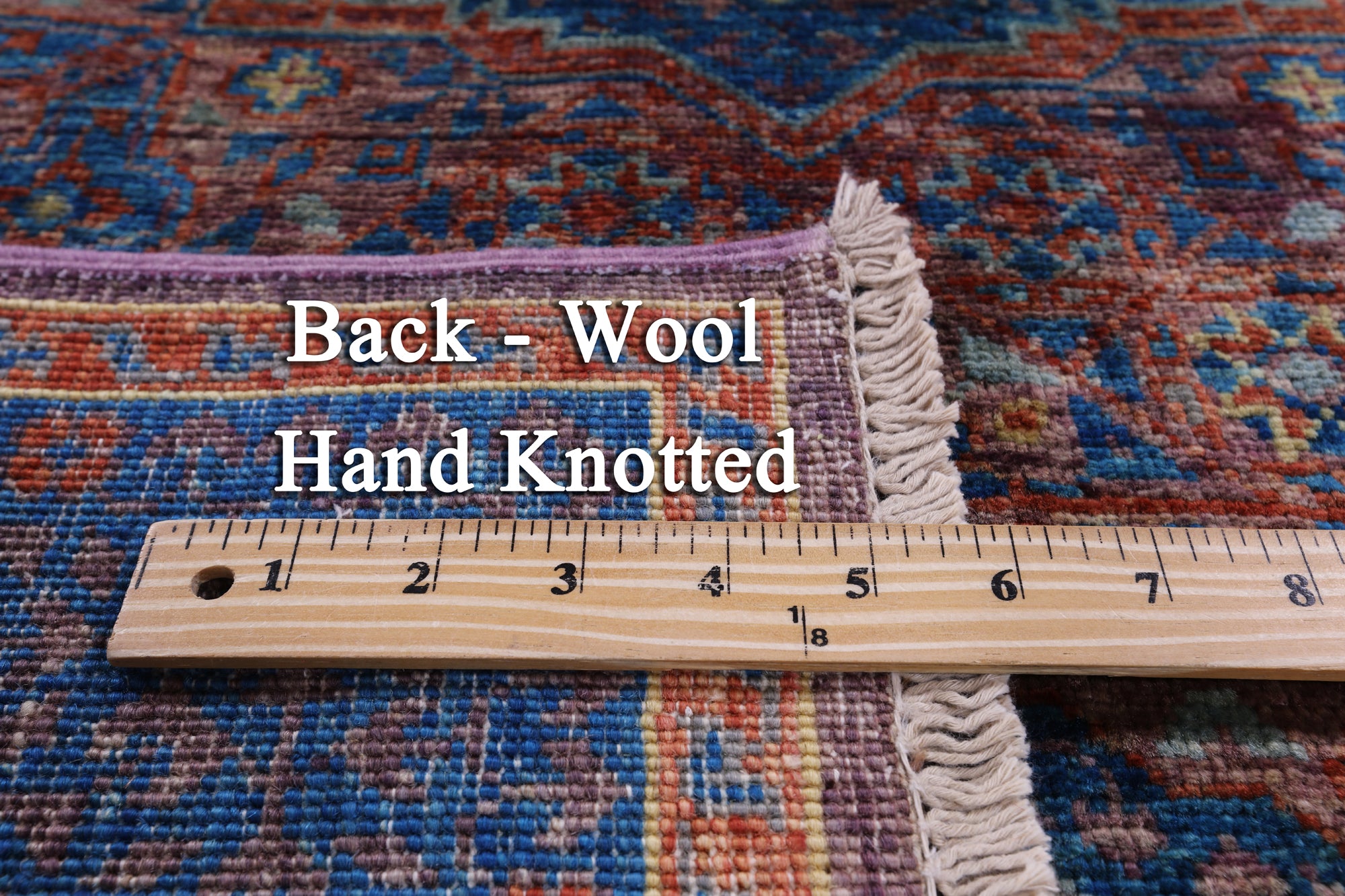 Purple Geometric Persian Mamluk Hand Knotted Wool Rug - 3' 4" X 5' 1"