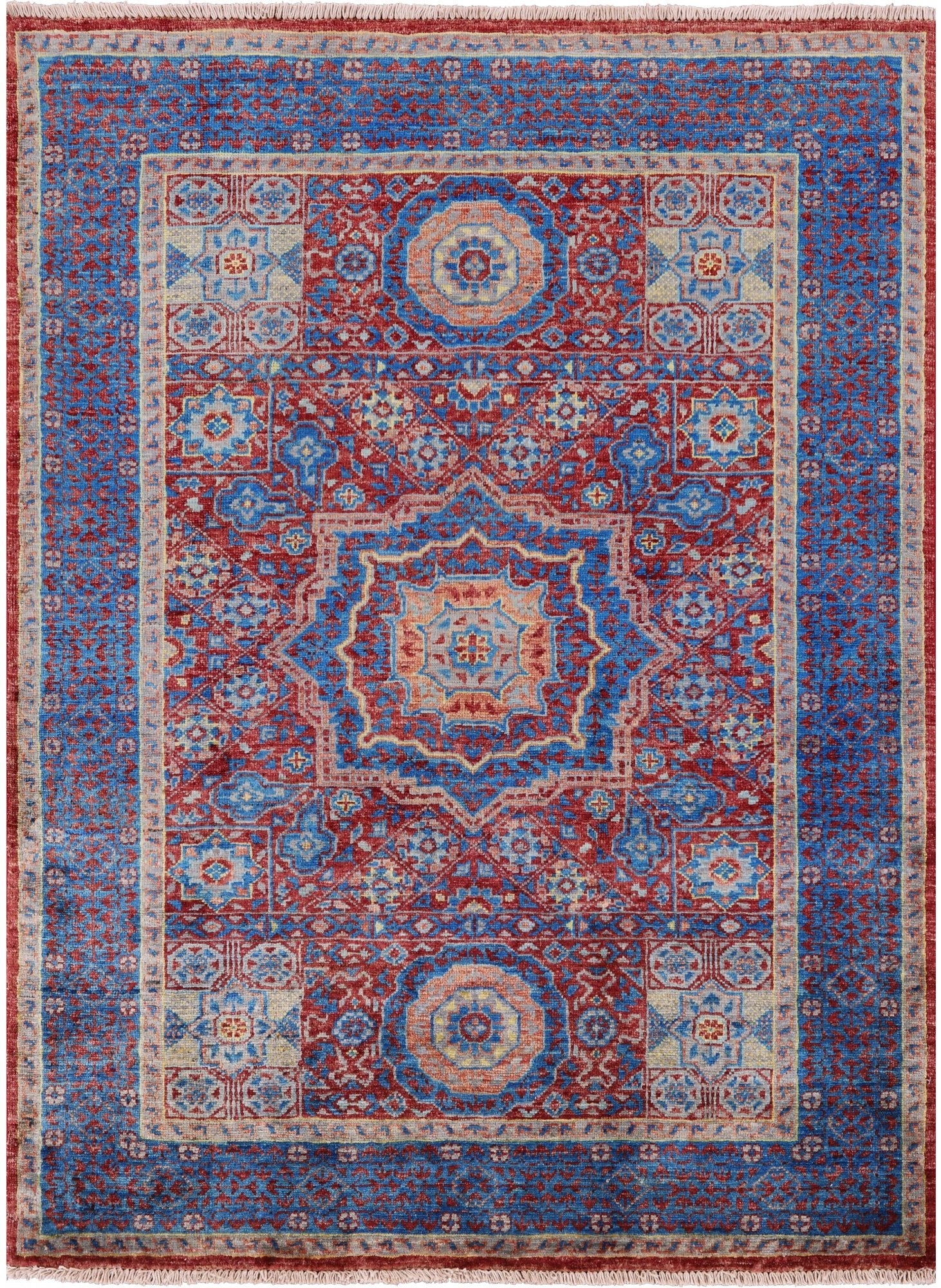 Red Geometric Persian Mamluk Hand Knotted Wool Rug - 3' 6" X 4' 9"