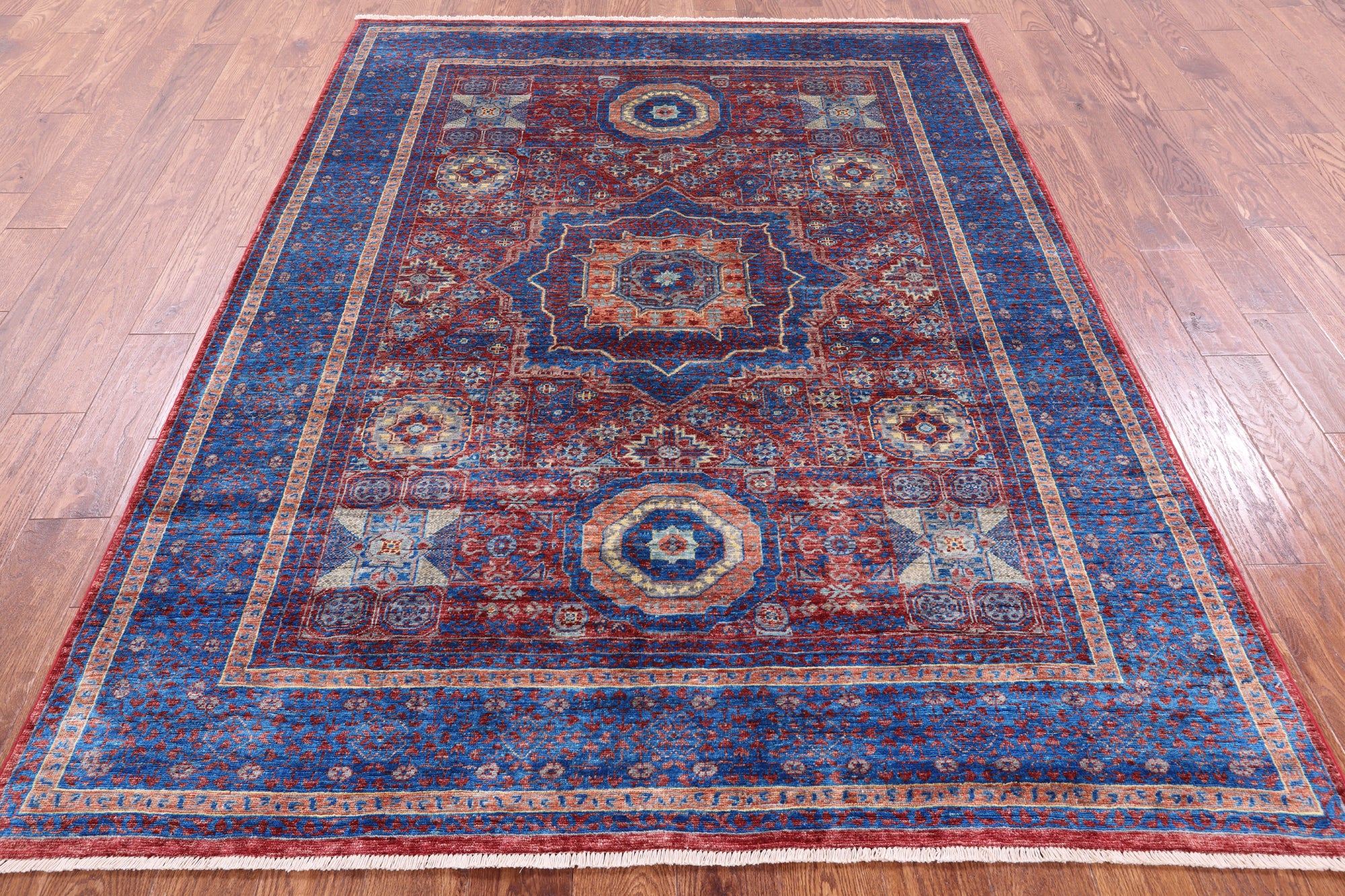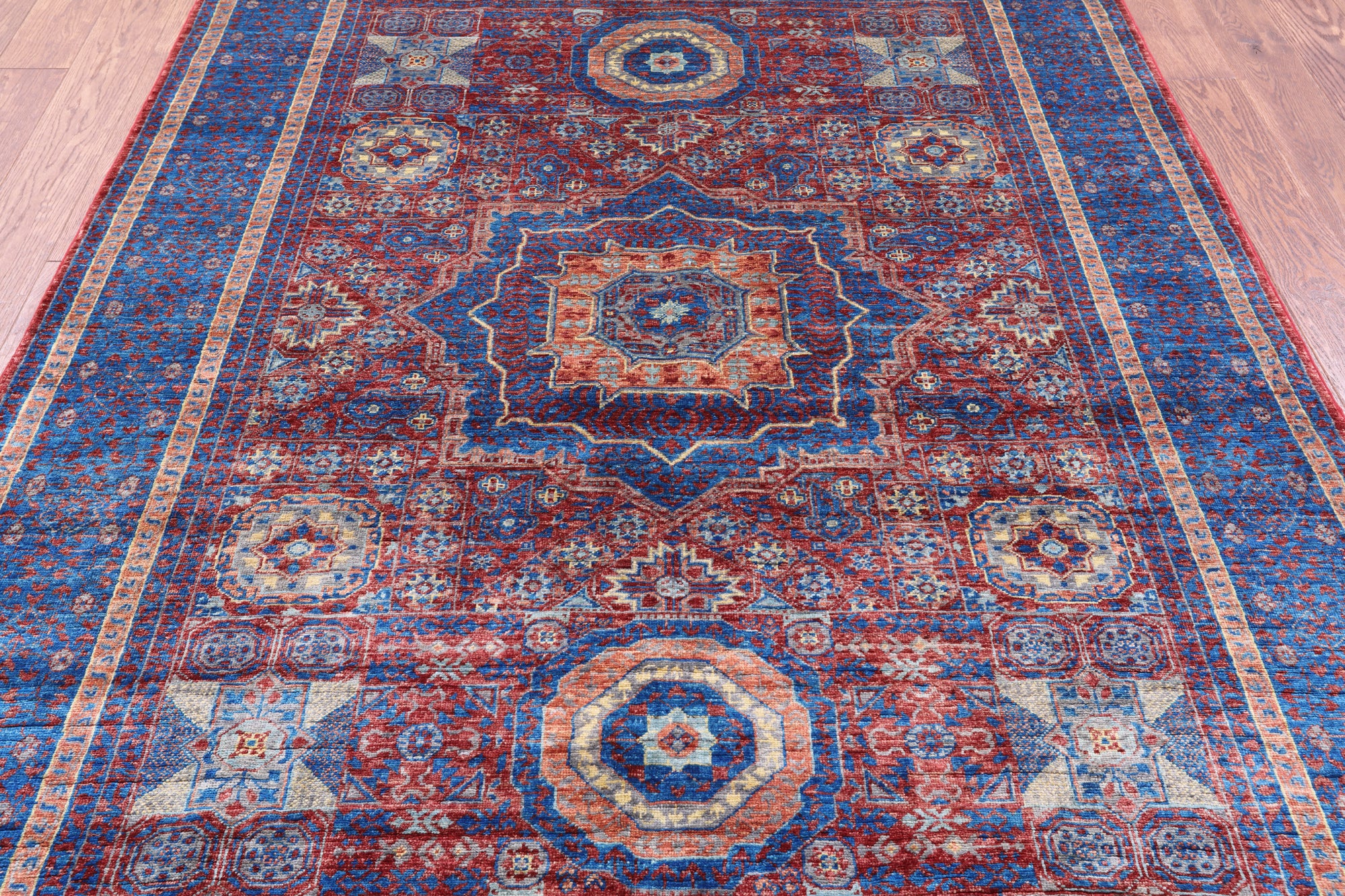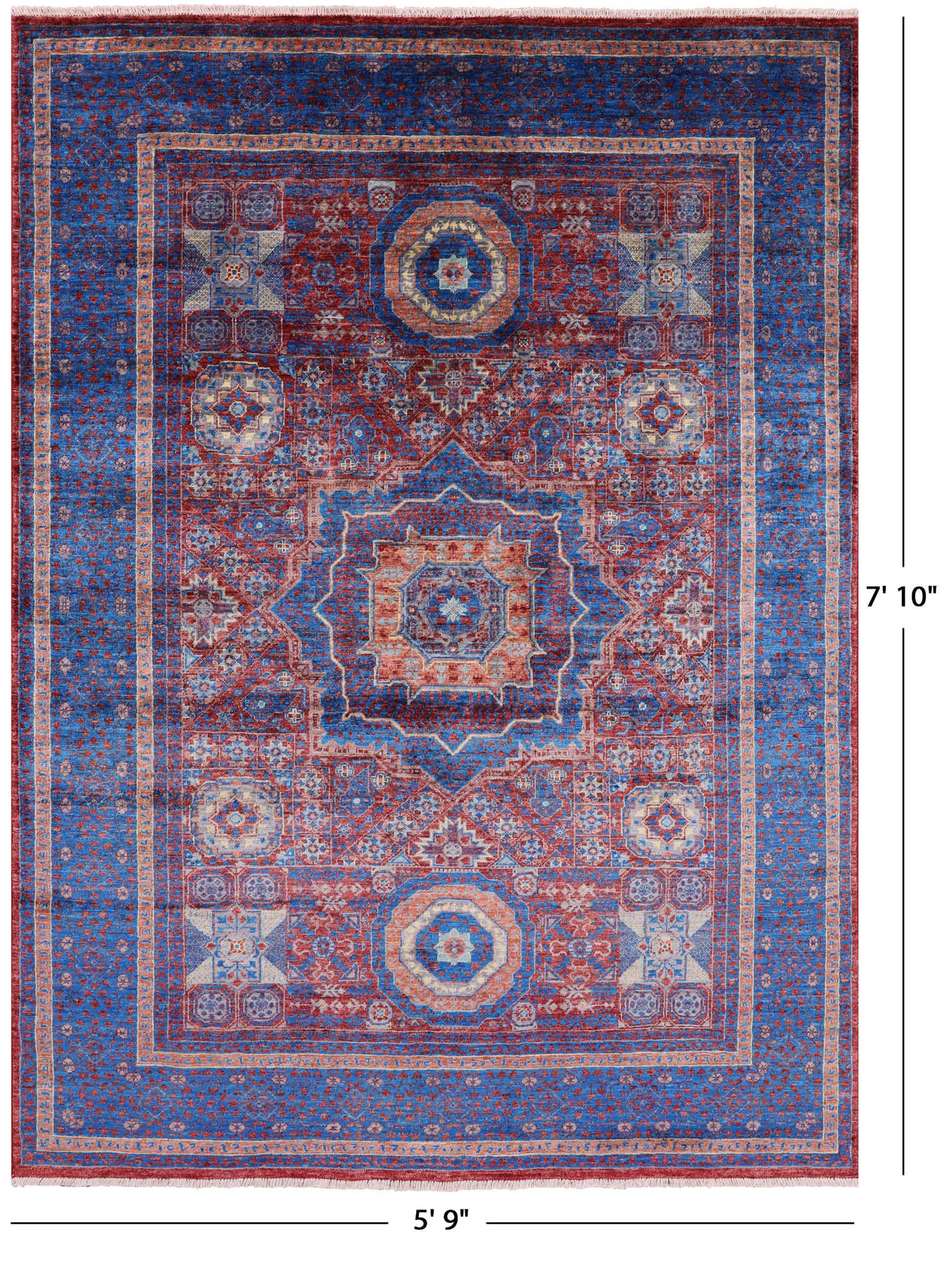 Red Geometric Persian Mamluk Hand Knotted Wool Rug - 5' 9" X 7' 10"