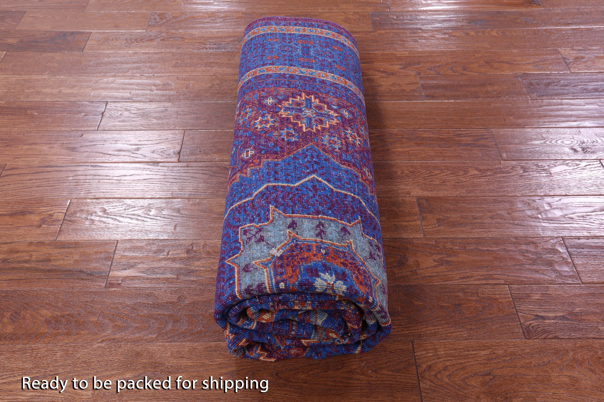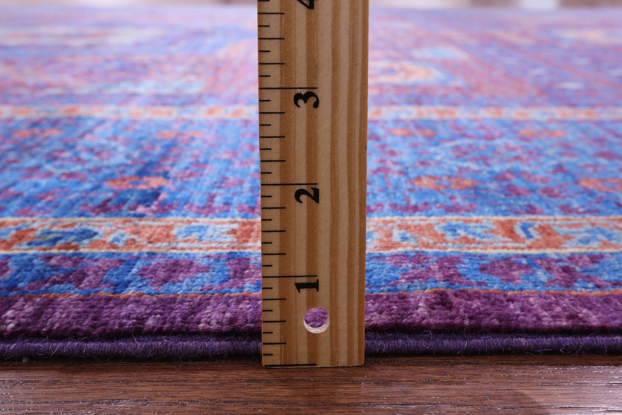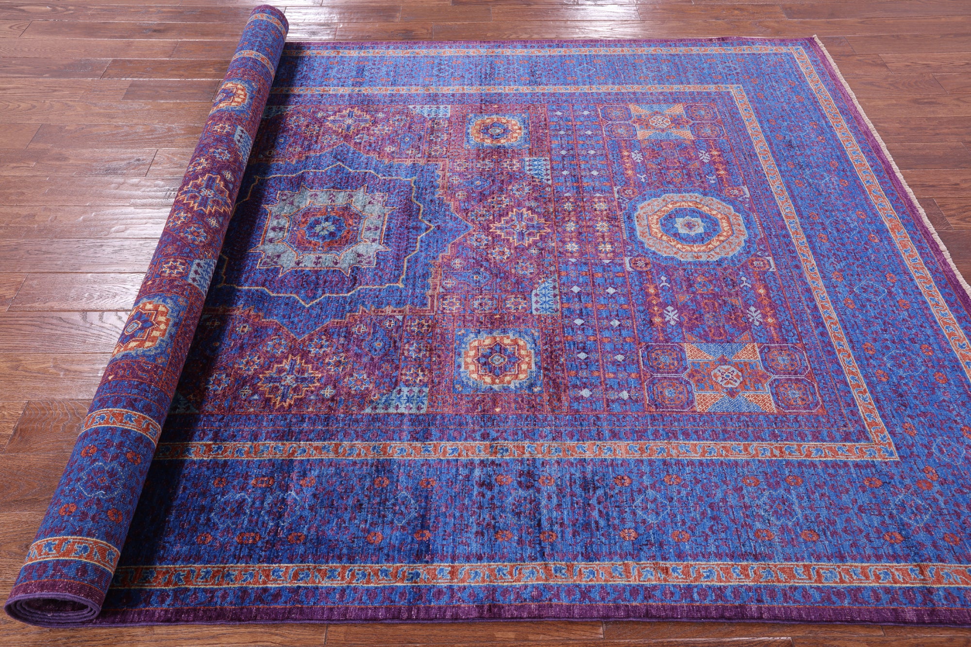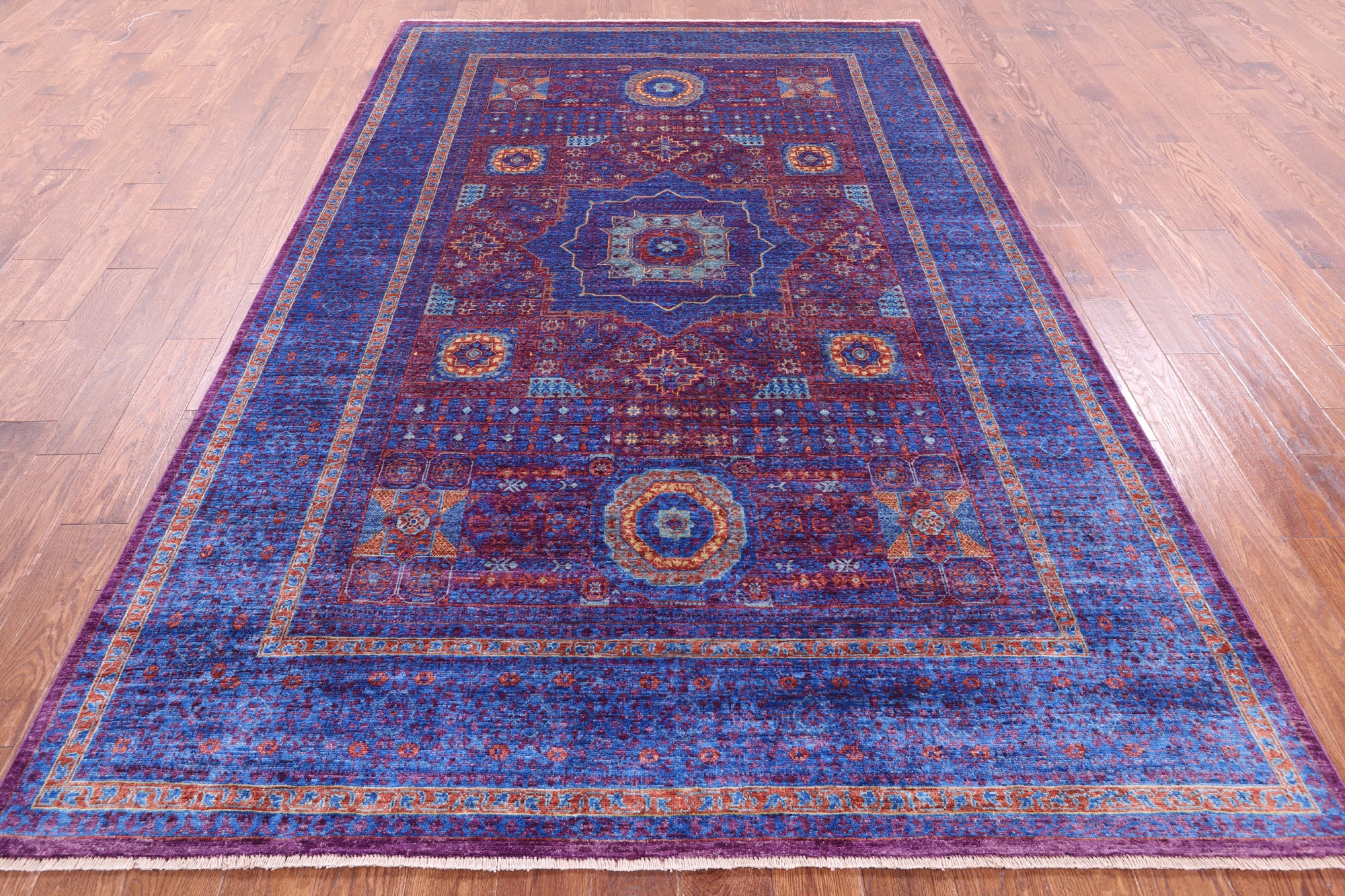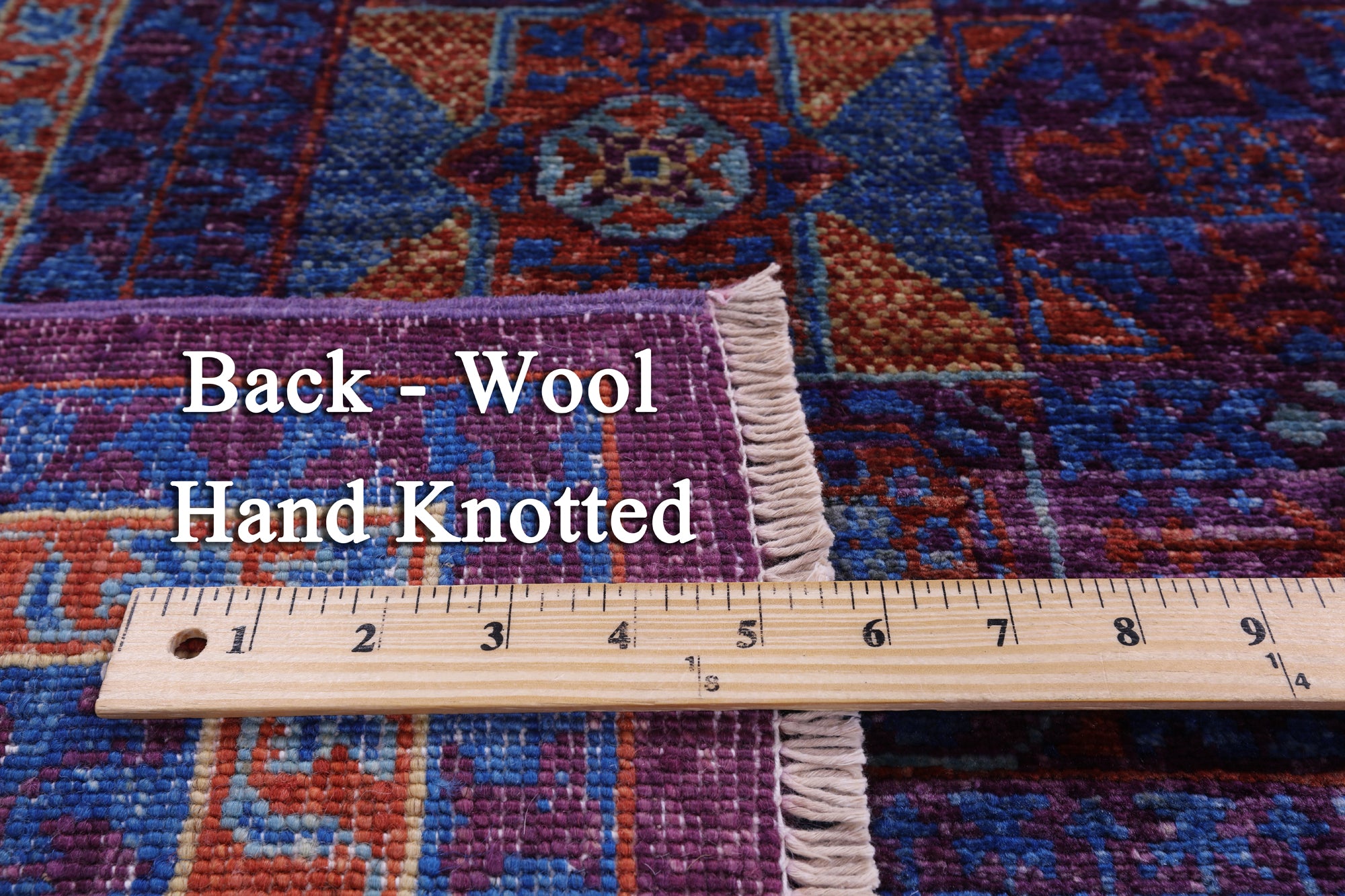 Purple Geometric Persian Mamluk Hand Knotted Wool Rug - 6' 6" X 10' 1"