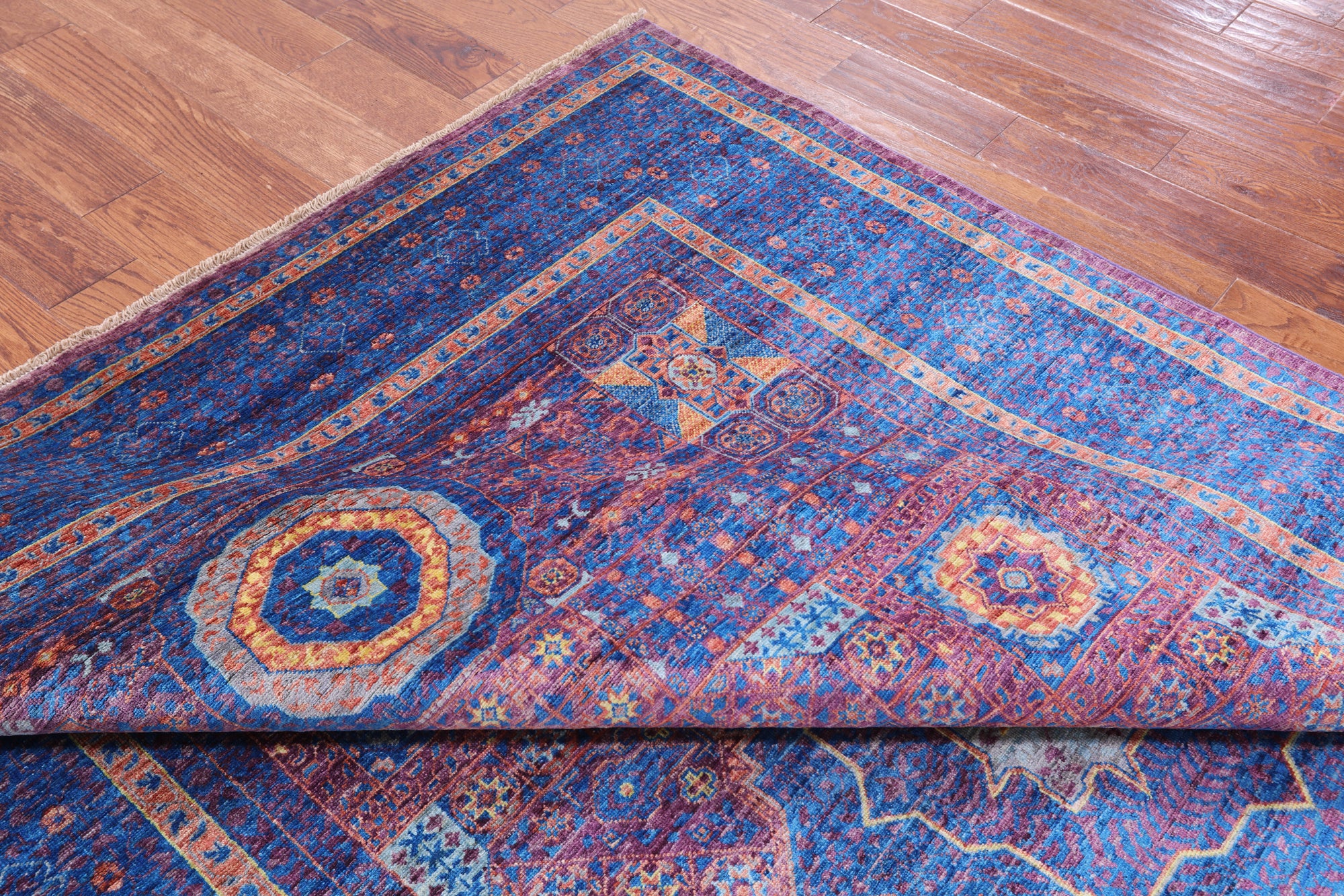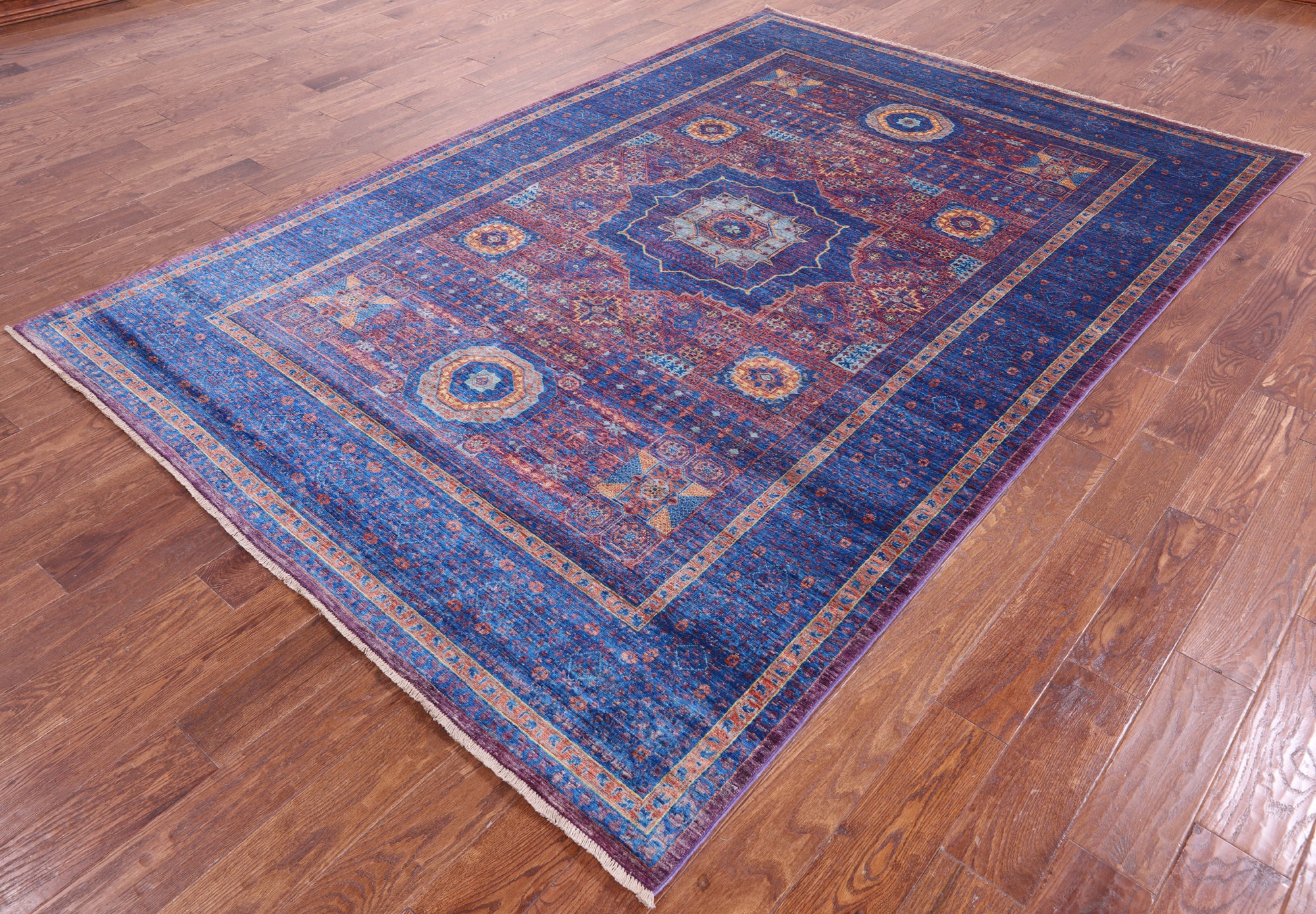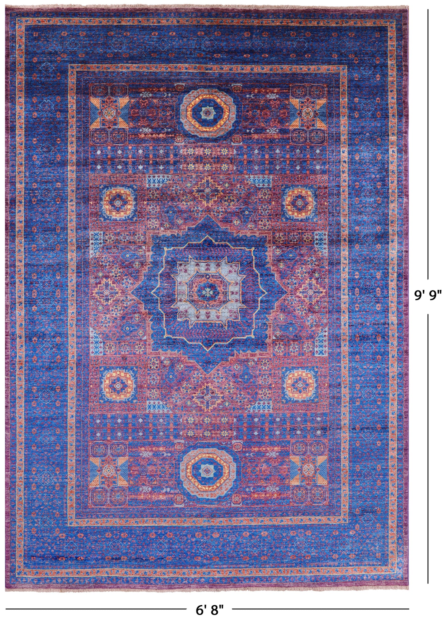 Purple Geometric Persian Mamluk Hand Knotted Wool Rug - 6' 8" X 9' 9"