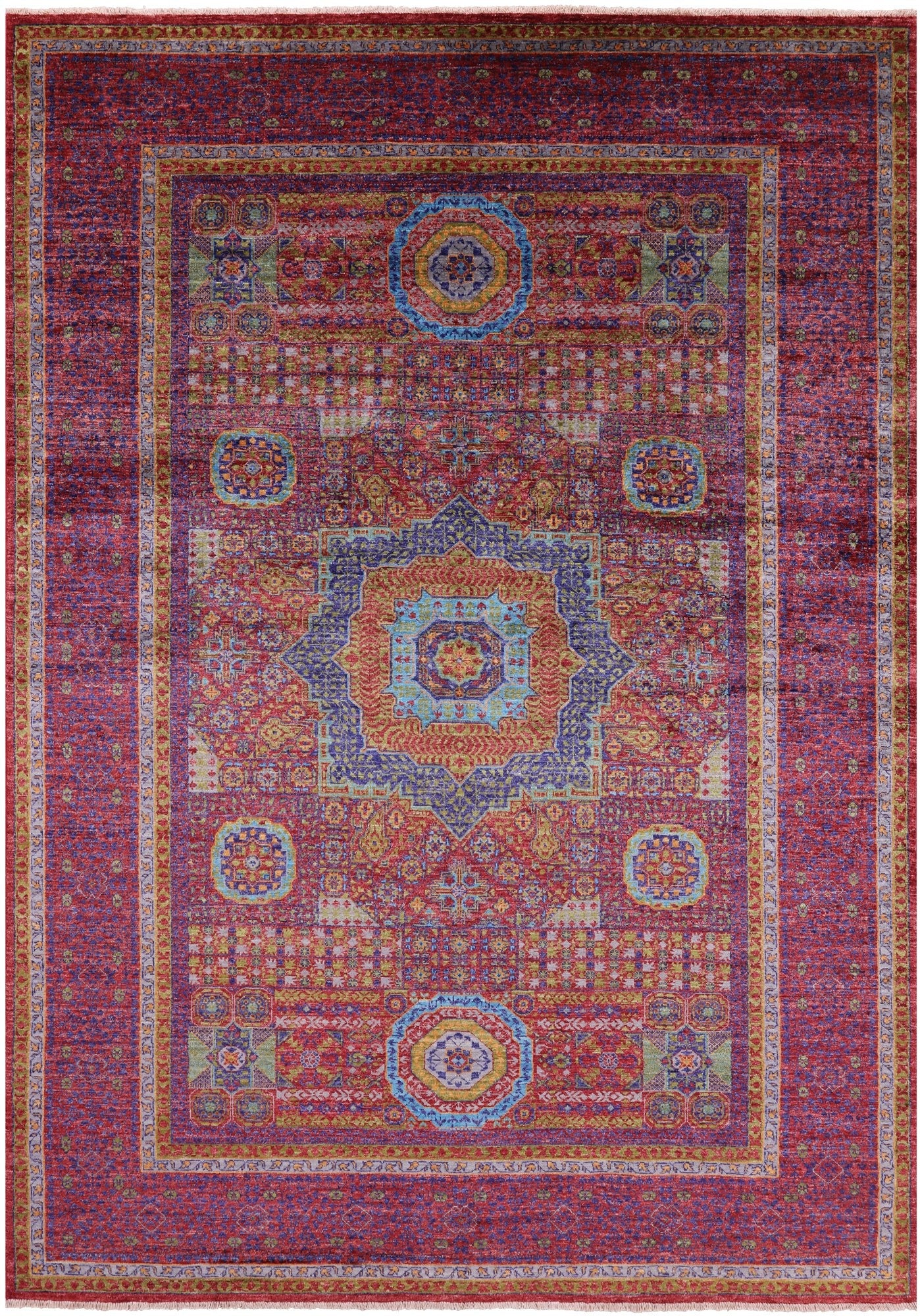 Mamluk Hand-knotted rugs are particularly resplendent. These carpets can be described as having a sublime quality; more than just fine Handmade carpets, they are evocative works of art.