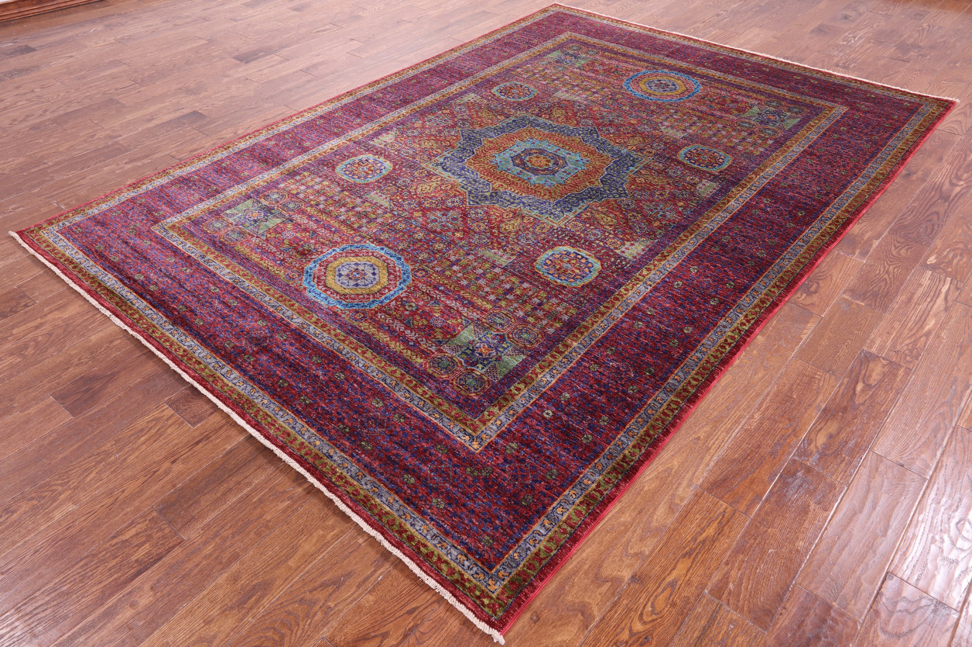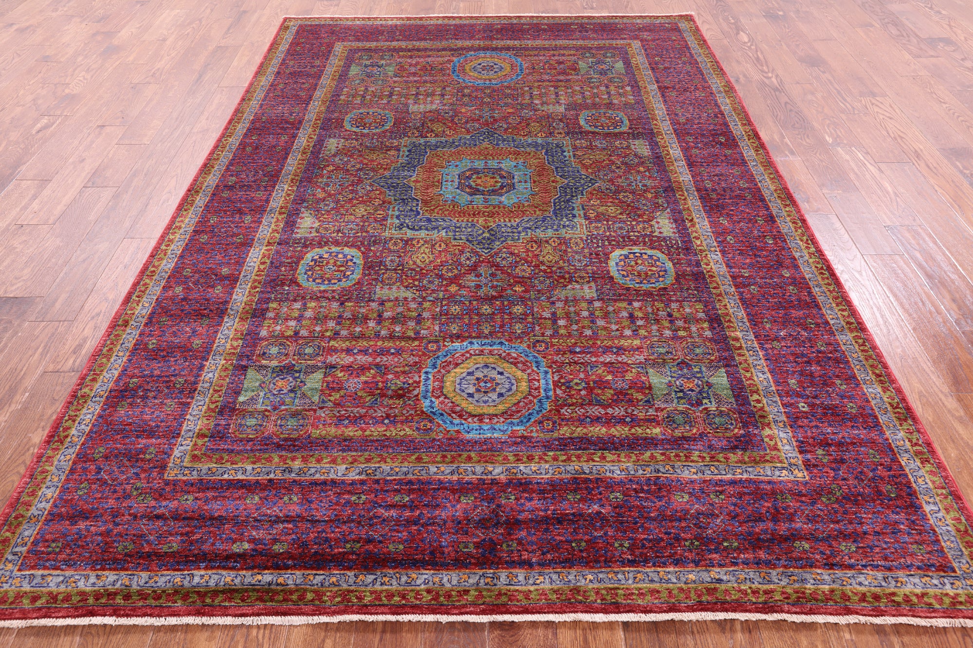 Red Geometric Persian Mamluk Hand Knotted Wool Rug - 6' 9" X 9' 9"