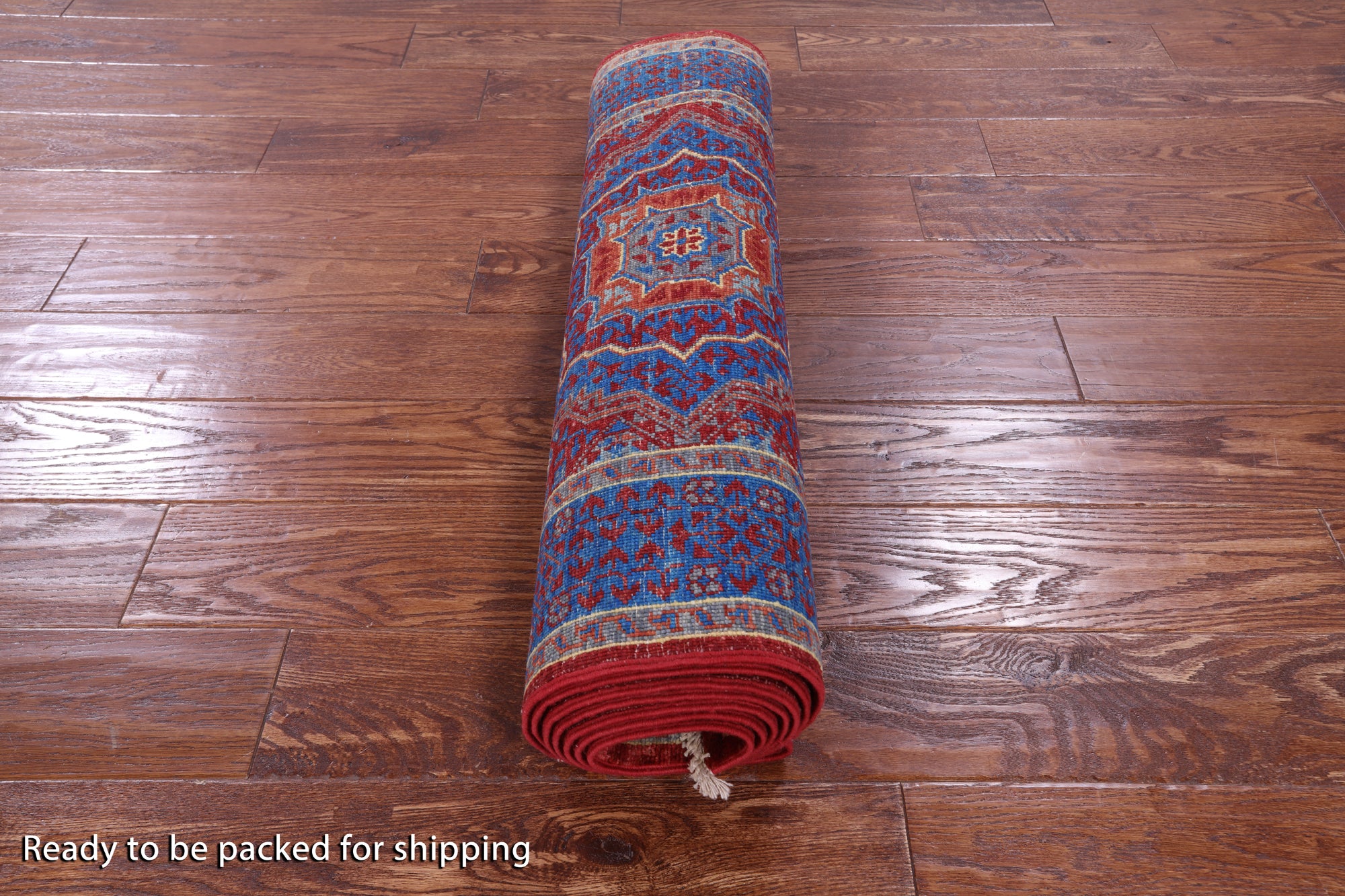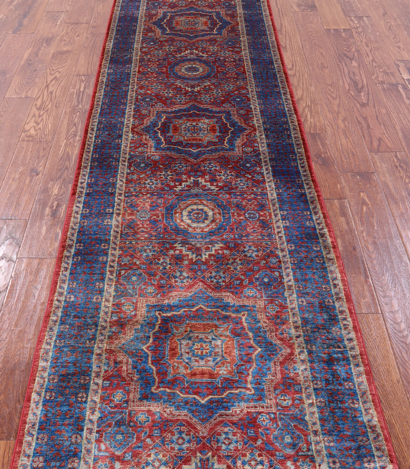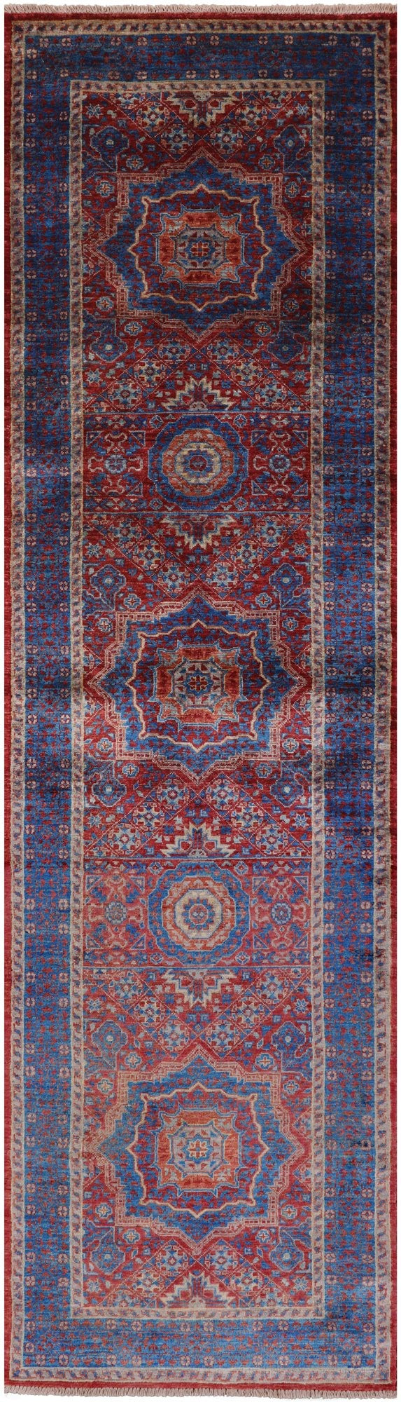 Red Geometric Persian Mamluk Hand Knotted Wool Runner Rug - 2' 8" X 9' 10"
