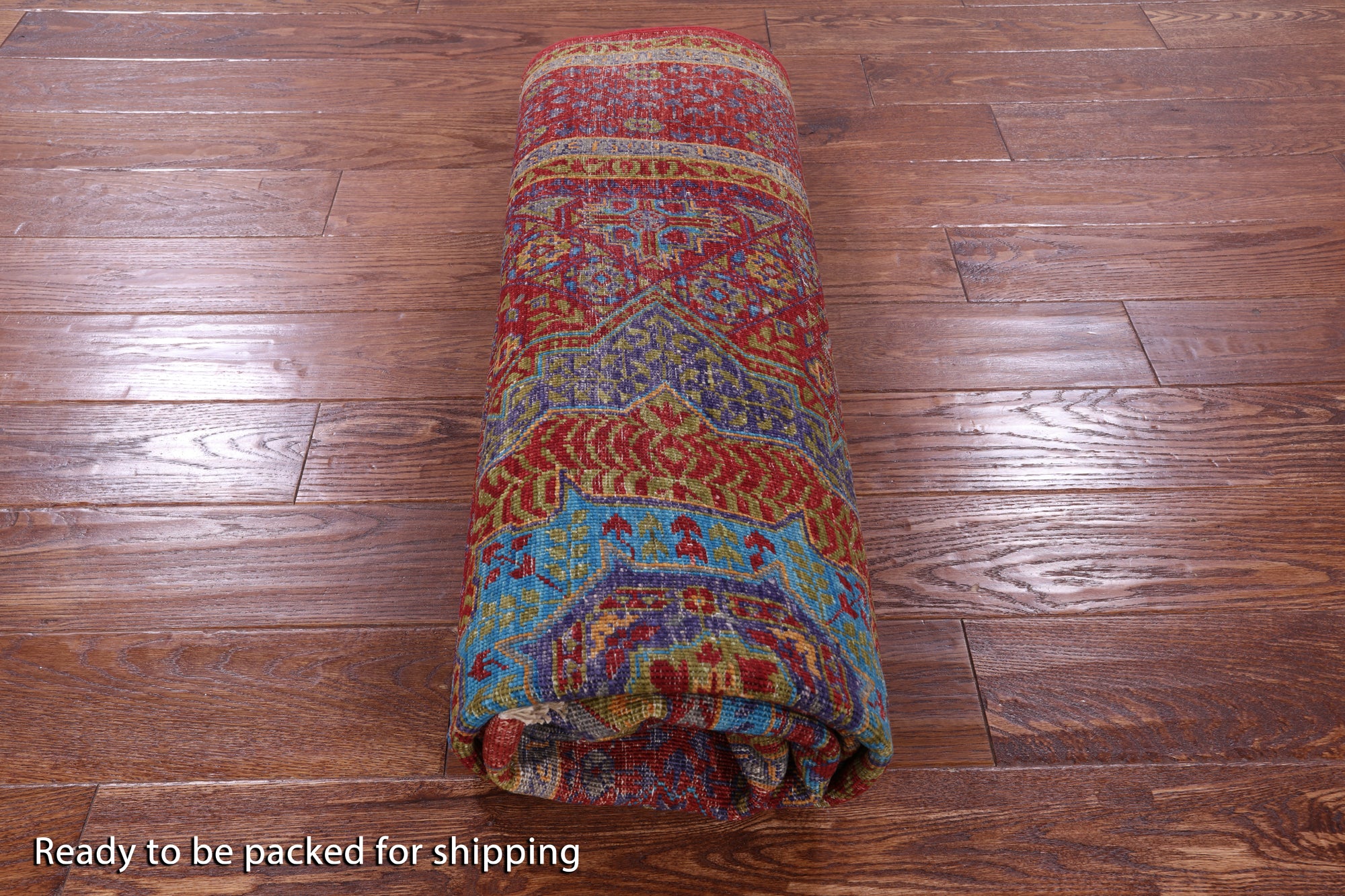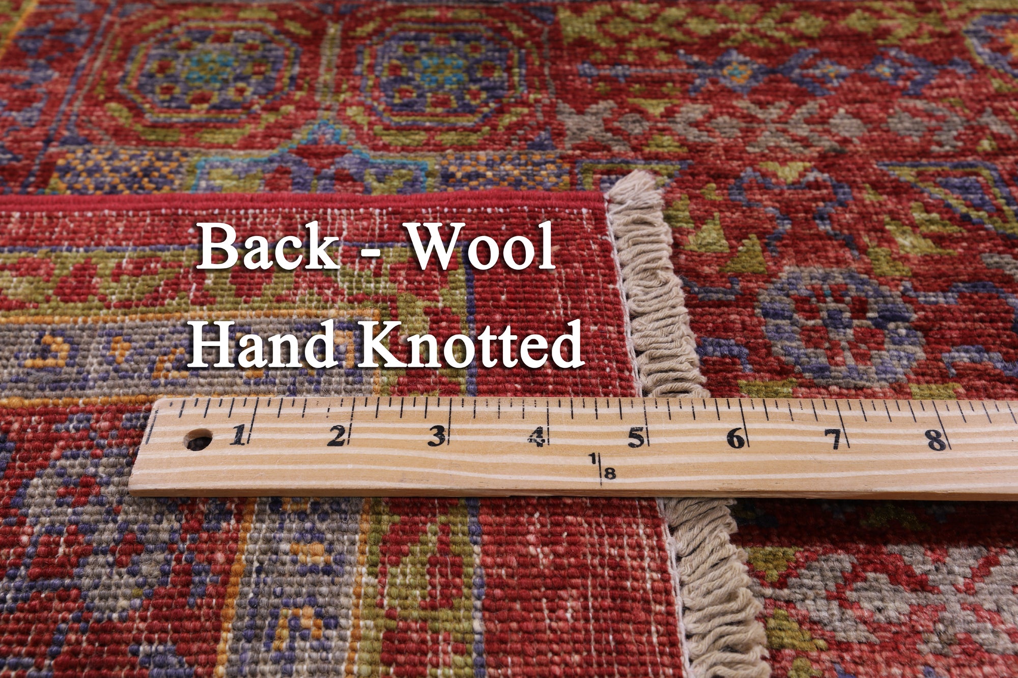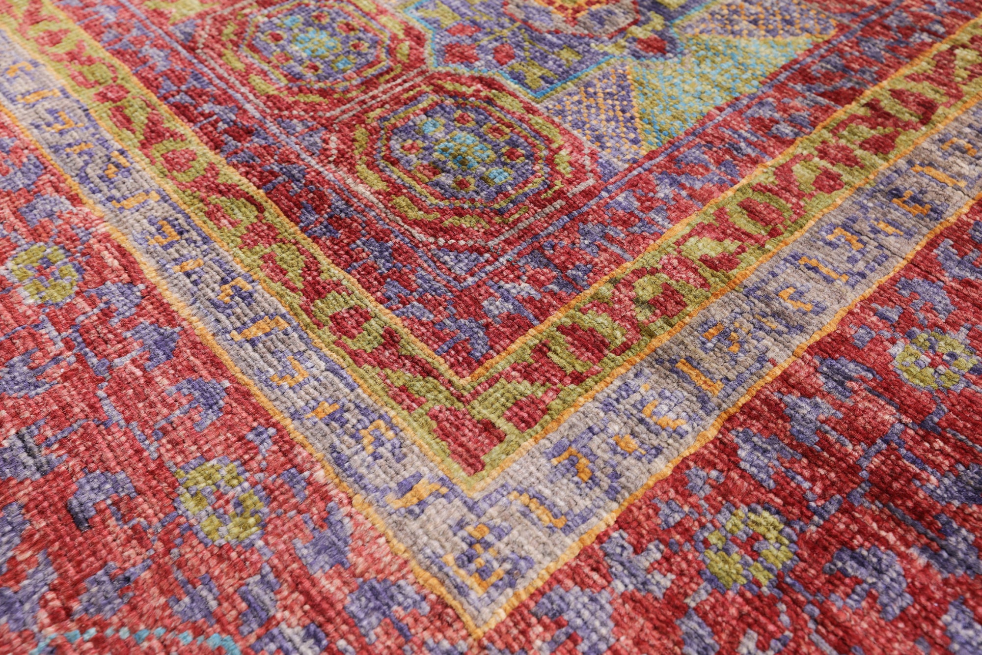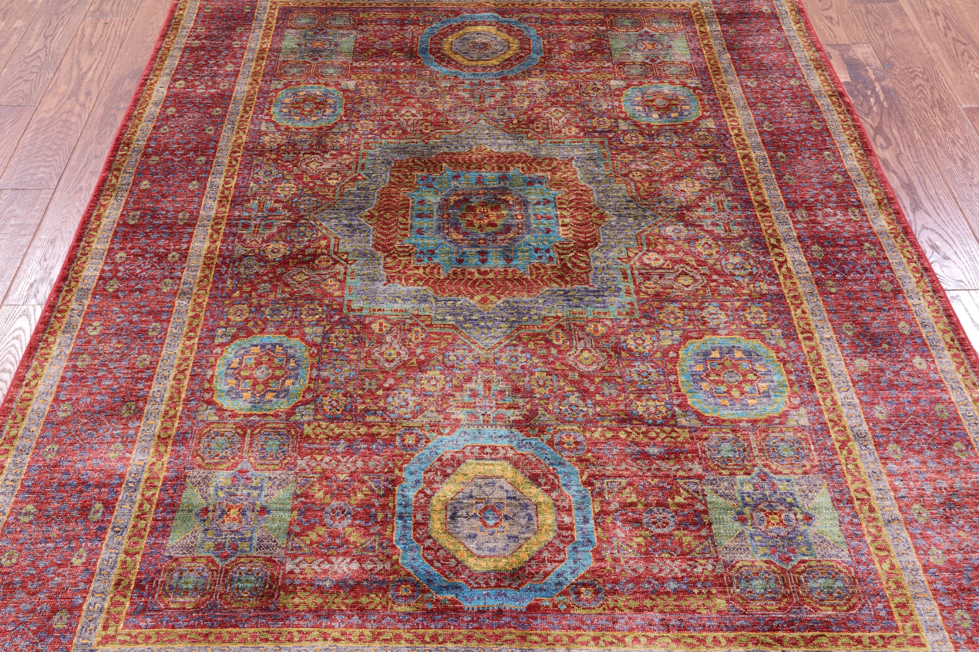 Red Geometric Persian Mamluk Handmade Wool Rug - 5' 7" X 7' 10"