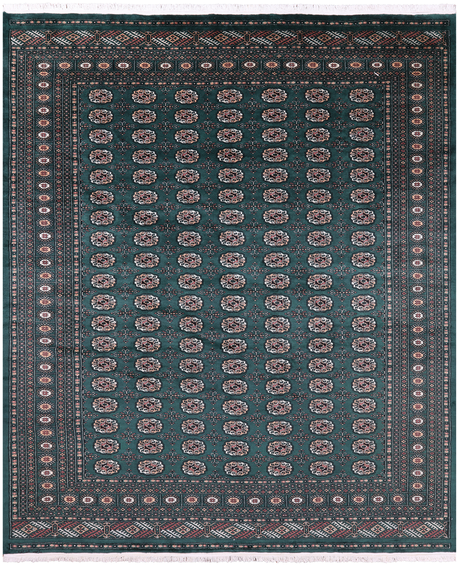 Bokhara Rugs are classic Turkoman designs originally created by nomadic tribes in India. Bokhara Rugs are among the most popular handmade rugs widely produced in Pakistan, India & Afghanistan. There foundation and heavy pile consist of wool, and have a soft luxurious feel. There unique designs consist of repeating geometric designs and vary from one tribe to another. Designs are commonly dark blue/navy, black, brown, or red with ivory accents.