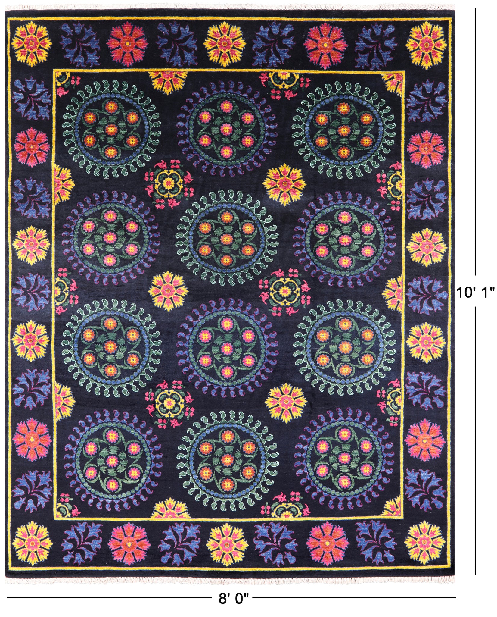 Black William Morris Hand Knotted Wool Rug - 8' 0" X 10' 1"