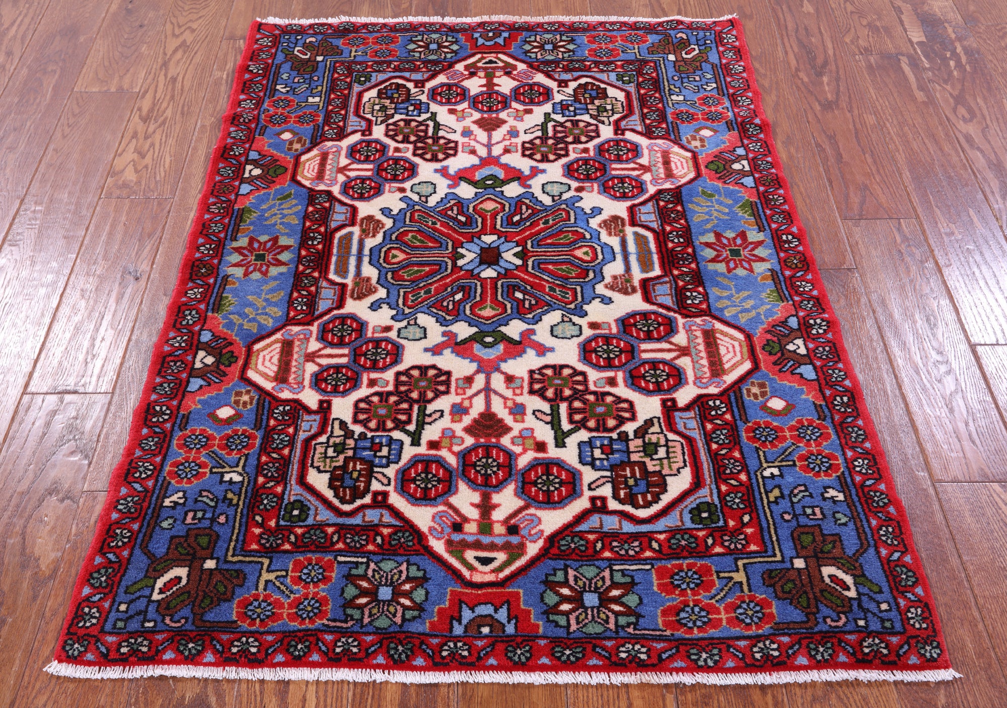 The quality of Nahavand rugs is very high this is thanks to the wool that is used to create these beautiful durable rugs. Most of the design elements in the Nahavand rugs are geometrical motifs. They often have “leaf’ like medallions in the center with flowers and twigs all around the background. The dominating colors for these rugs are often pale rust reds, beige, and many more.