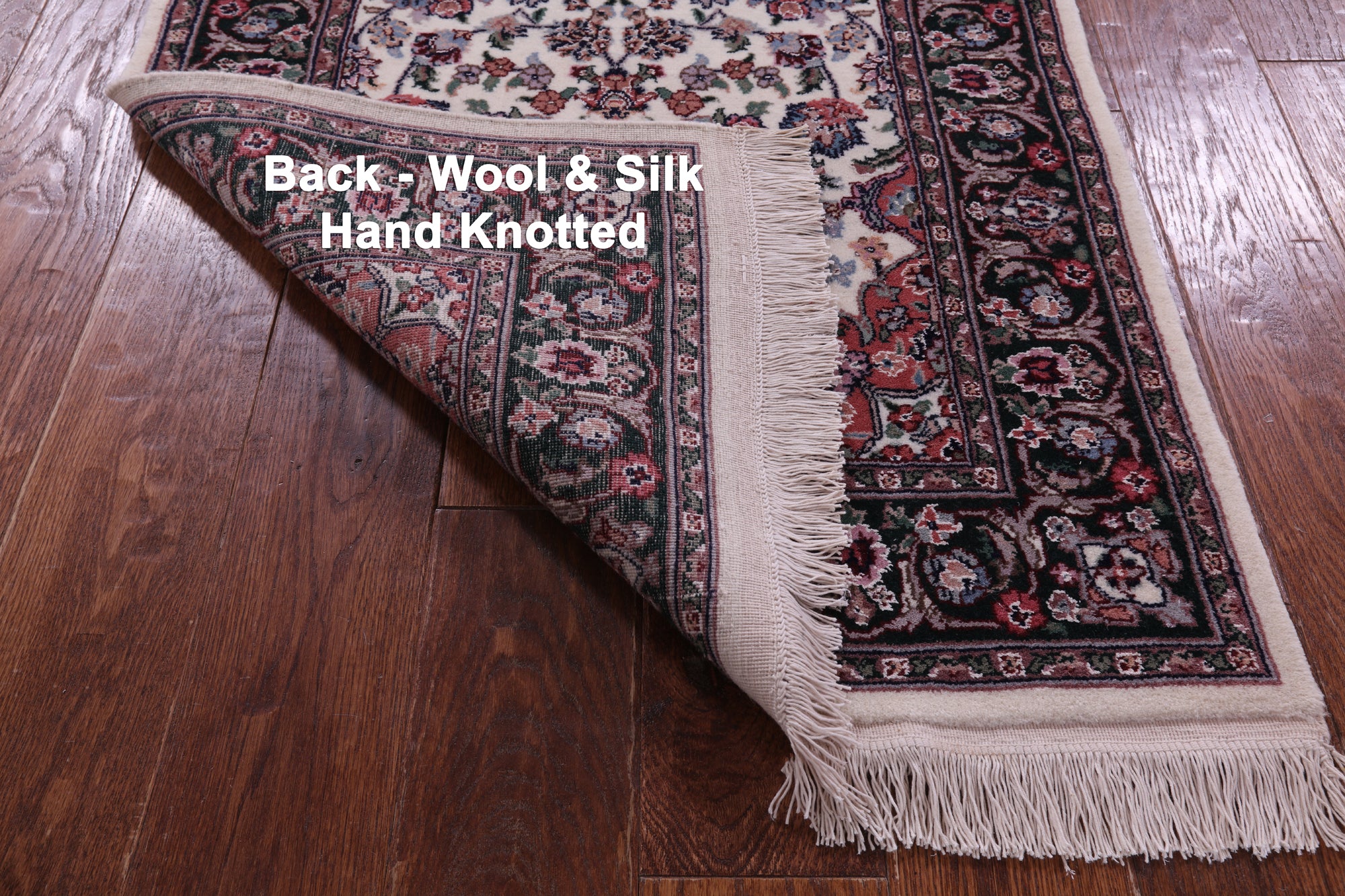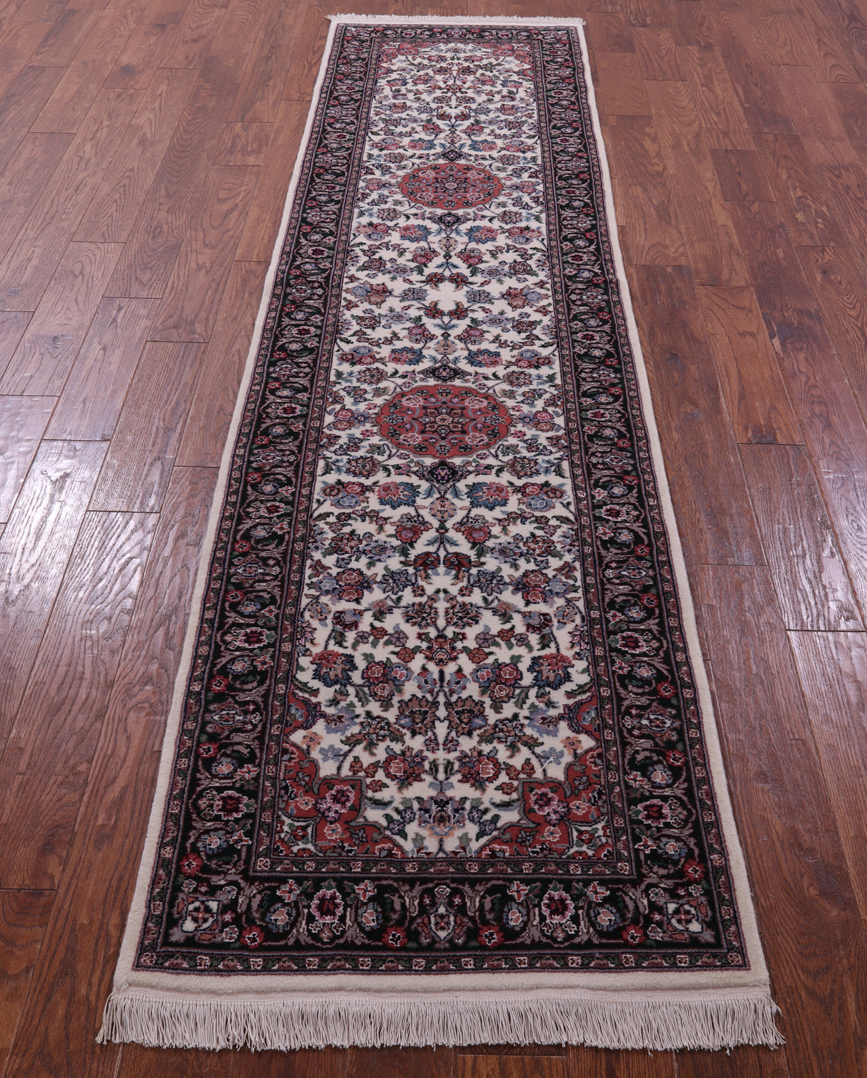Ivory Persian Tabriz Hand Knotted Wool & Silk Runner Rug - 2' 7" X 9' 10"
