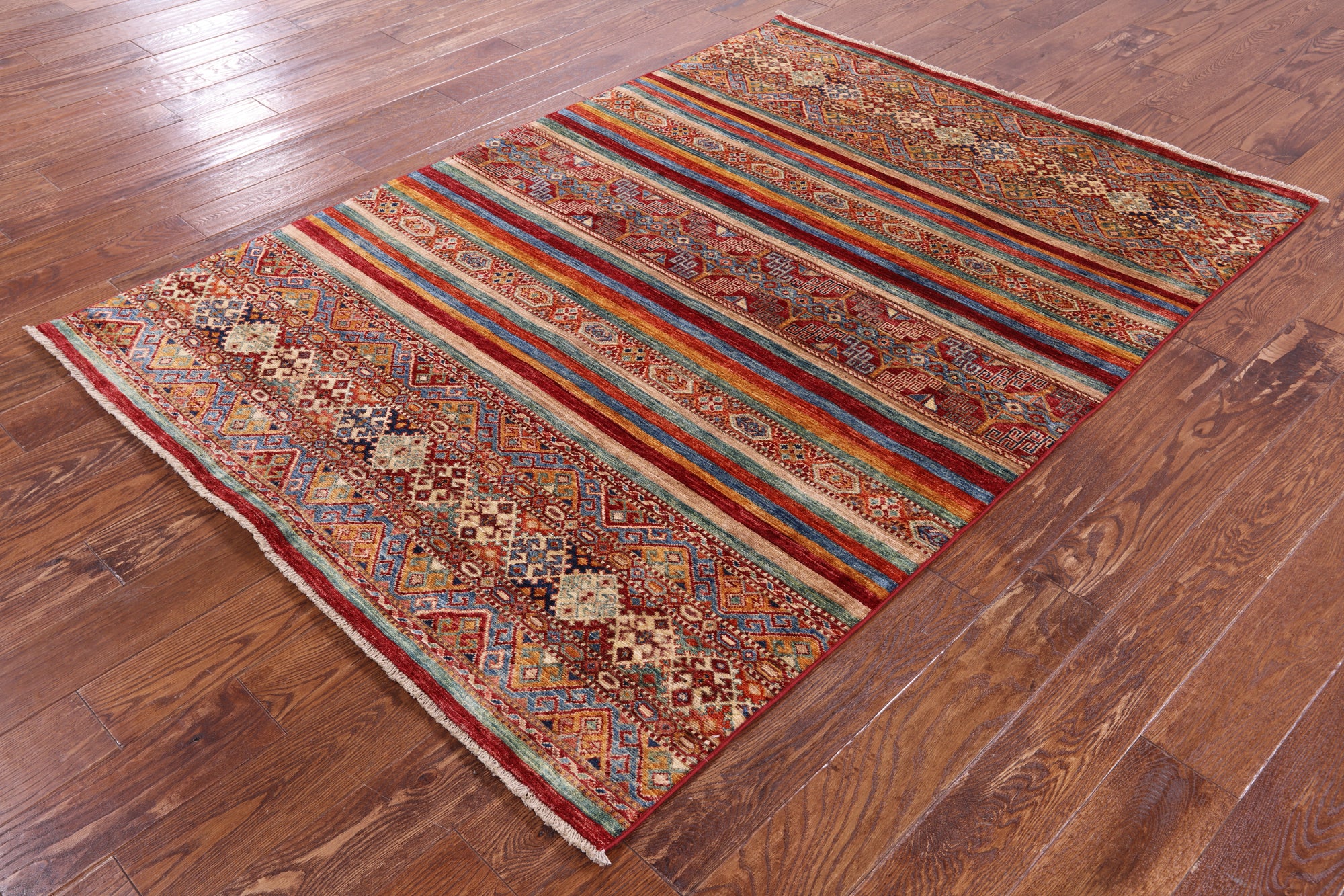 Khorjin Persian Gabbeh Hand Knotted Wool Rug - 4' 10" X 6' 8"