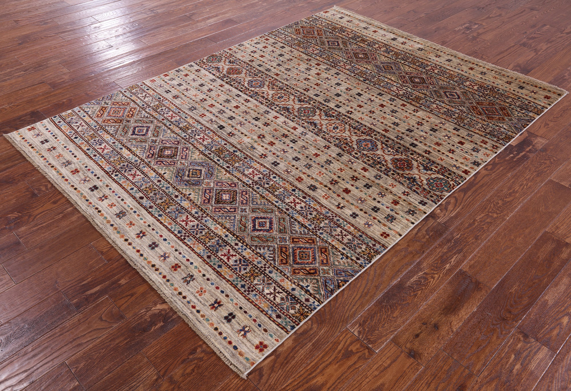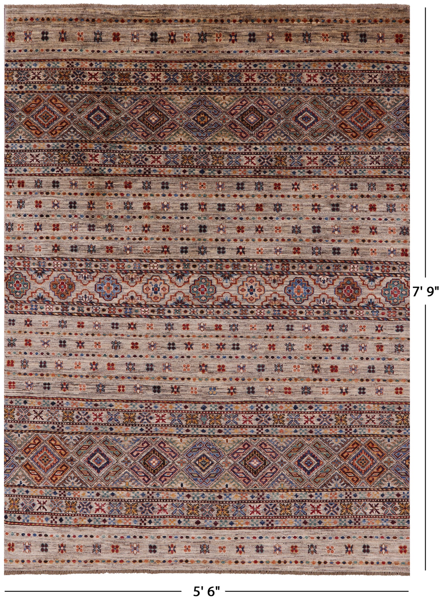 Khorjin Persian Gabbeh Hand Knotted Wool Rug - 5' 6" X 7' 9"