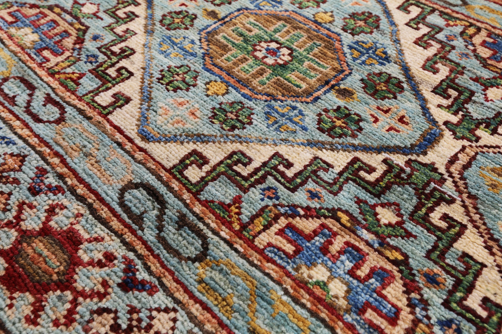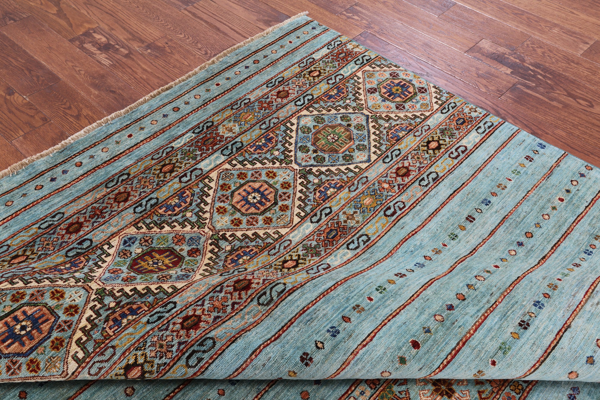 Gabbeh Rugs originate from South-Central Iran, and feature hand-spun wool in both the pile and foundation as well as all natural dyes. Gabbeh patterns are very basic, mostly consisting of colorful rectangular objects resembling animals, or people, abstract scenery used to tell a story, depict a person or place. They contain soft lustrous wool, and emphasizes color on design detail. These Classic Persian Rugs are popular in homes with contemporary & modern interior.