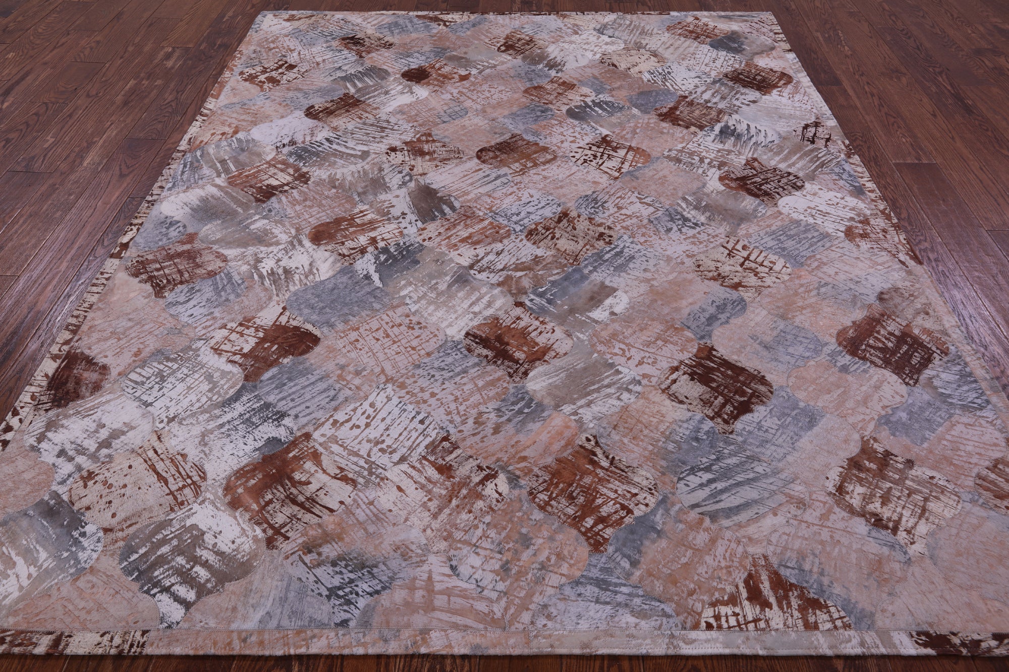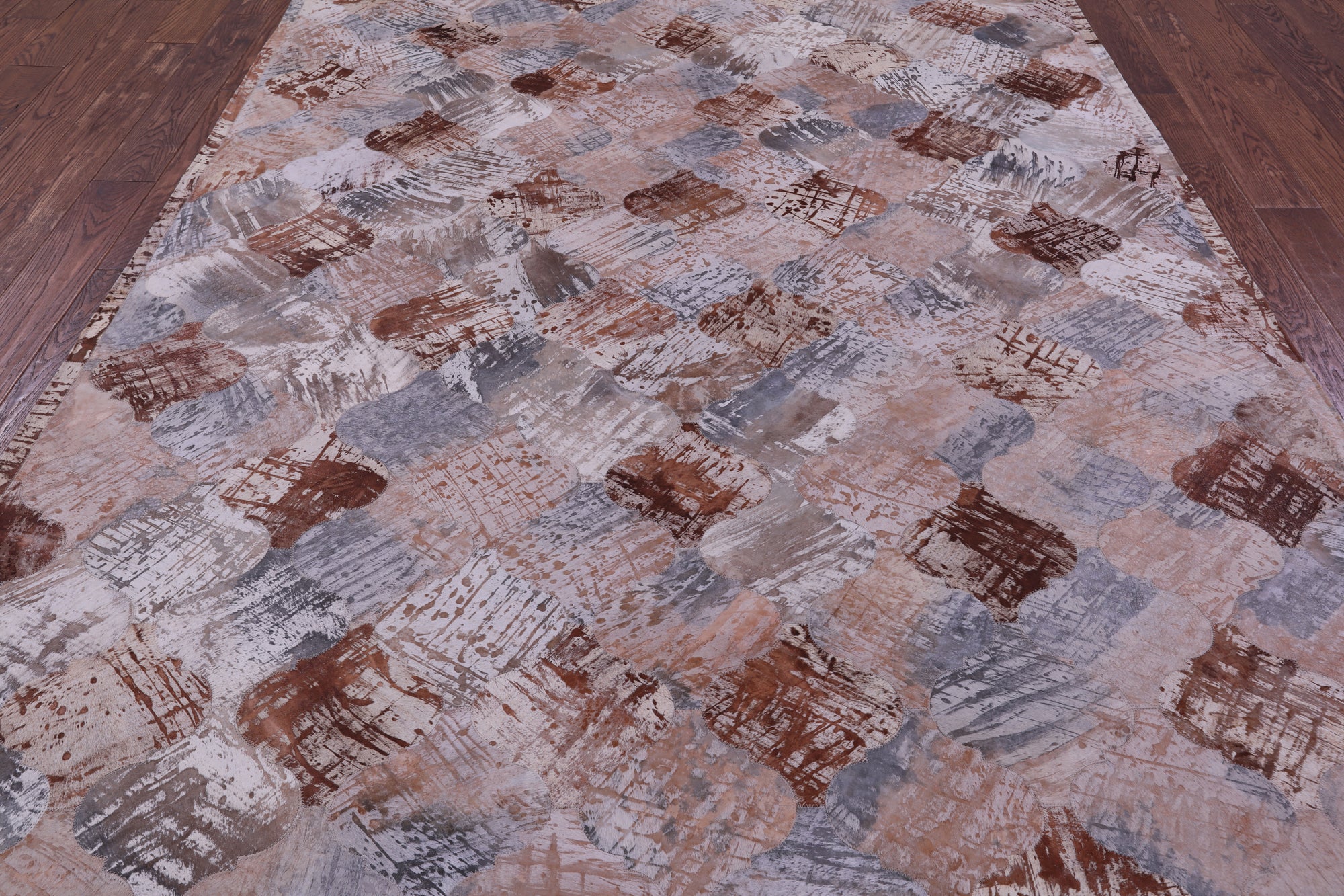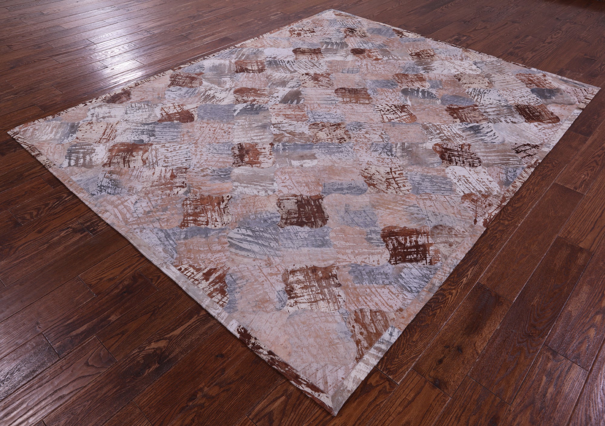 Lantern Tile Natural Cowhide Hand Stitched Patchwork Rug - 6' 8" X 8' 3"