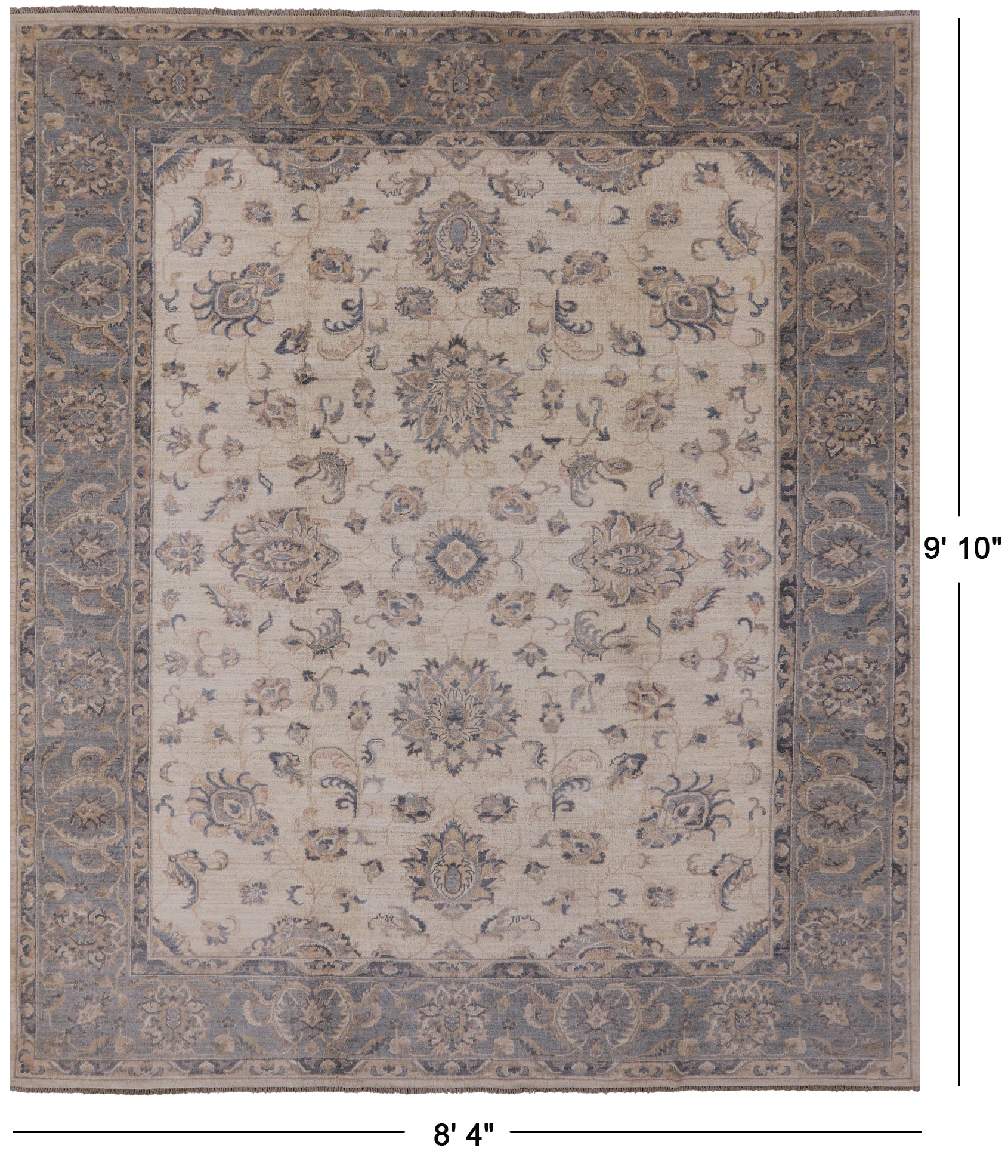 Ivory Peshawar Handmade Wool Rug - 8' 4" X 9' 10"