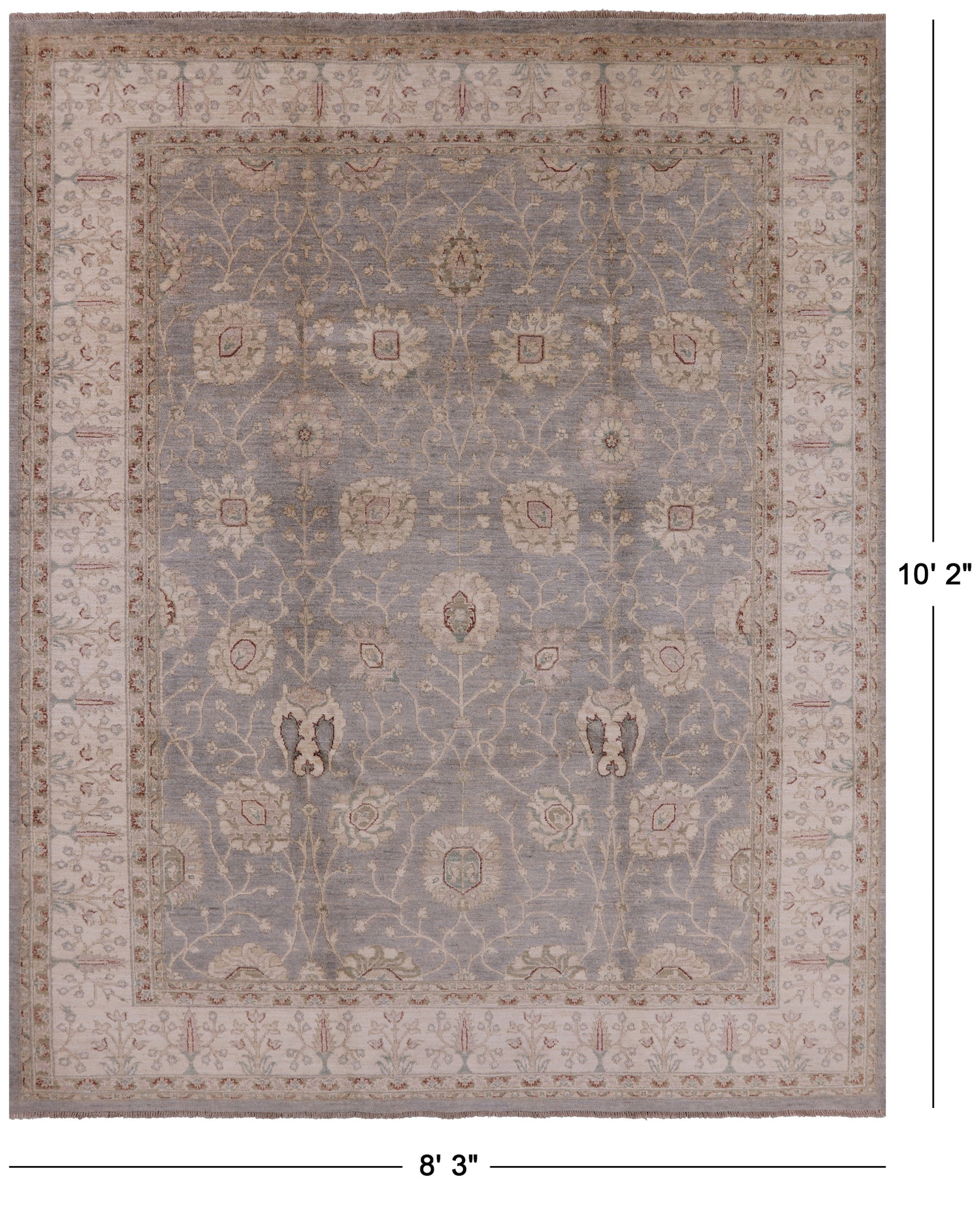 Grey Peshawar Hand Knotted Wool Rug - 8' 3" X 10' 2"