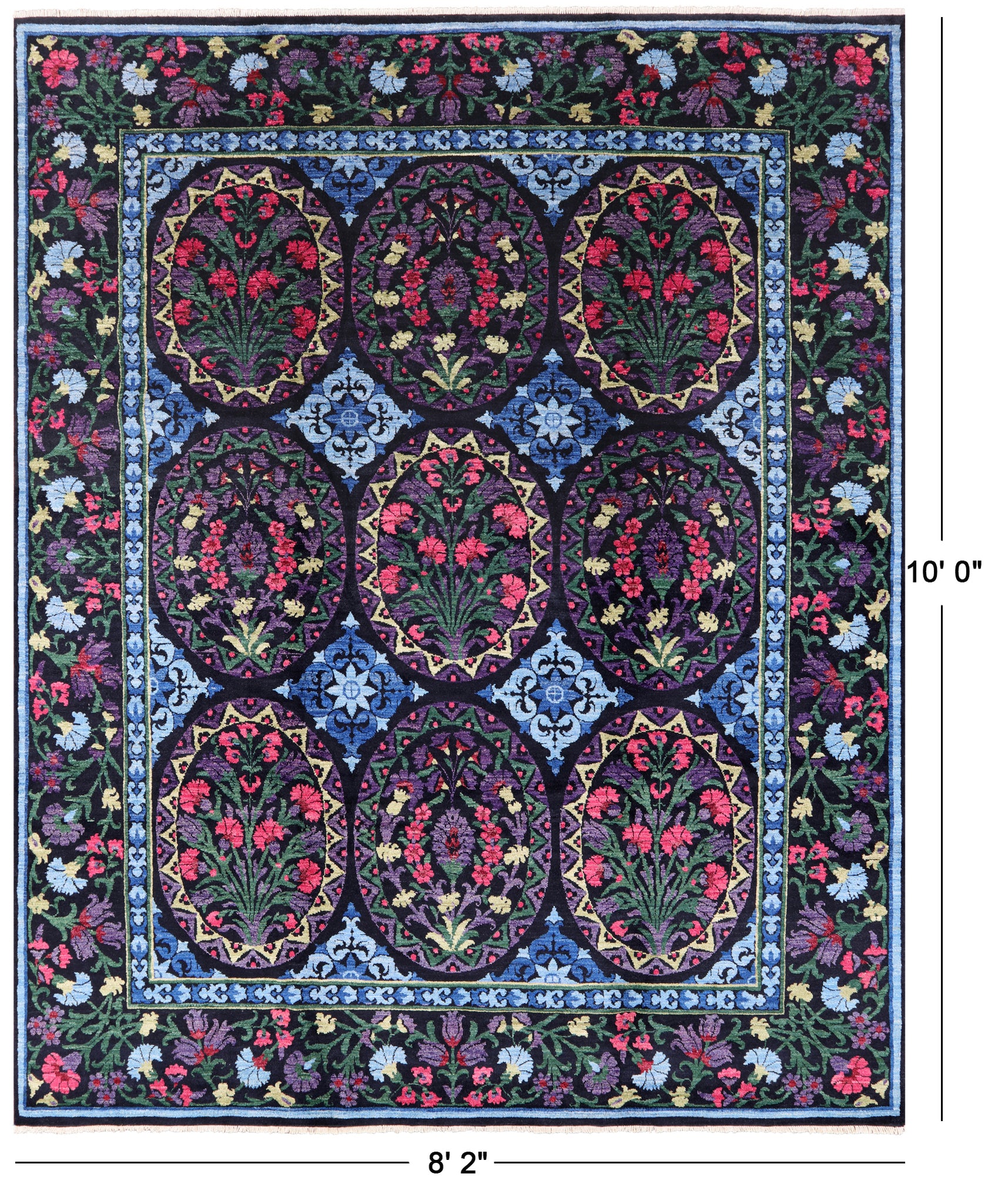 Black William Morris Hand Knotted Wool Area Rug - 8' 2" X 10' 0"