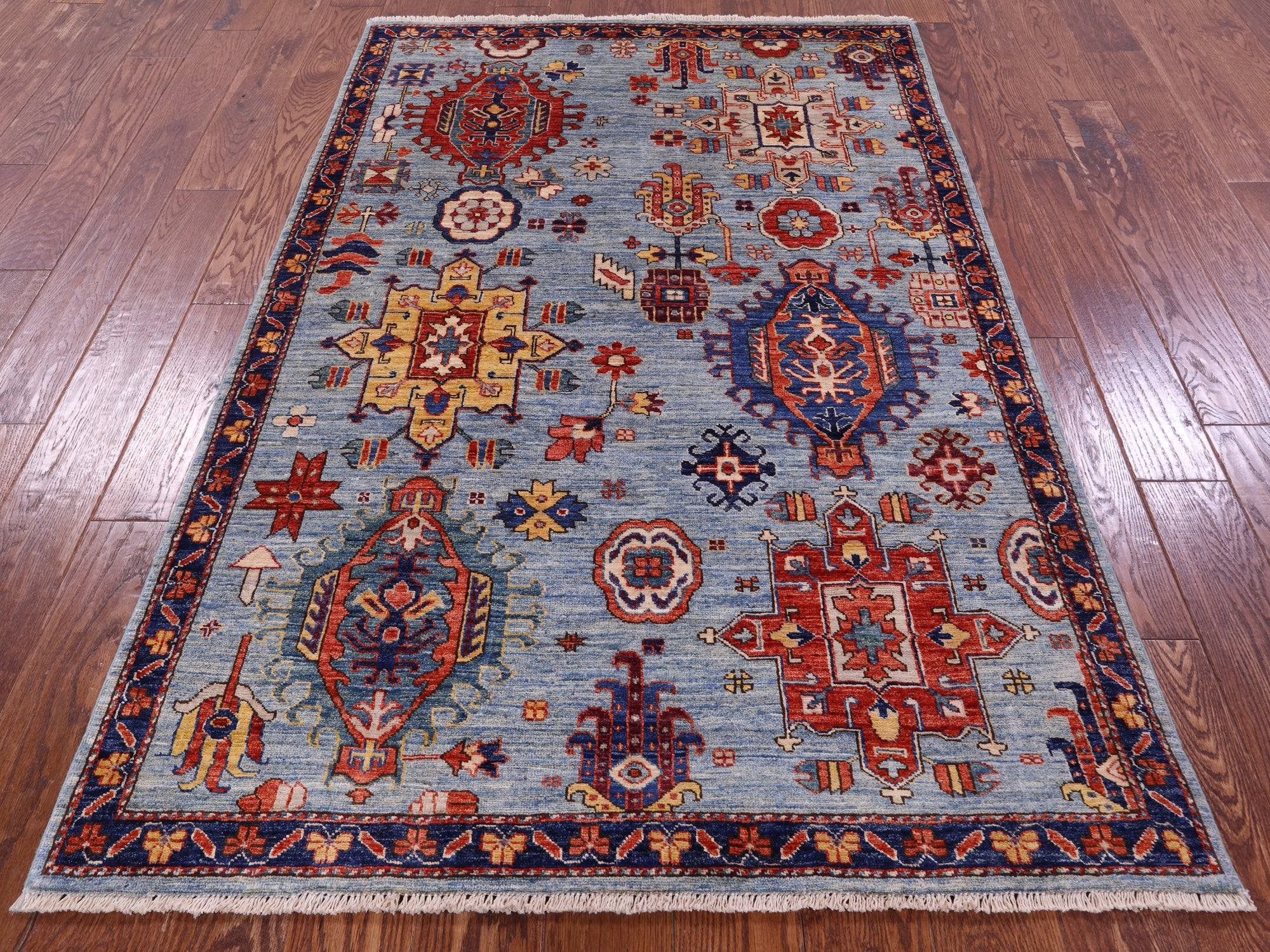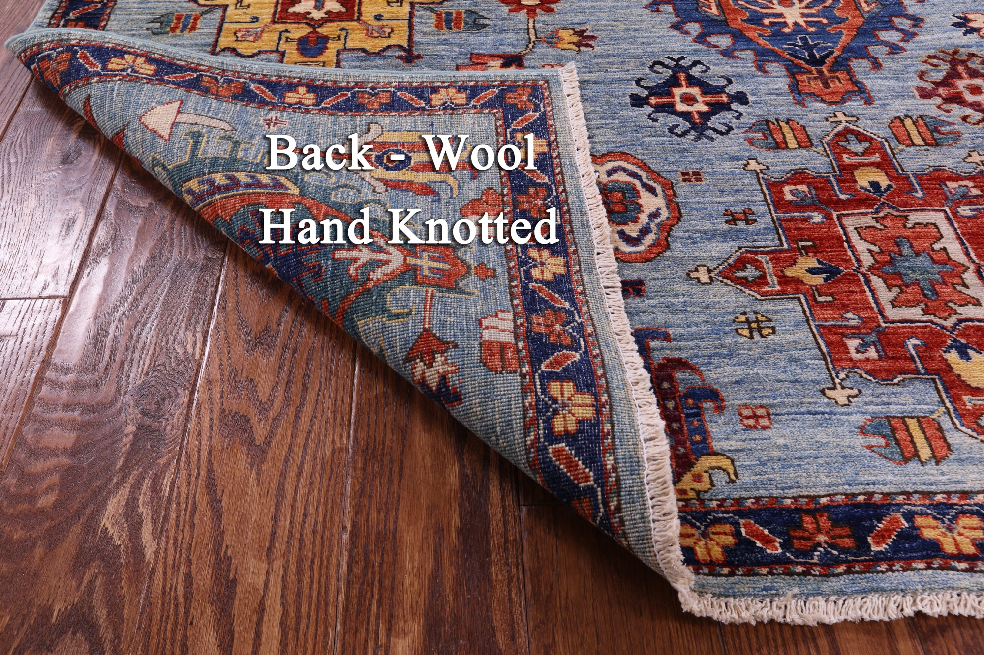 Blue Persian Fine Serapi Hand Knotted Wool Rug - 4' 0" X 6' 1"