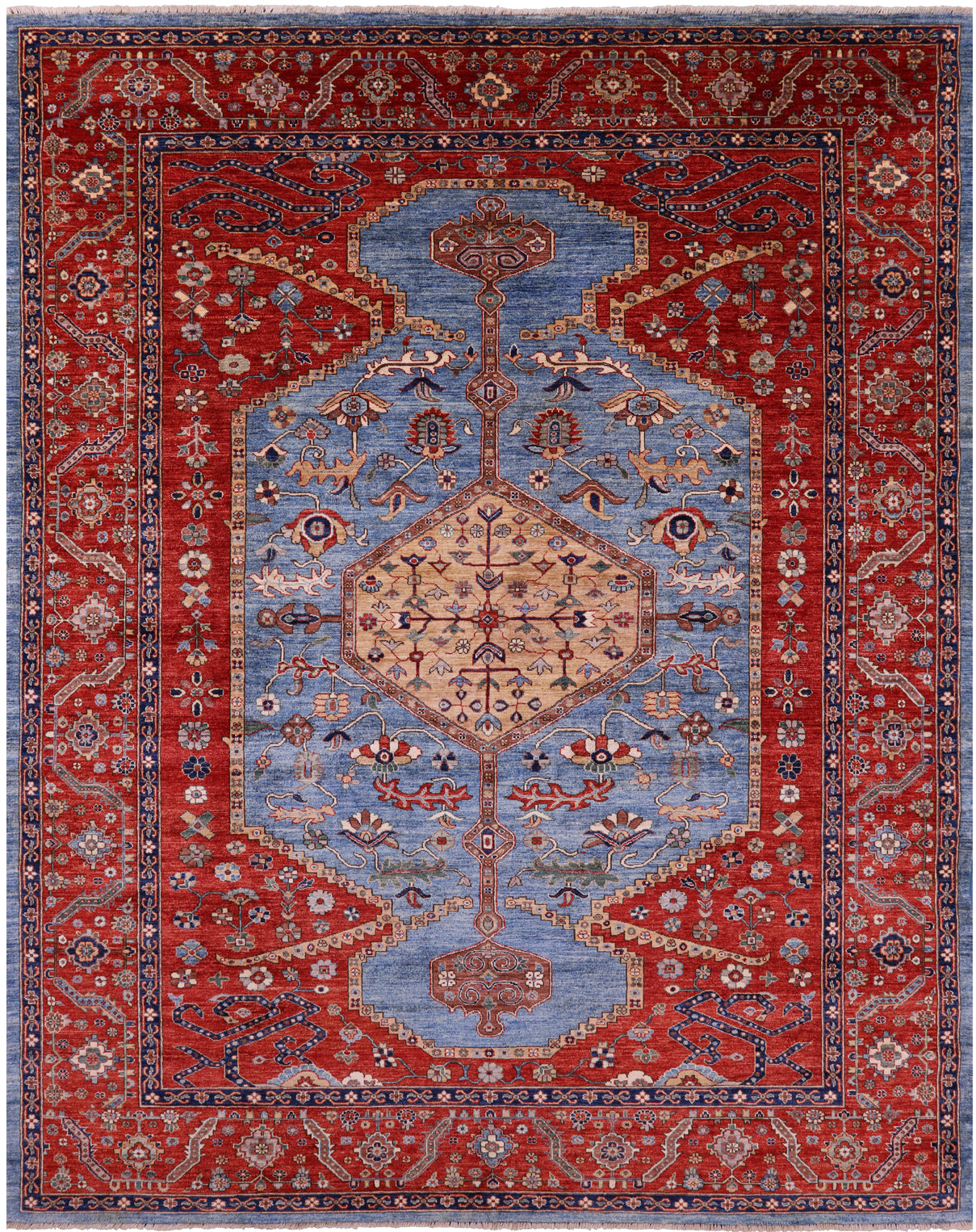 Serapi Rugs also known as Heriz, are known as the best handmade carpets with both geometric and curvilinear floral patterns. Their geometric figures, unique colors, high-quality construction and attention to detail makes Serapi Rugs the most iconic styles of Oriental Rugs. Their colors consist of unique shades of blue, black, red, green & ivory.