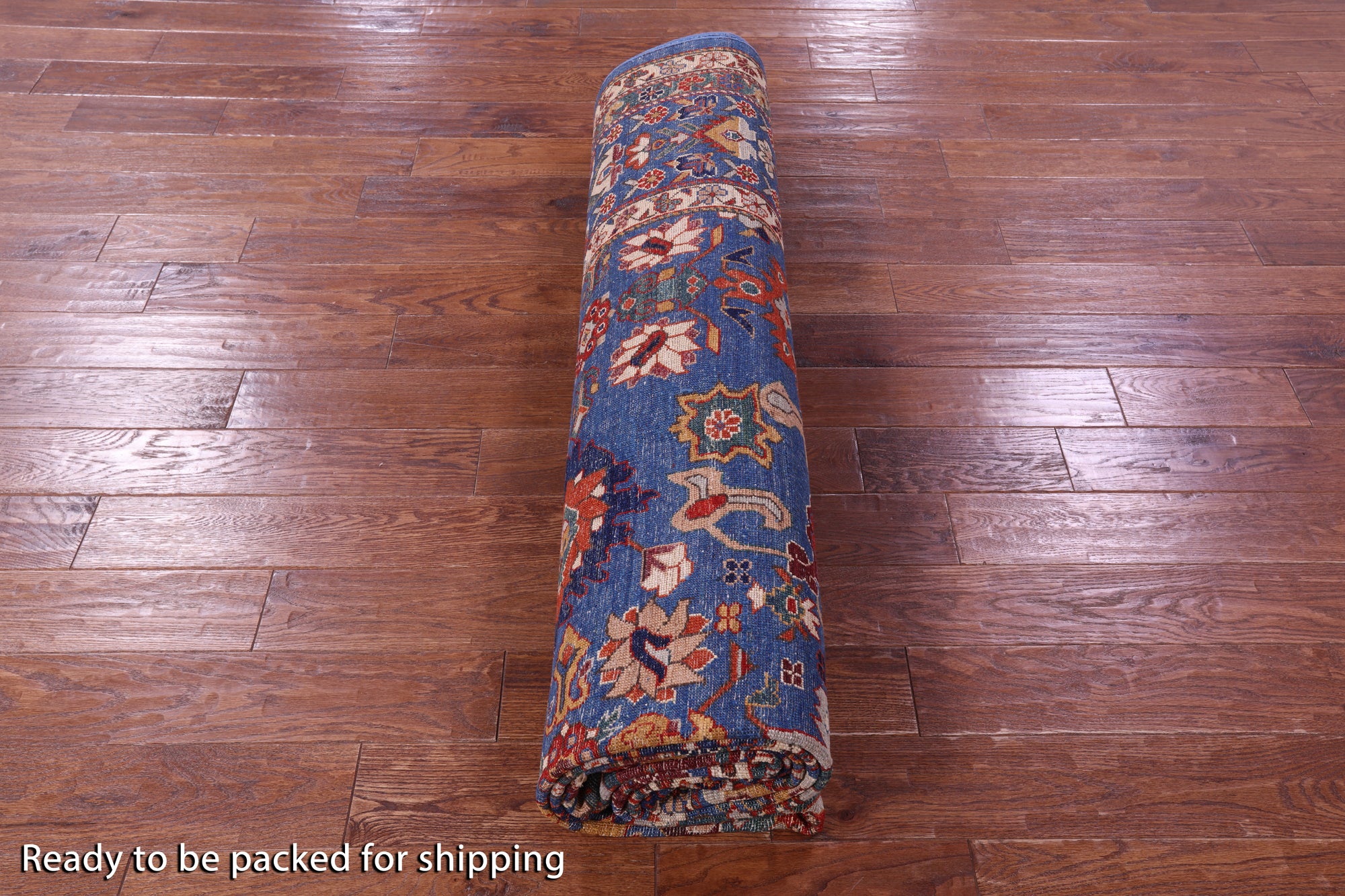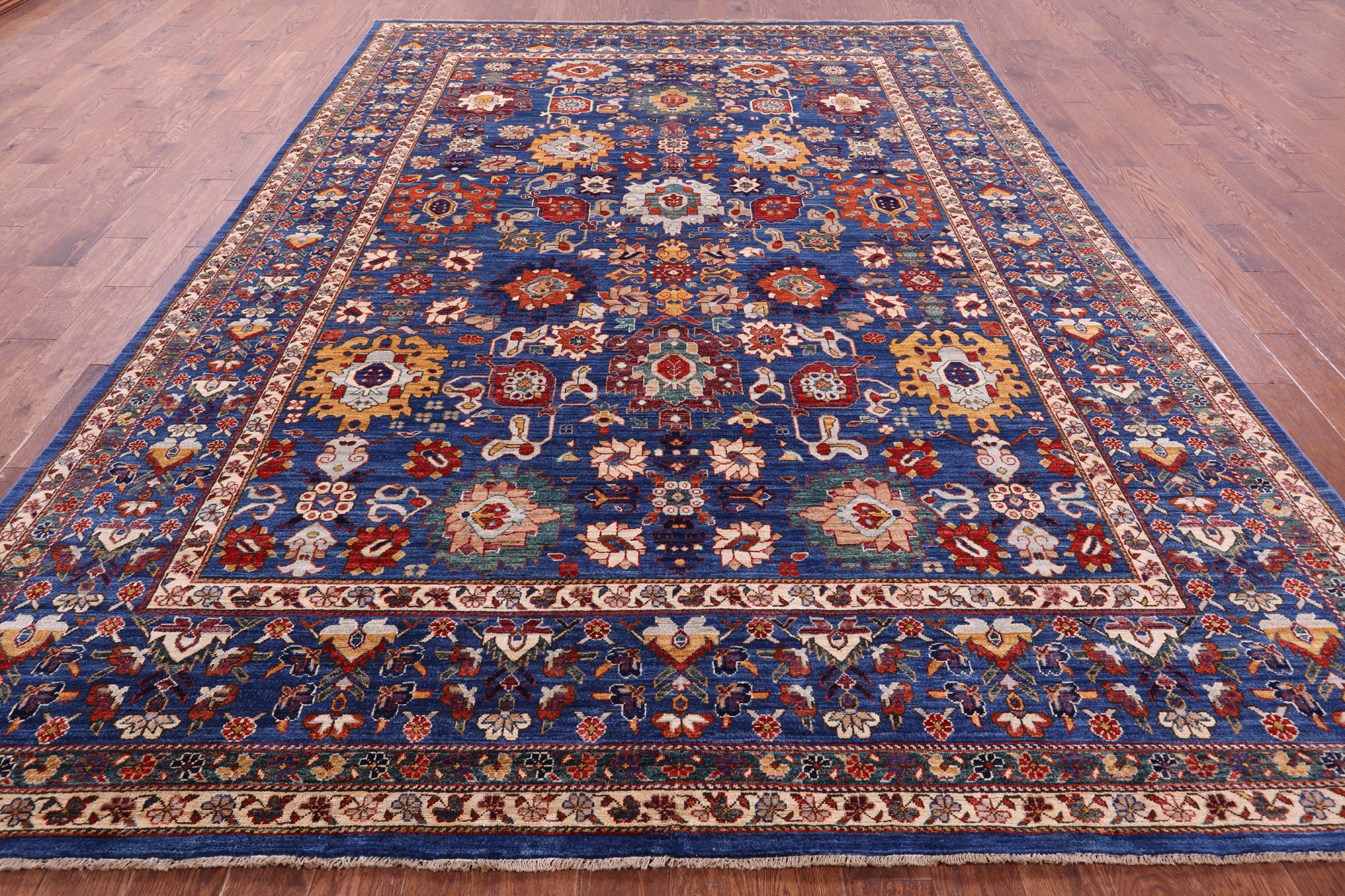Blue Persian Fine Serapi Hand Knotted Wool Rug - 8' 11" X 12' 4"