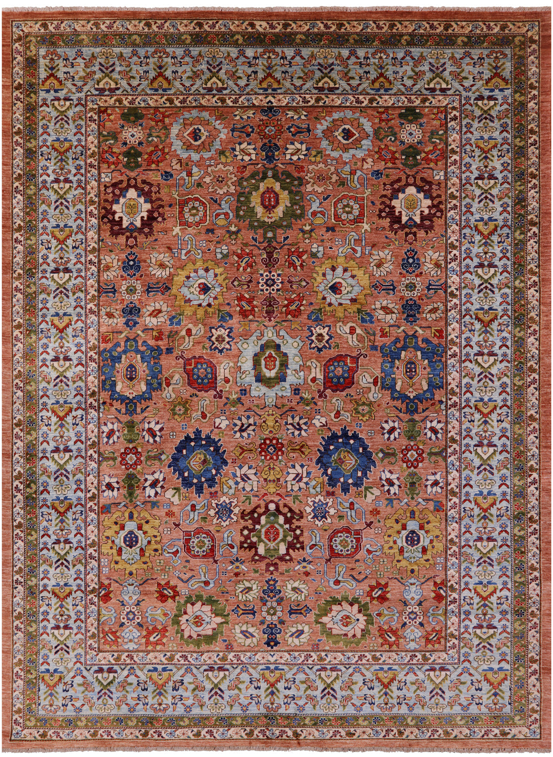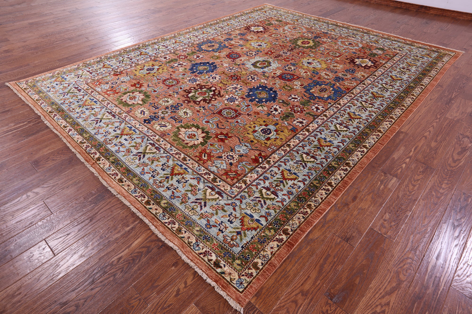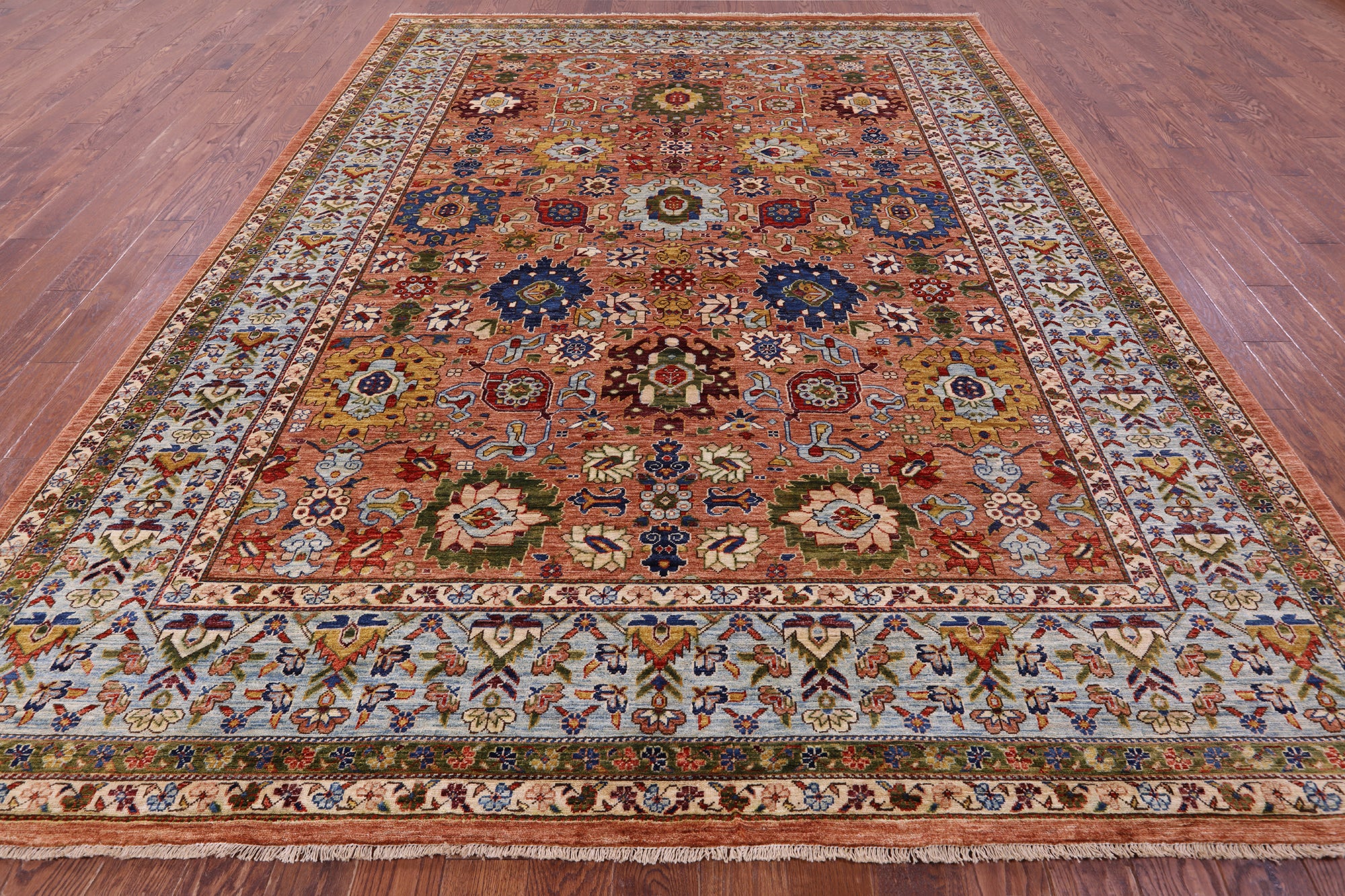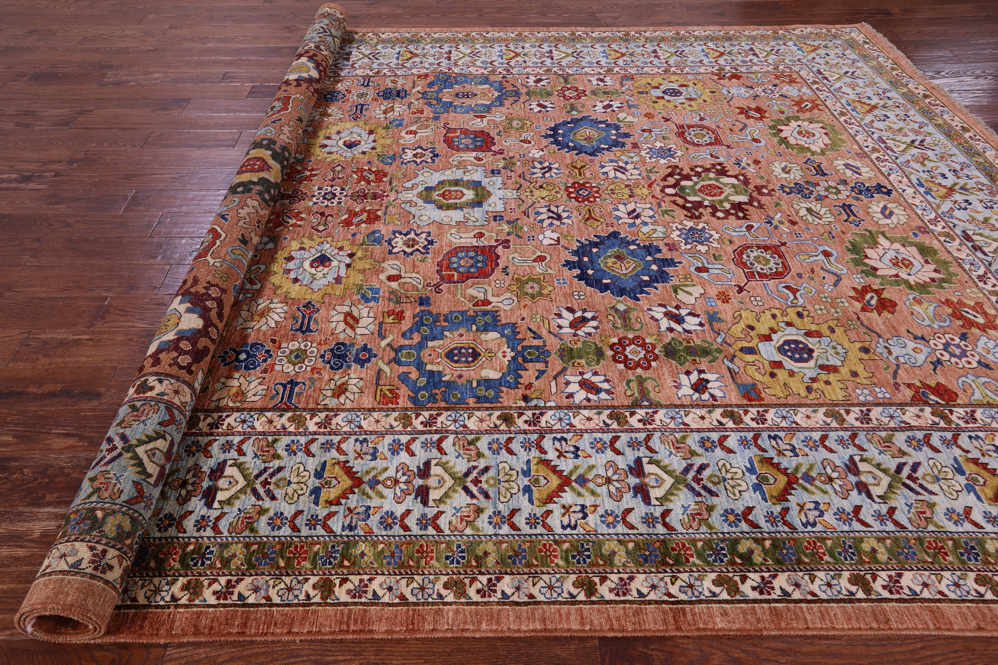 Serapi Rugs also known as Heriz, are known as the best handmade carpets with both geometric and curvilinear floral patterns. Their geometric figures, unique colors, high-quality construction and attention to detail makes Serapi Rugs the most iconic styles of Oriental Rugs. Their colors consist of unique shades of blue, black, red, green & ivory.
