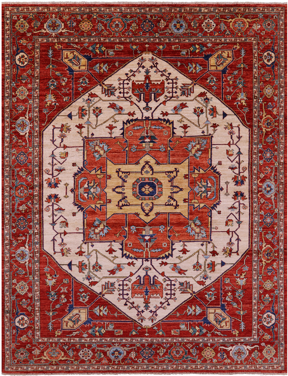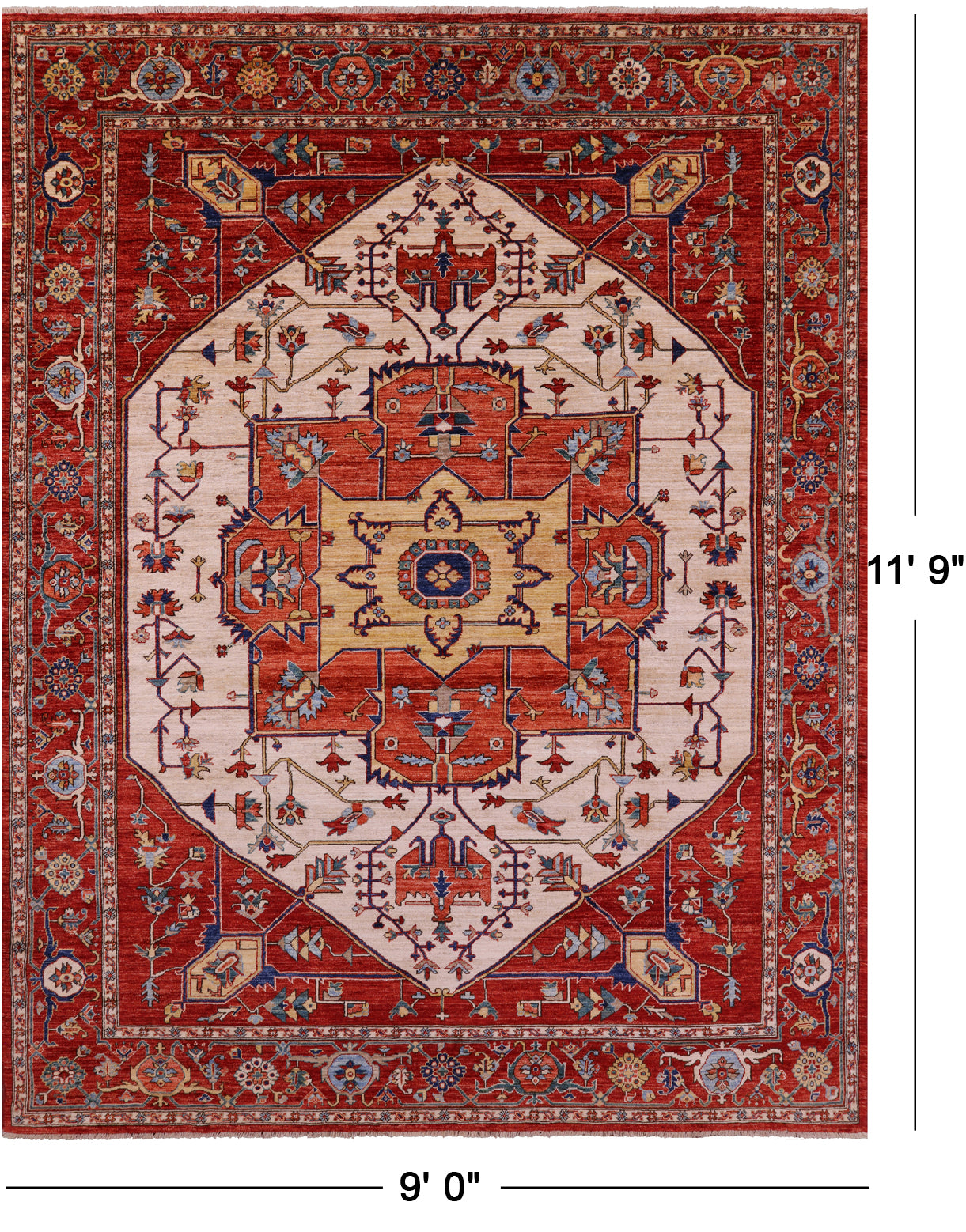 Persian Fine Serapi Hand Knotted Wool Rug - 9' 0" X 11' 9"