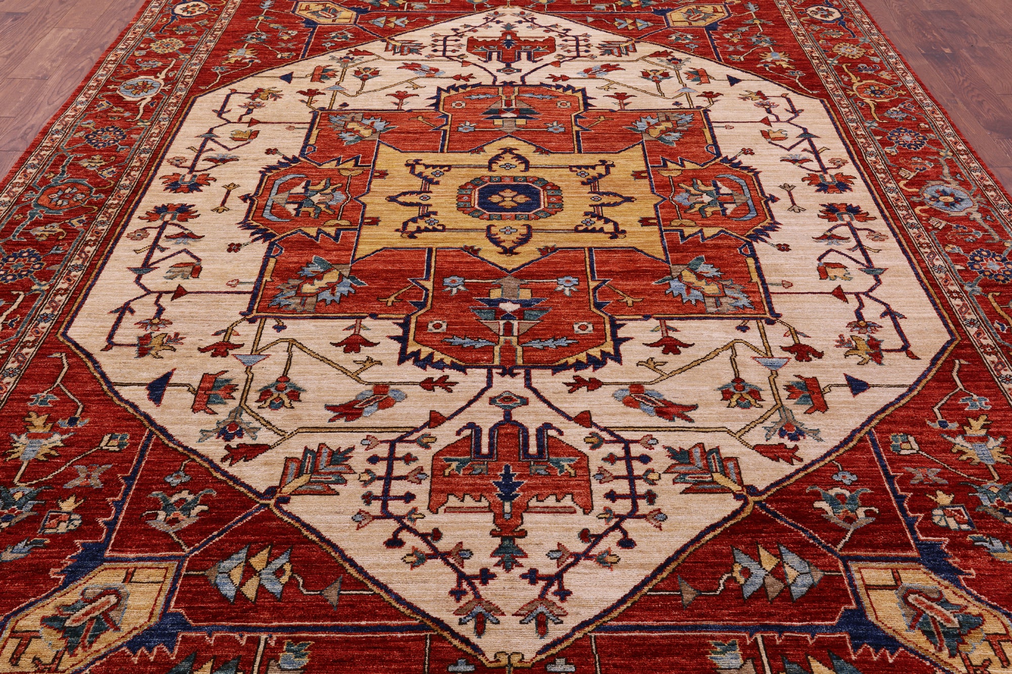 Heriz rug is a type of traditional Persian rug, known for its bold geometric patterns and bright colors. They are hand-woven and made of wool or a wool and silk. Heriz rugs are valued for their durability and intricate designs, and are popular in both traditional and modern interior design settings.