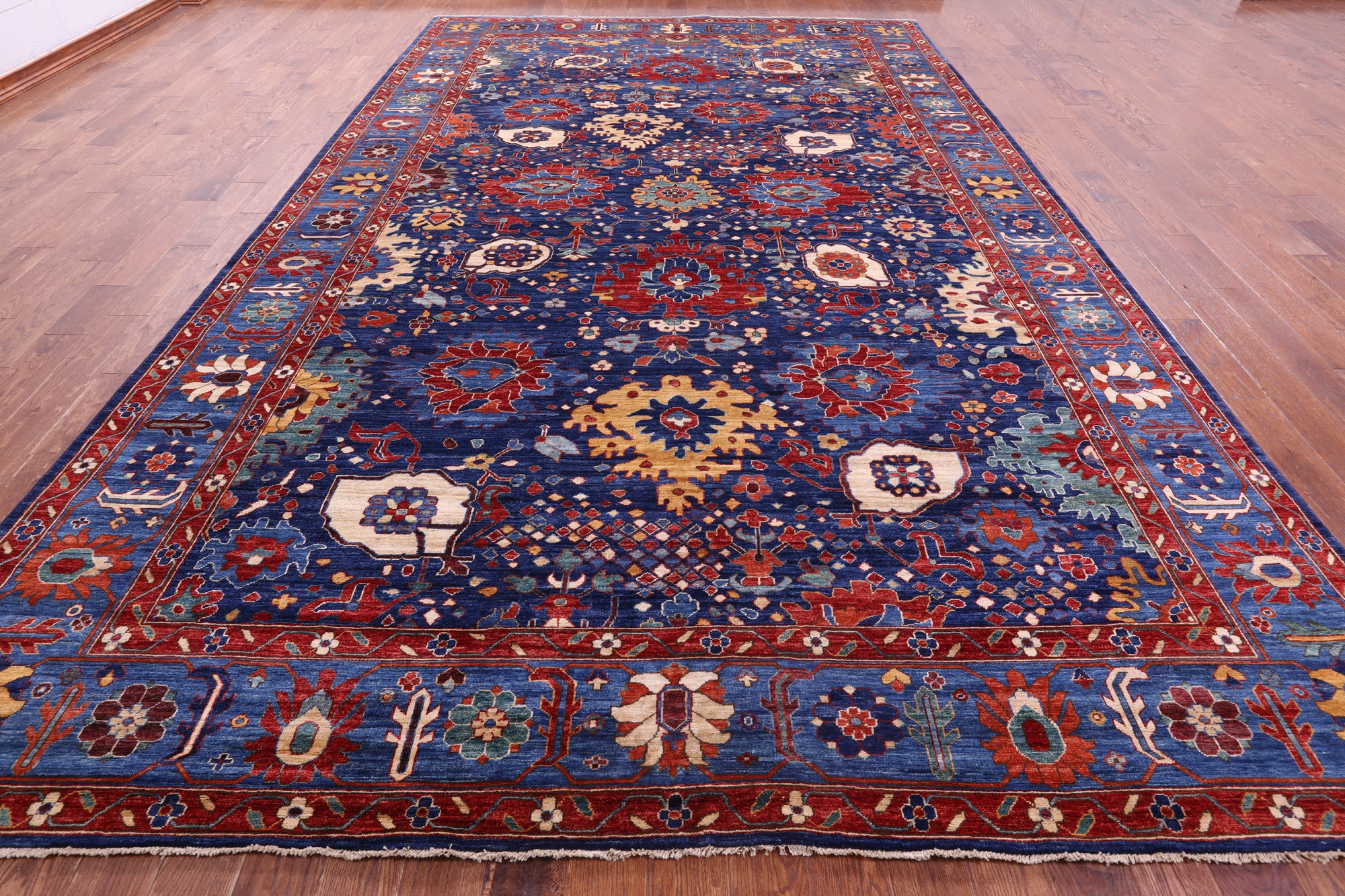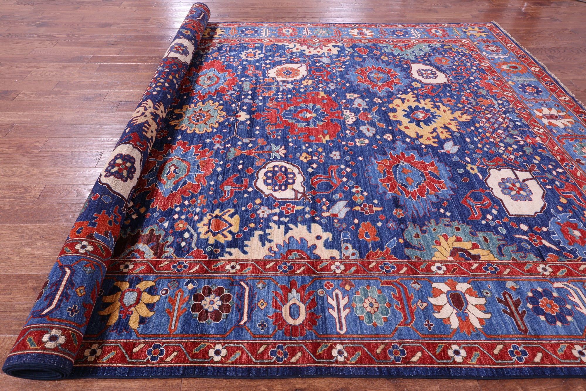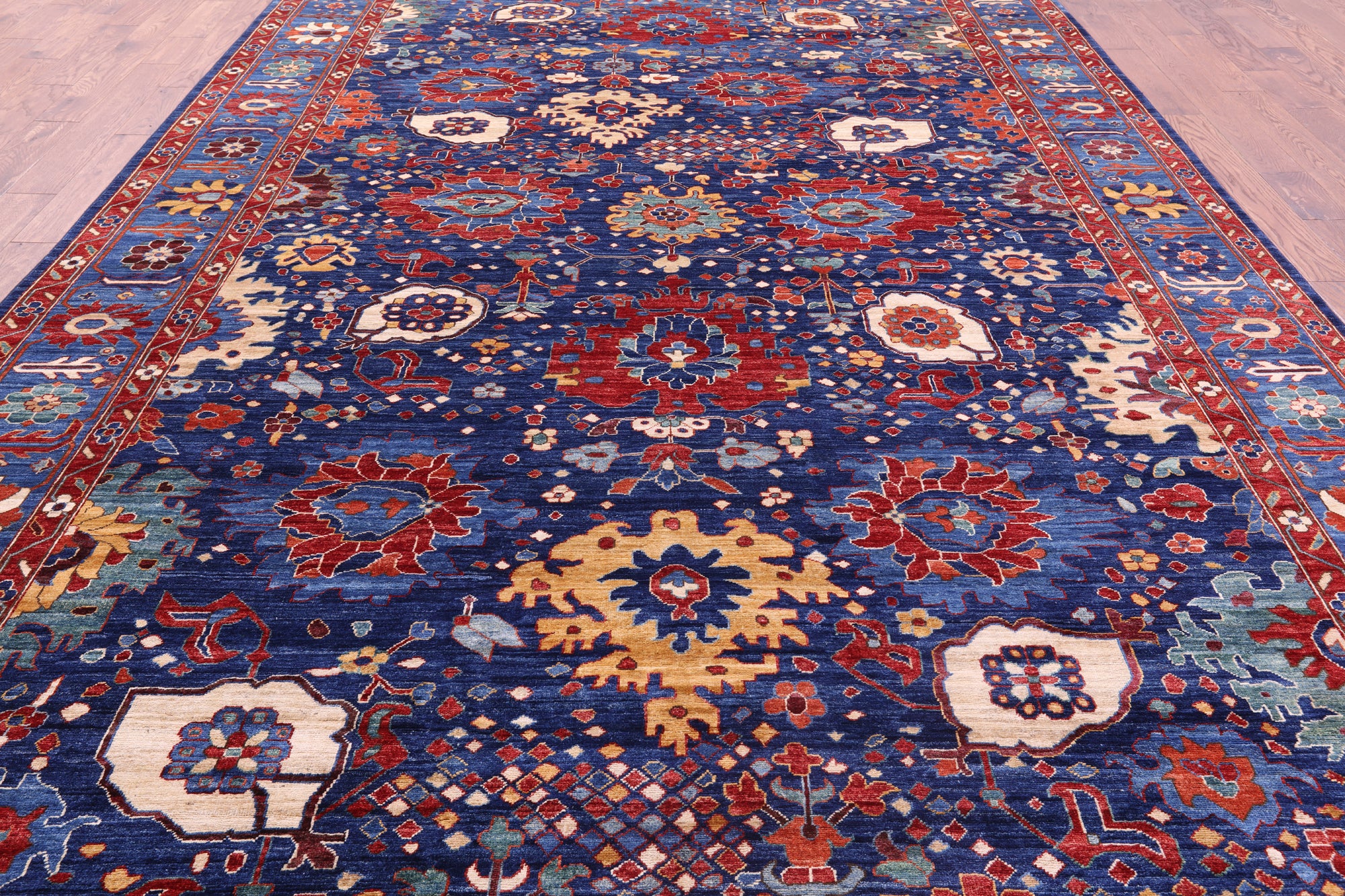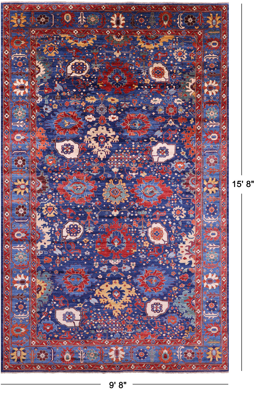 Blue Persian Fine Serapi Hand Knotted Wool Rug - 9' 8" X 15' 8"
