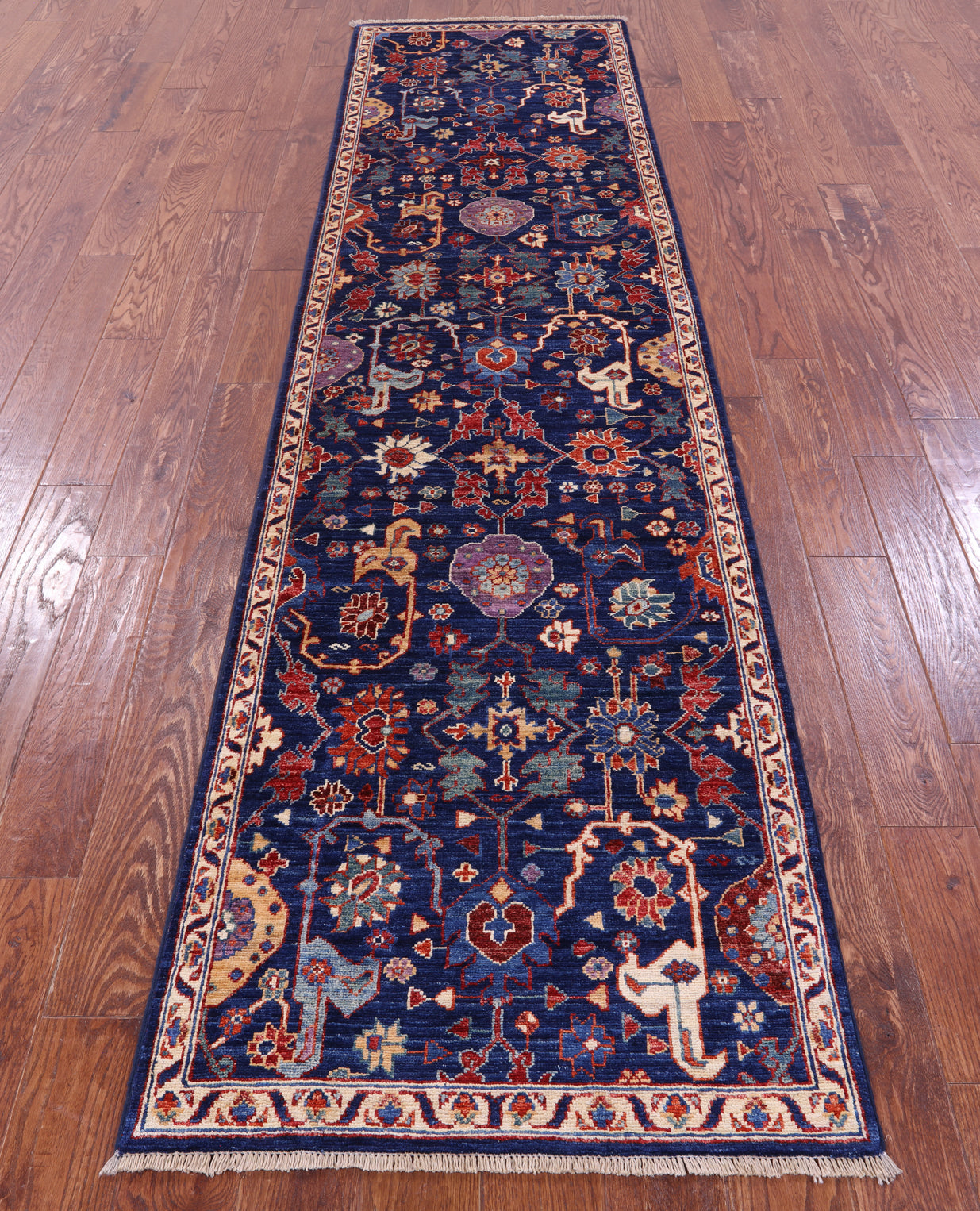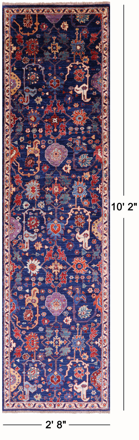 Blue Persian Fine Serapi Hand Knotted Wool Runner Rug - 2' 8" X 10' 2"