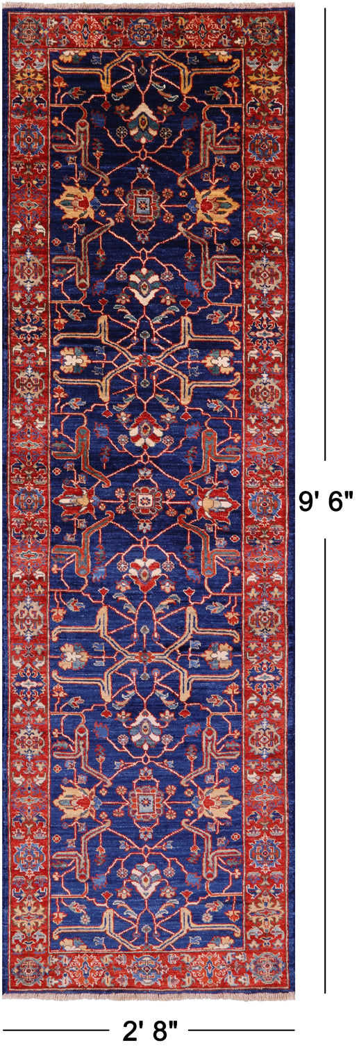 Blue Persian Fine Serapi Hand Knotted Wool Runner Rug - 2' 8" X 9' 6"