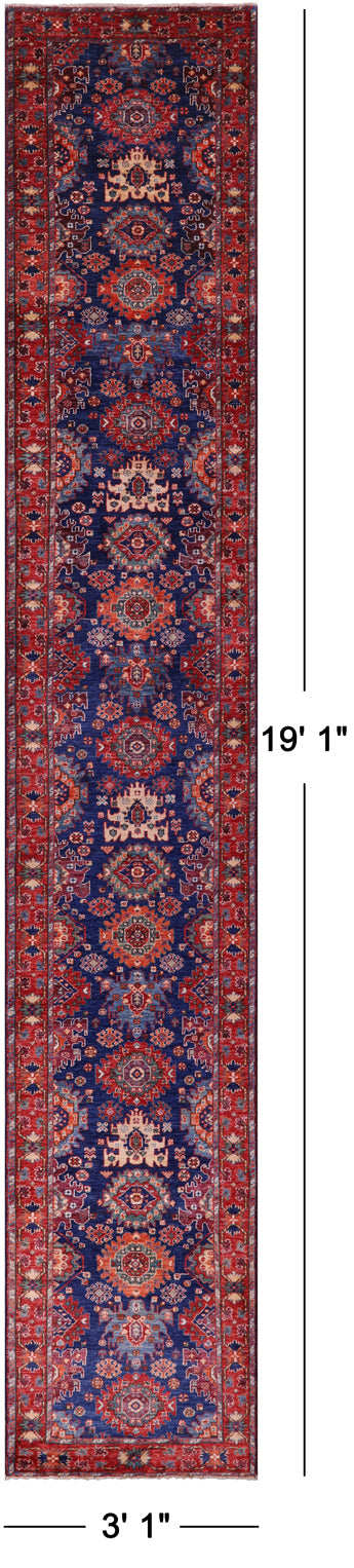 Persian Fine Serapi Hand Knotted Wool Runner Rug - 3' 1" X 19' 1"
