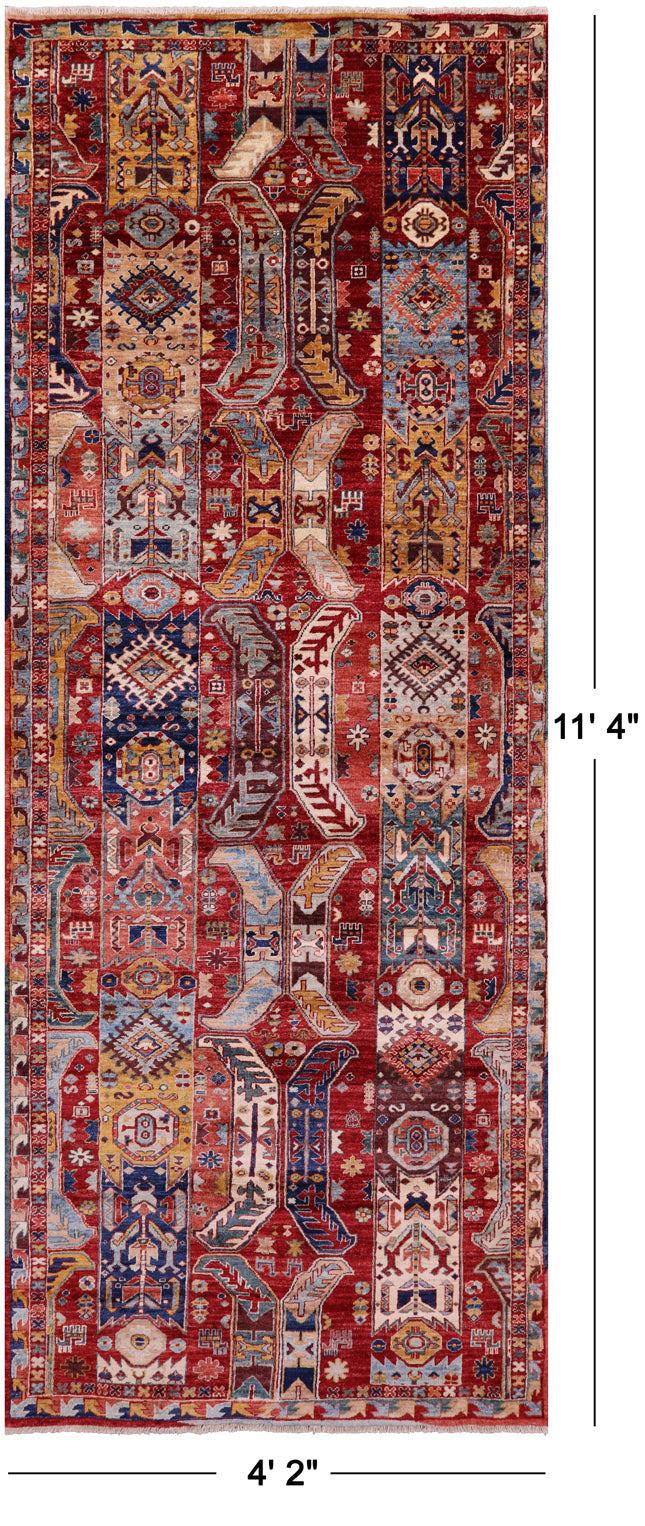 Persian Fine Serapi Hand Knotted Wool Runner Rug - 4' 2" X 11' 4"