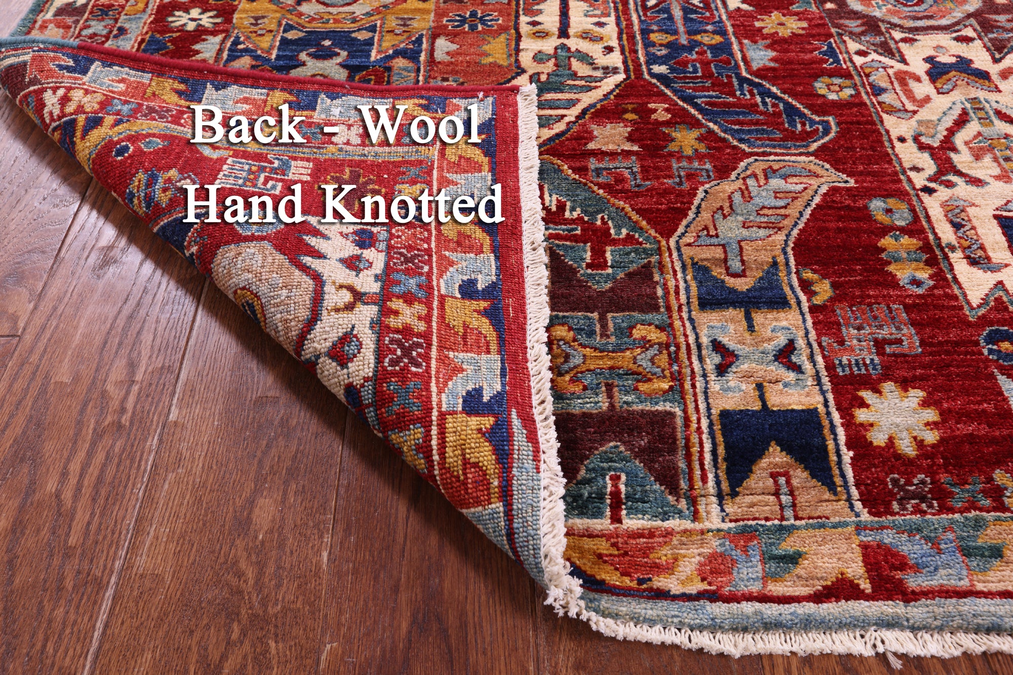 The Heriz Serapi rug is a masterpiece of craftsmanship, showcasing bold geometric patterns and rich colors. Each rug is meticulously hand knotted with precision, featuring a distinctive design that seamlessly blends durability with timeless elegance. Crafted from high-quality materials, this rug serves as an enduring and captivating accent piece, adding a touch of traditional charm to any living space.