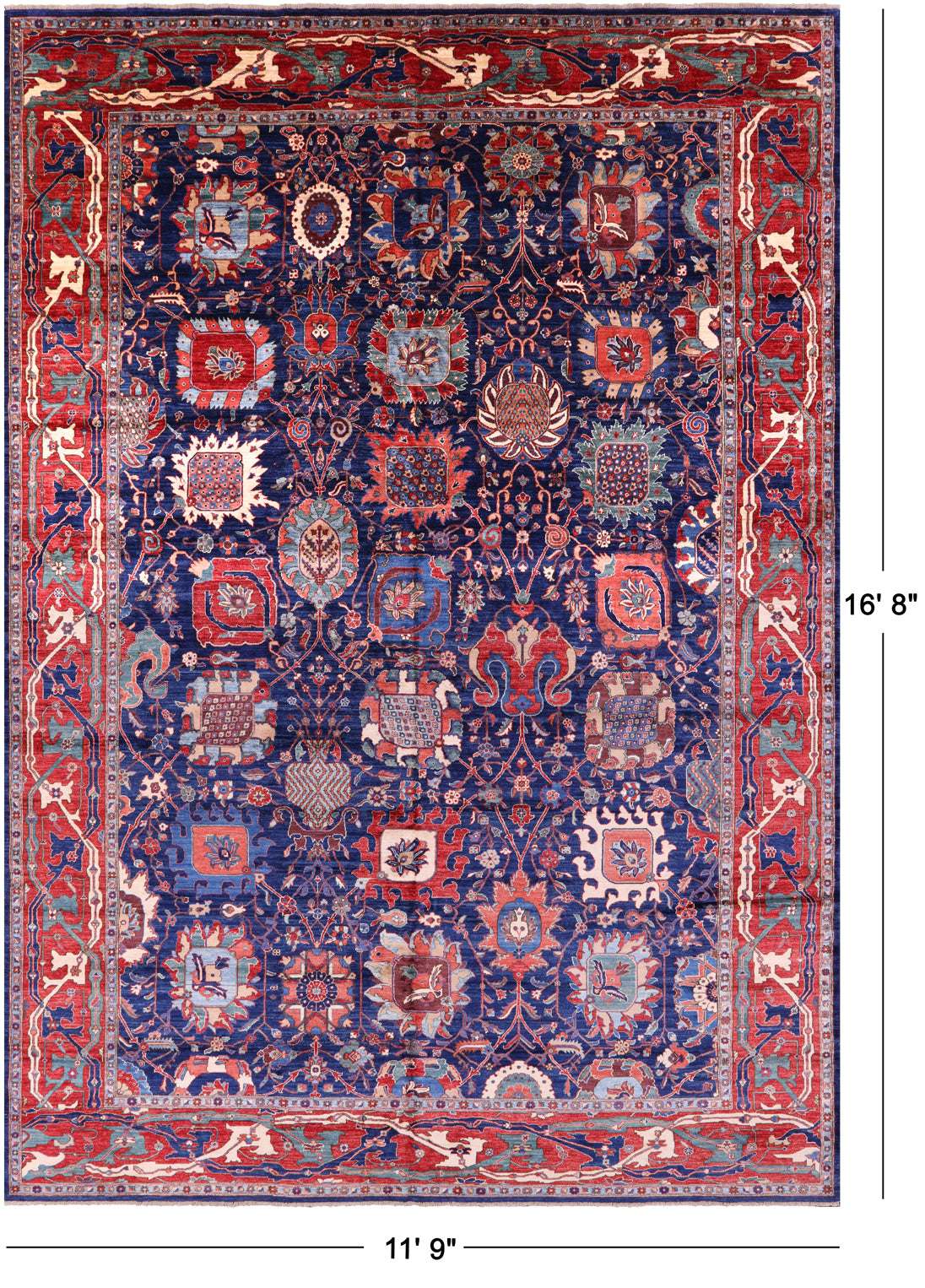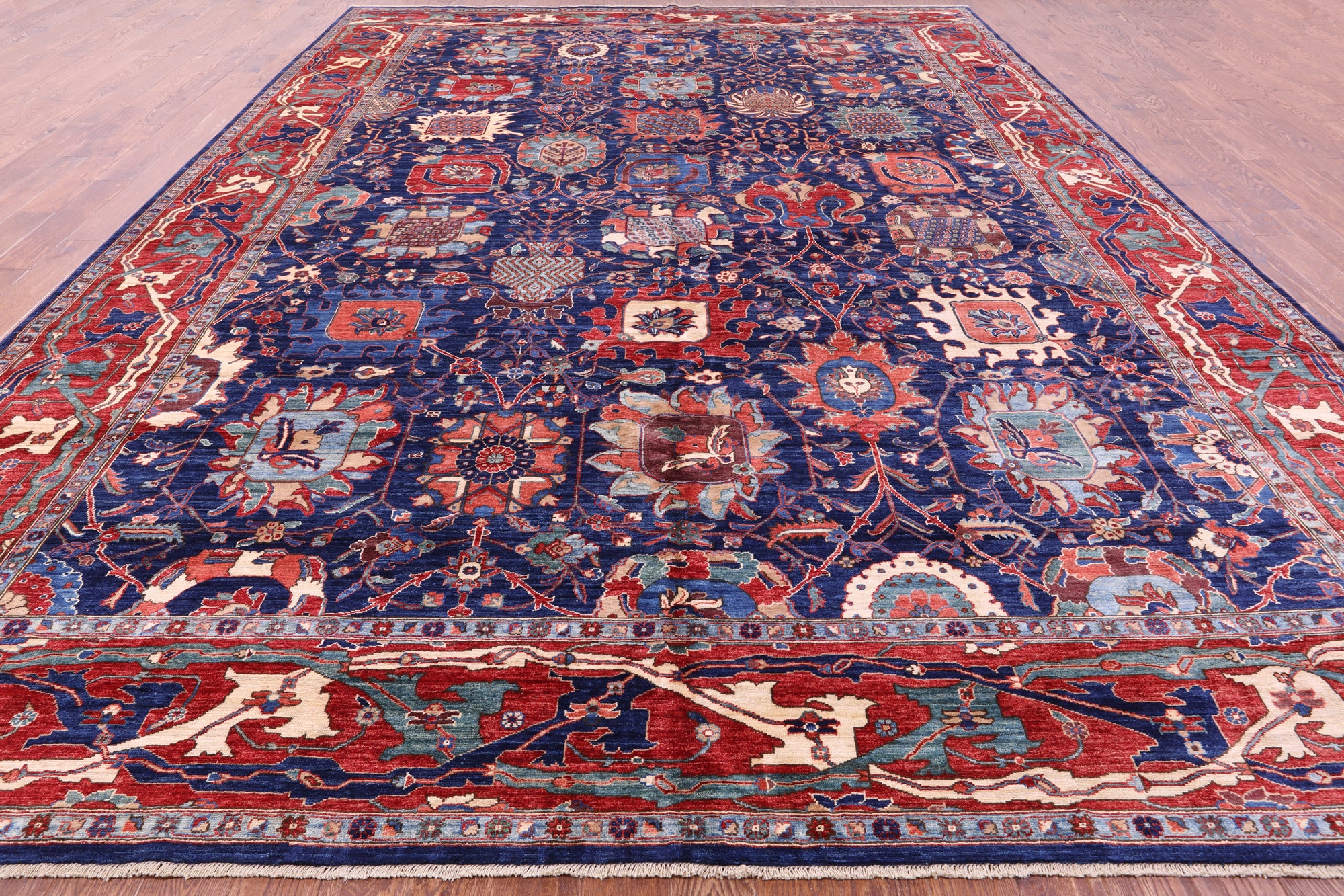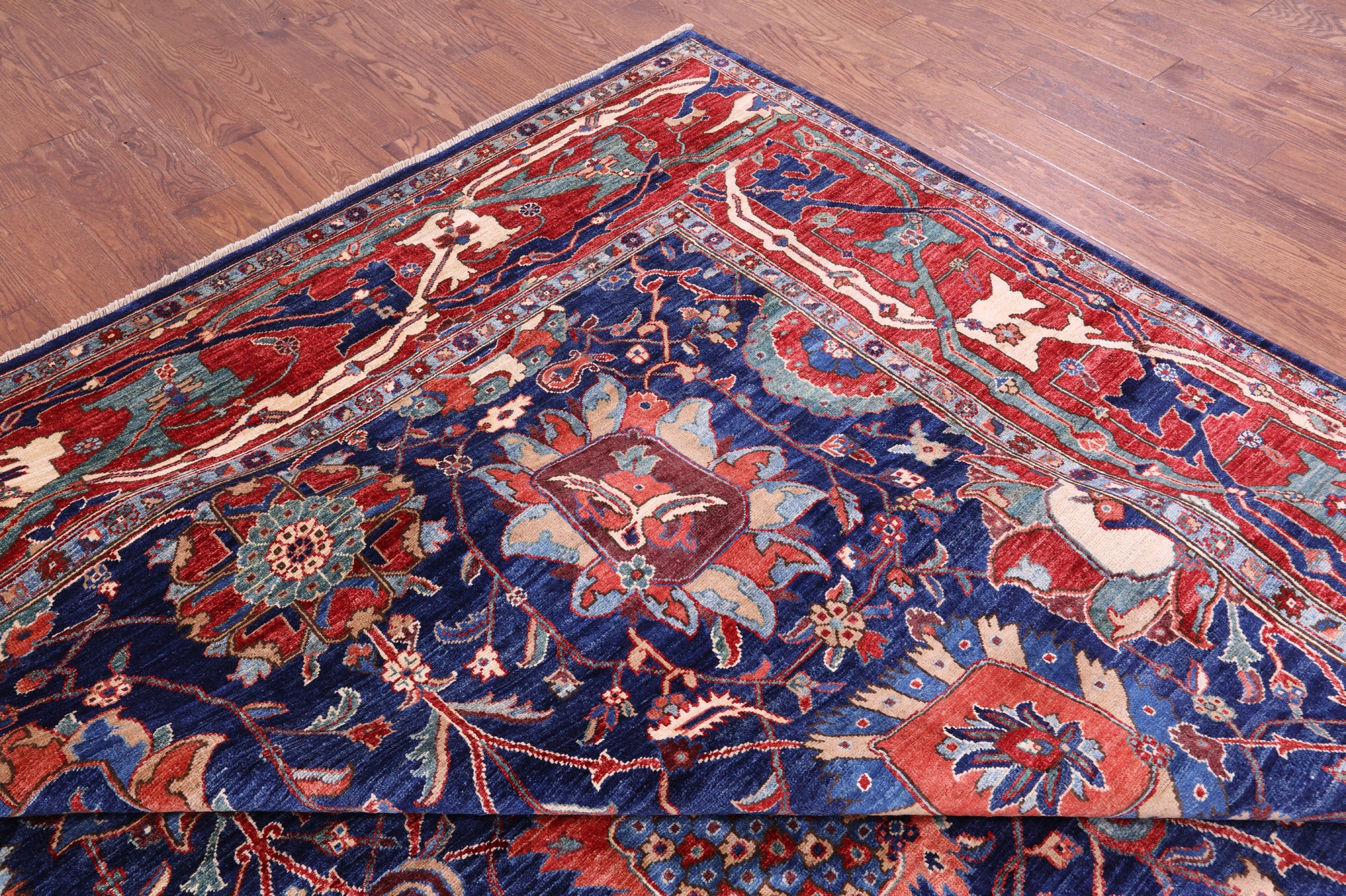 Blue Persian Fine Serapi Handmade Wool Rug - 11' 9" X 16' 8"