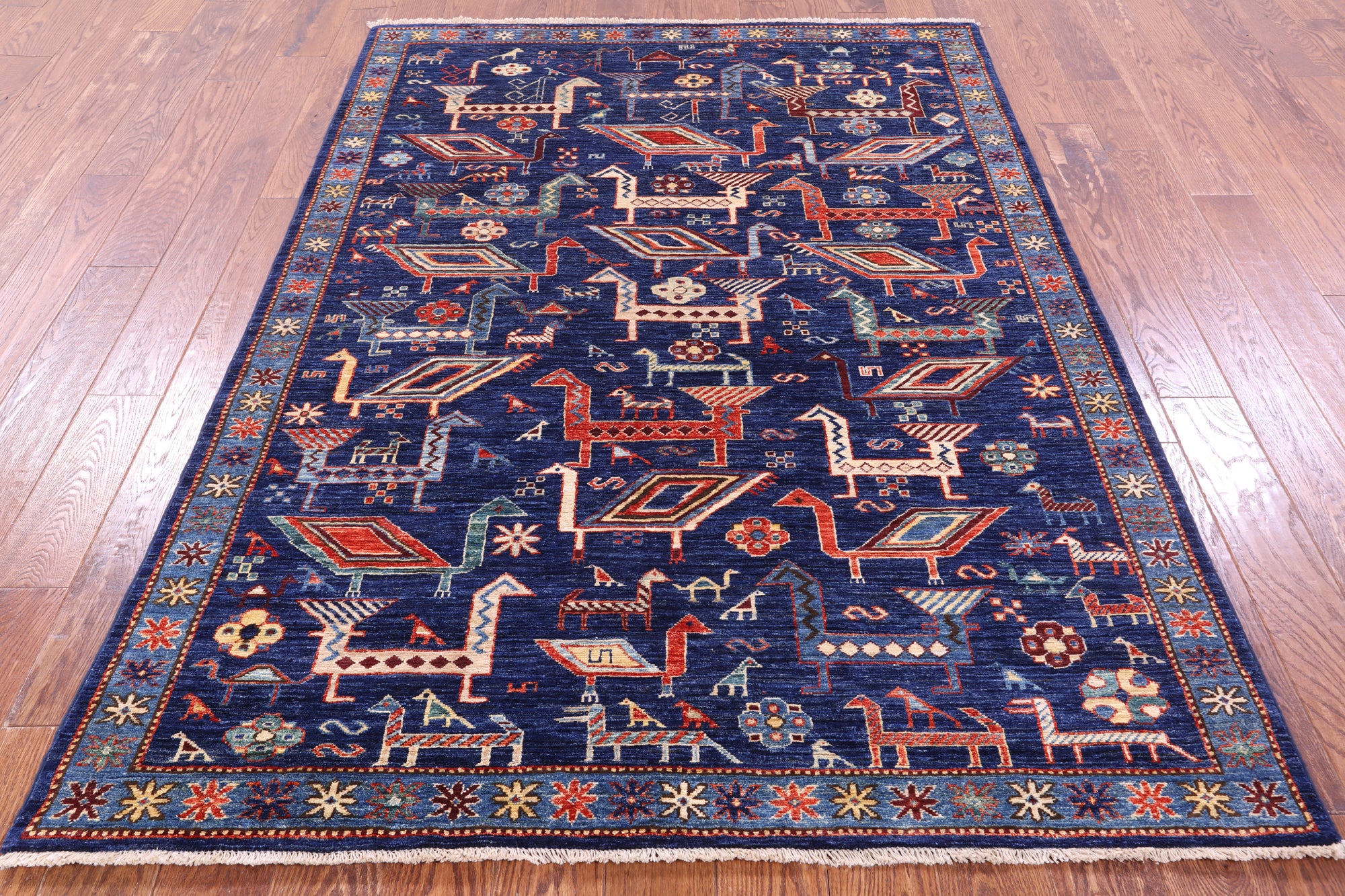 Blue Persian Fine Serapi Handmade Wool Rug - 5' 0" X 6' 10"