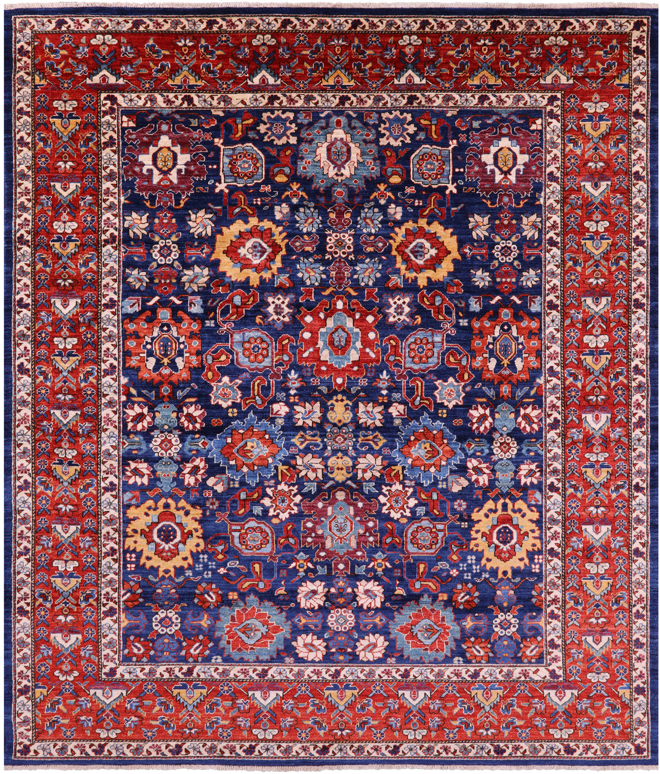 Blue Persian Fine Serapi Handmade Wool Rug - 8' 1" X 9' 8"