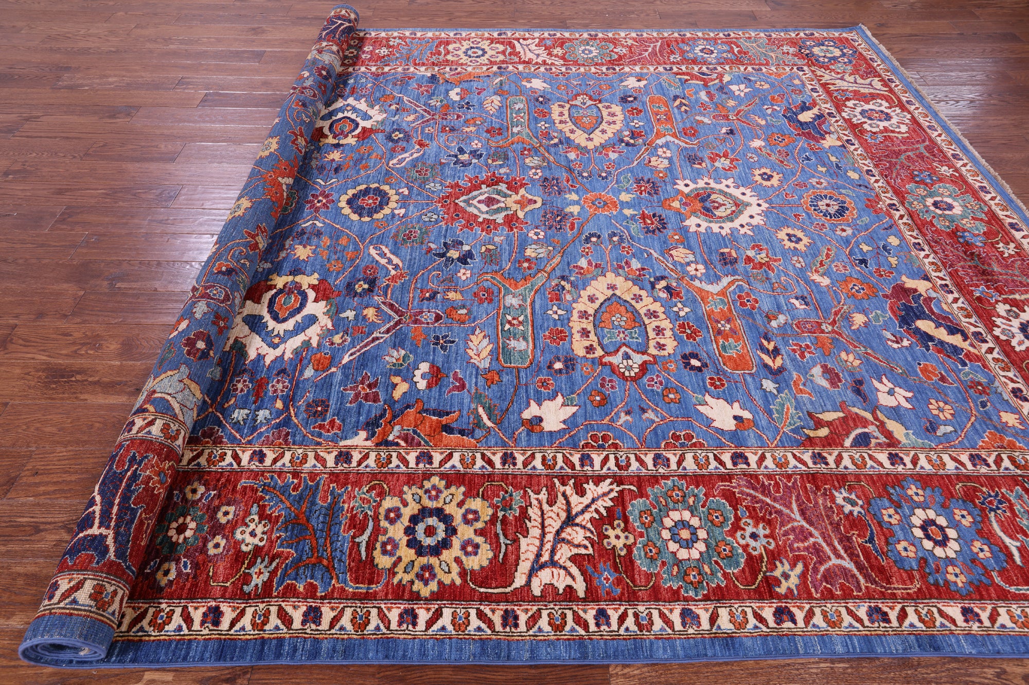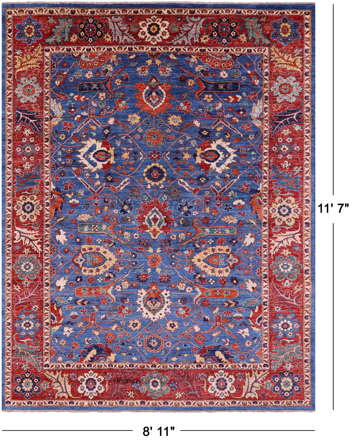 Blue Persian Fine Serapi Handmade Wool Rug - 8' 11" X 11' 7"