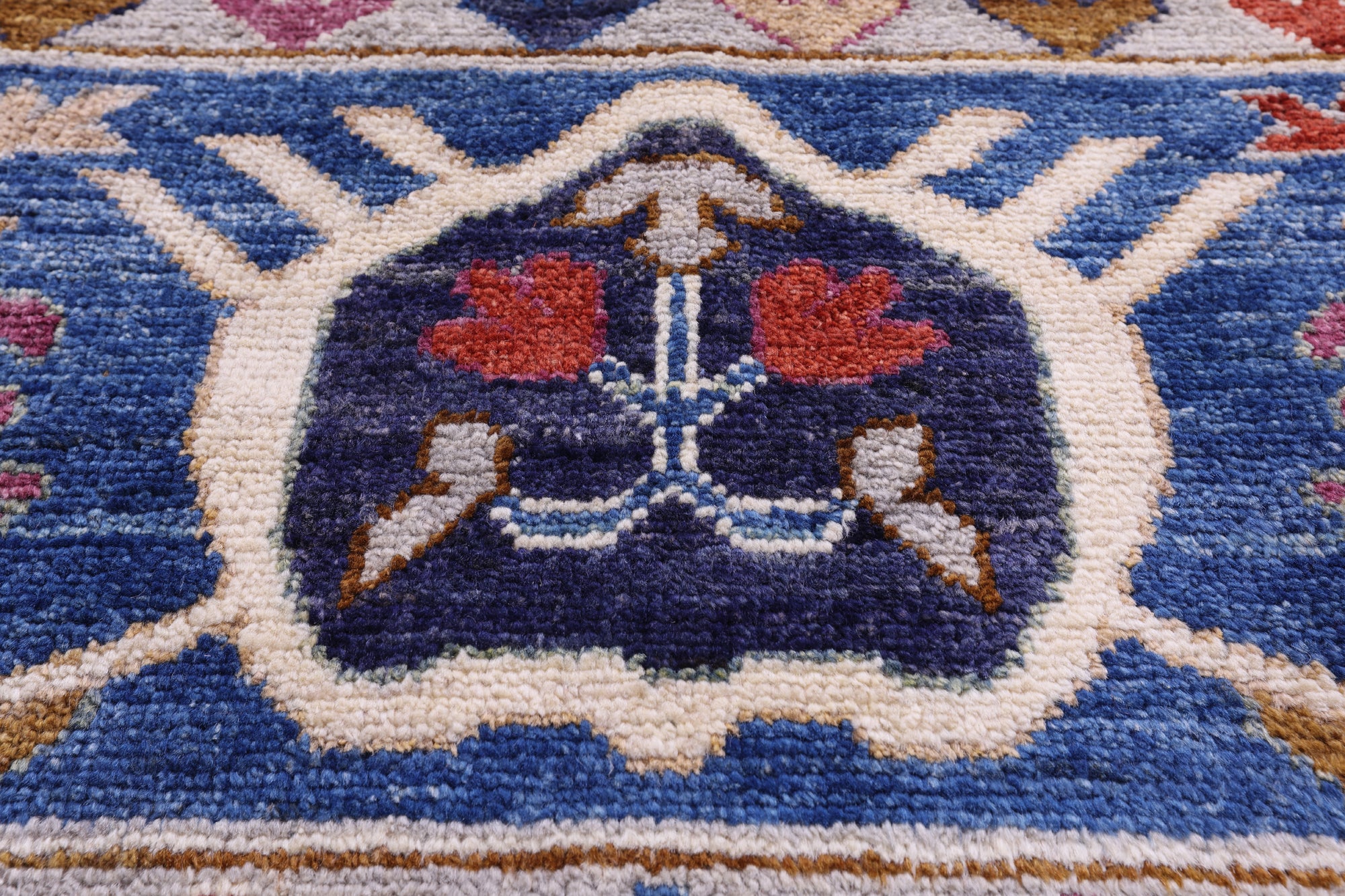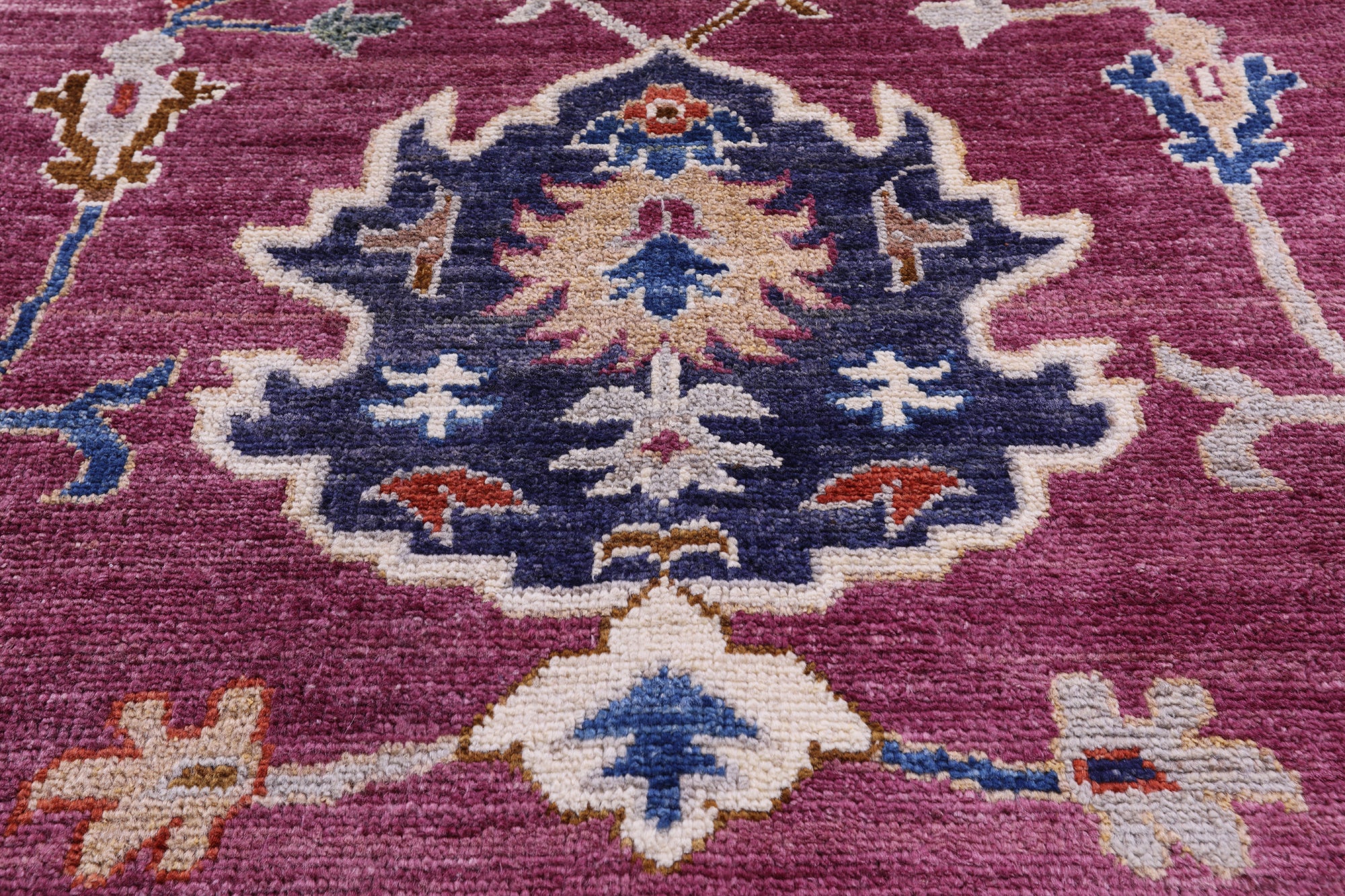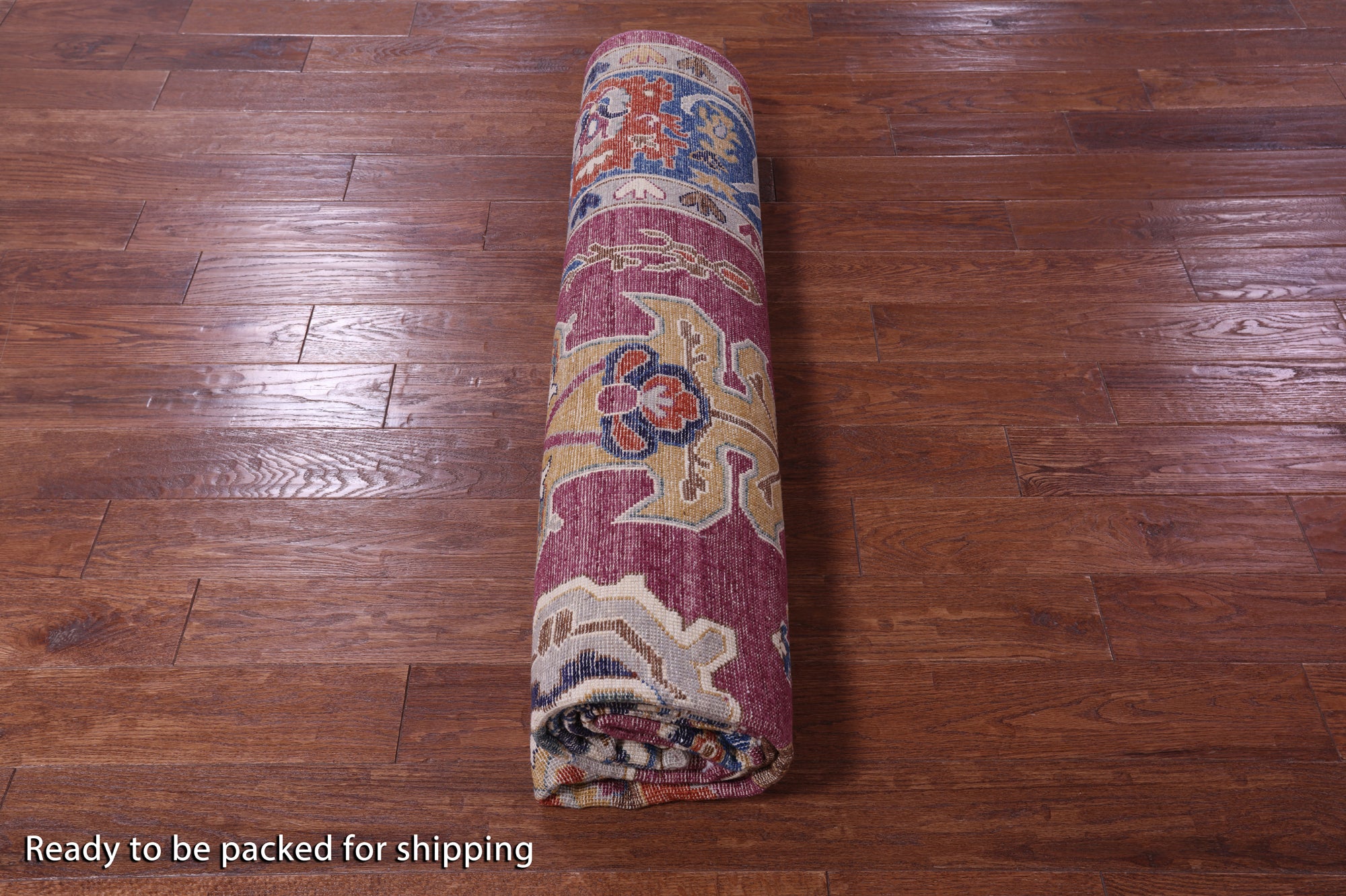 Heriz Serapi rugs are commonly known to be highly durable and are great for high traffic areas. Their medallions can be seen as large and angular, surrounded by more rigid lines and flowy floral patterns or they can also come in strictly geometric floral designs all symmetrically placed. The colors are elegant reds and indigos set against creamy ivory.