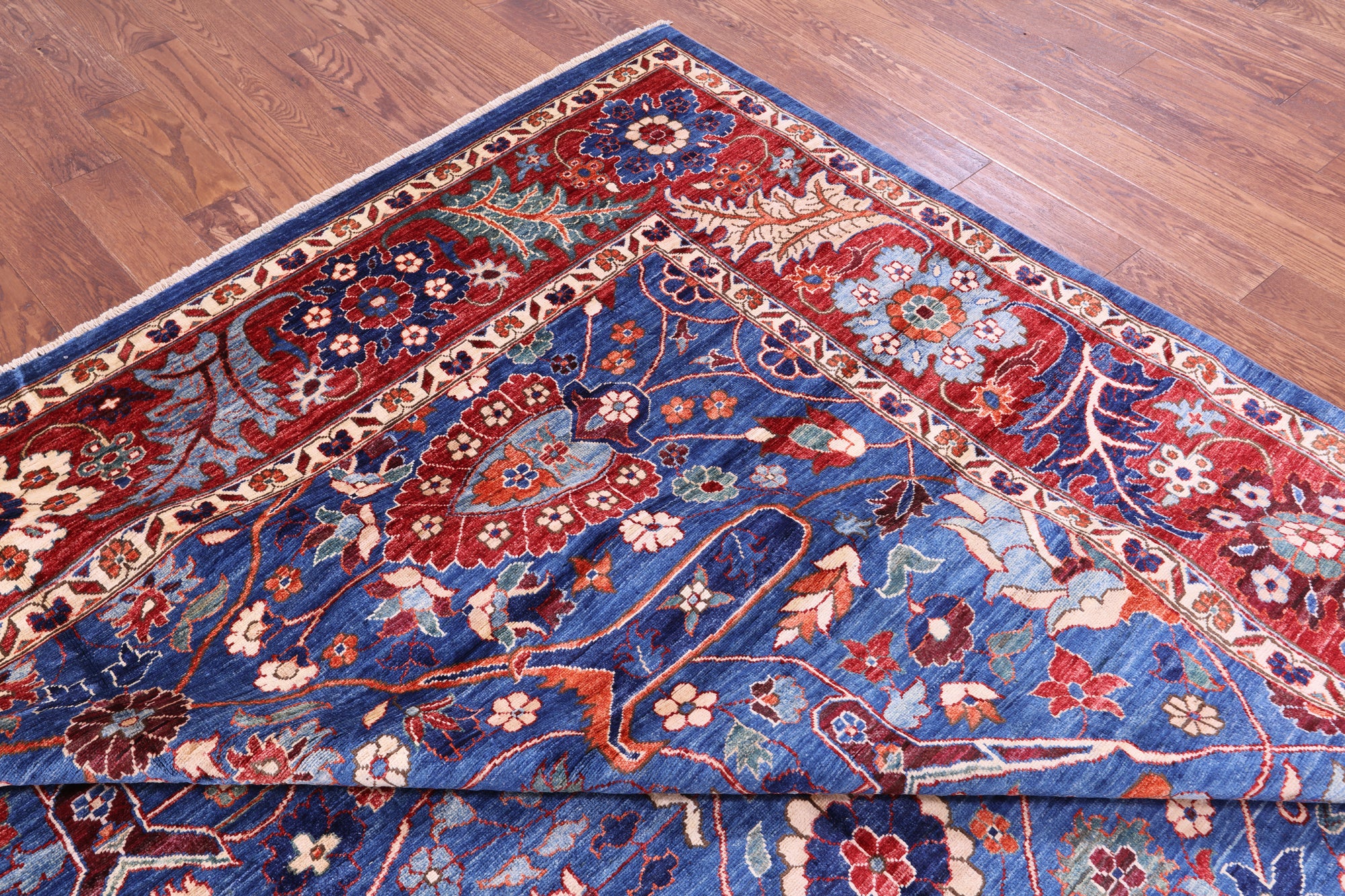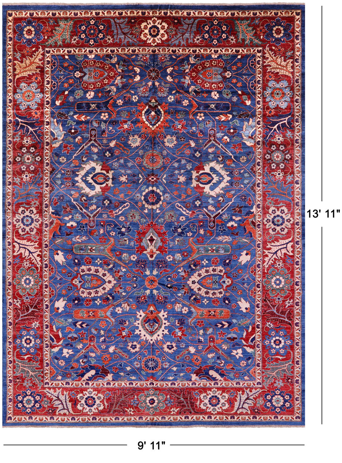 Blue Persian Fine Serapi Handmade Wool Rug - 9' 11" X 13' 11"