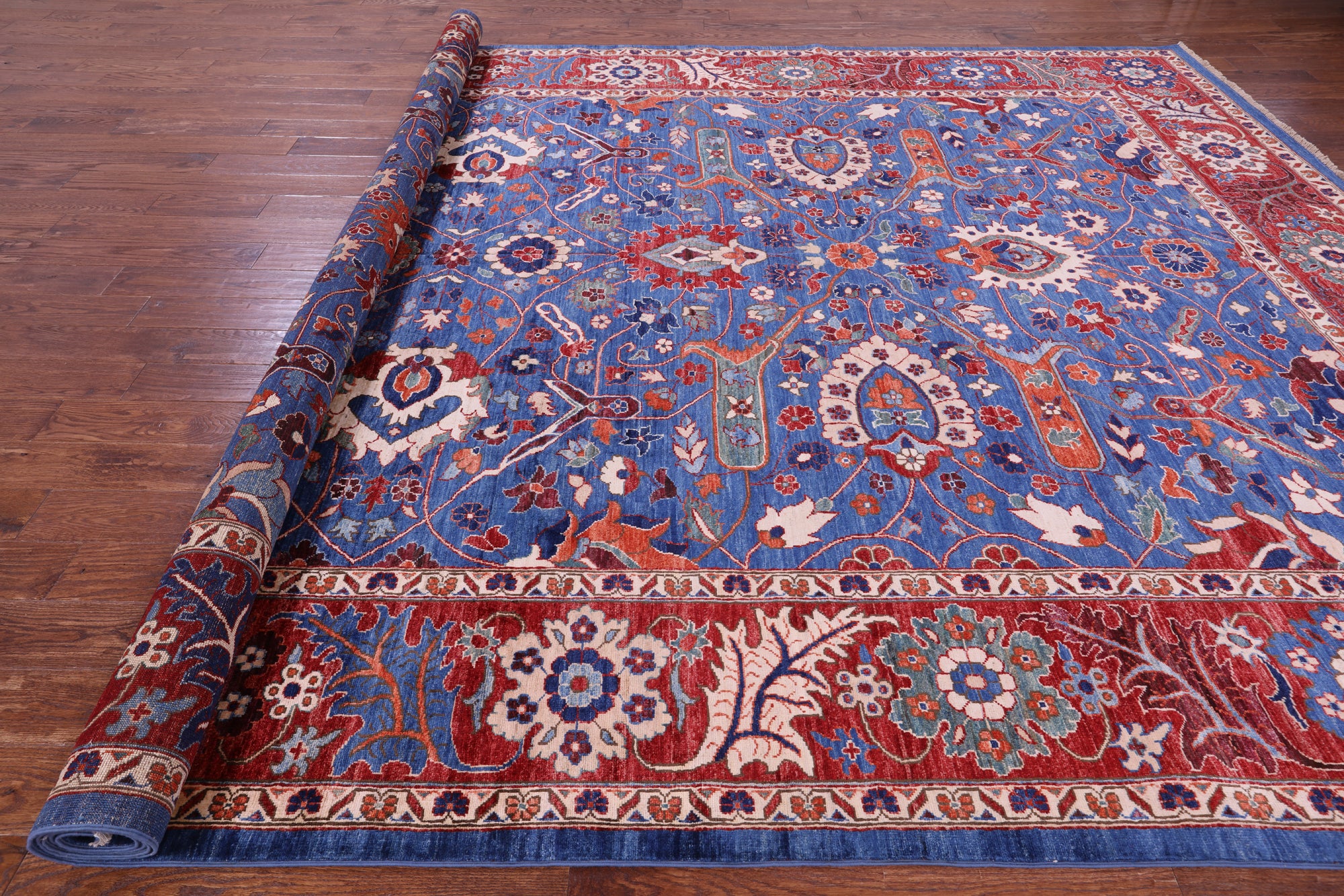 Serapi Rugs also known as Heriz, are known as the best handmade carpets with both geometric and curvilinear floral patterns. Their geometric figures, unique colors, high-quality construction and attention to detail makes Serapi Rugs the most iconic styles of Oriental Rugs. Their colors consist of unique shades of blue, black, red, green & ivory.
