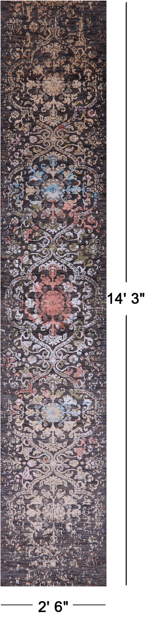 Persian Handmade Wool & Silk Runner Rug - 2' 6" X 14' 3"