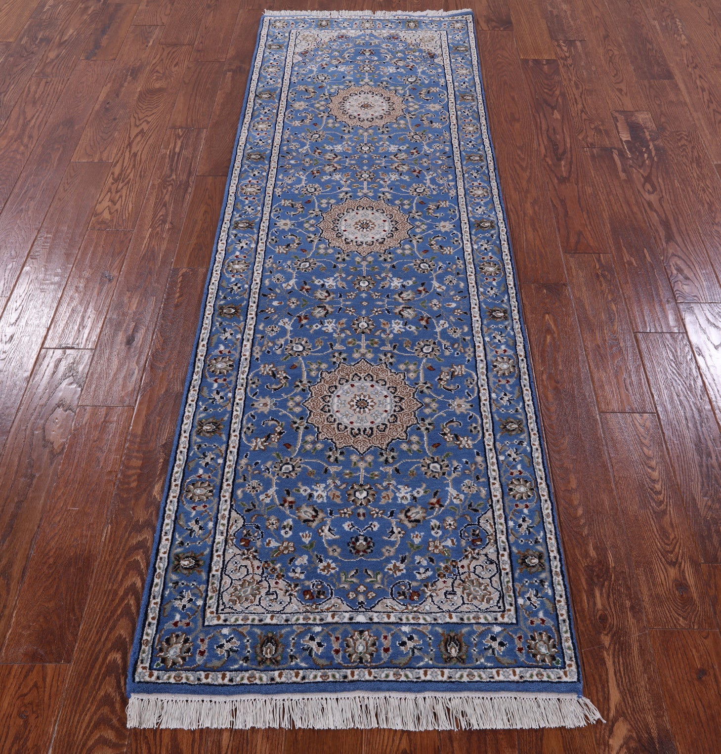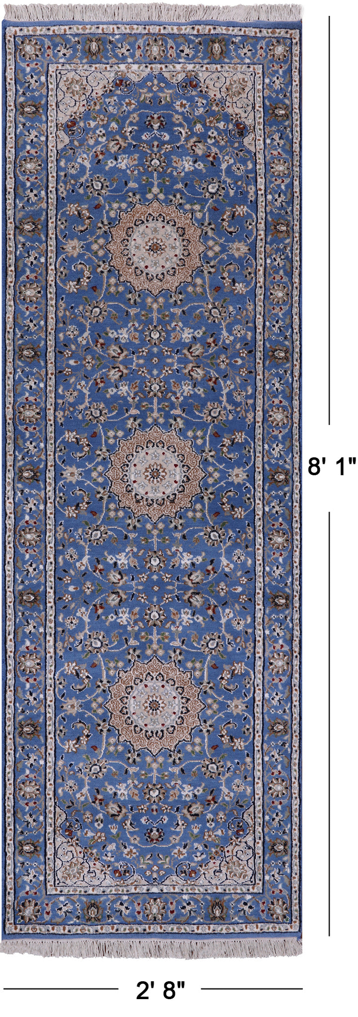Persian Nain Hand Knotted Wool & Silk Rug - 2' 8" X 8' 1"