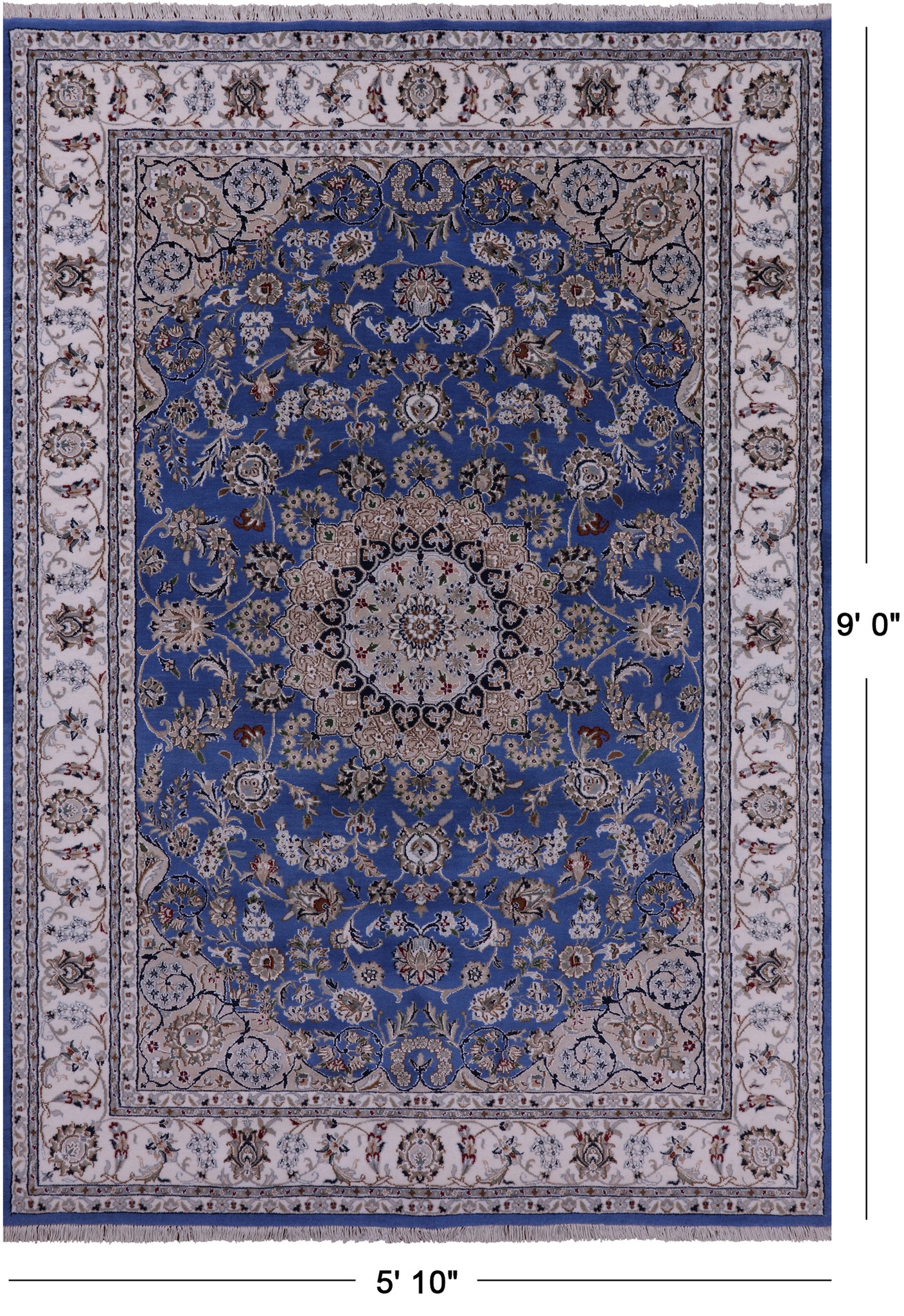 Persian Nain Handmade Wool & Silk Rug - 5' 10" X 9' 0"