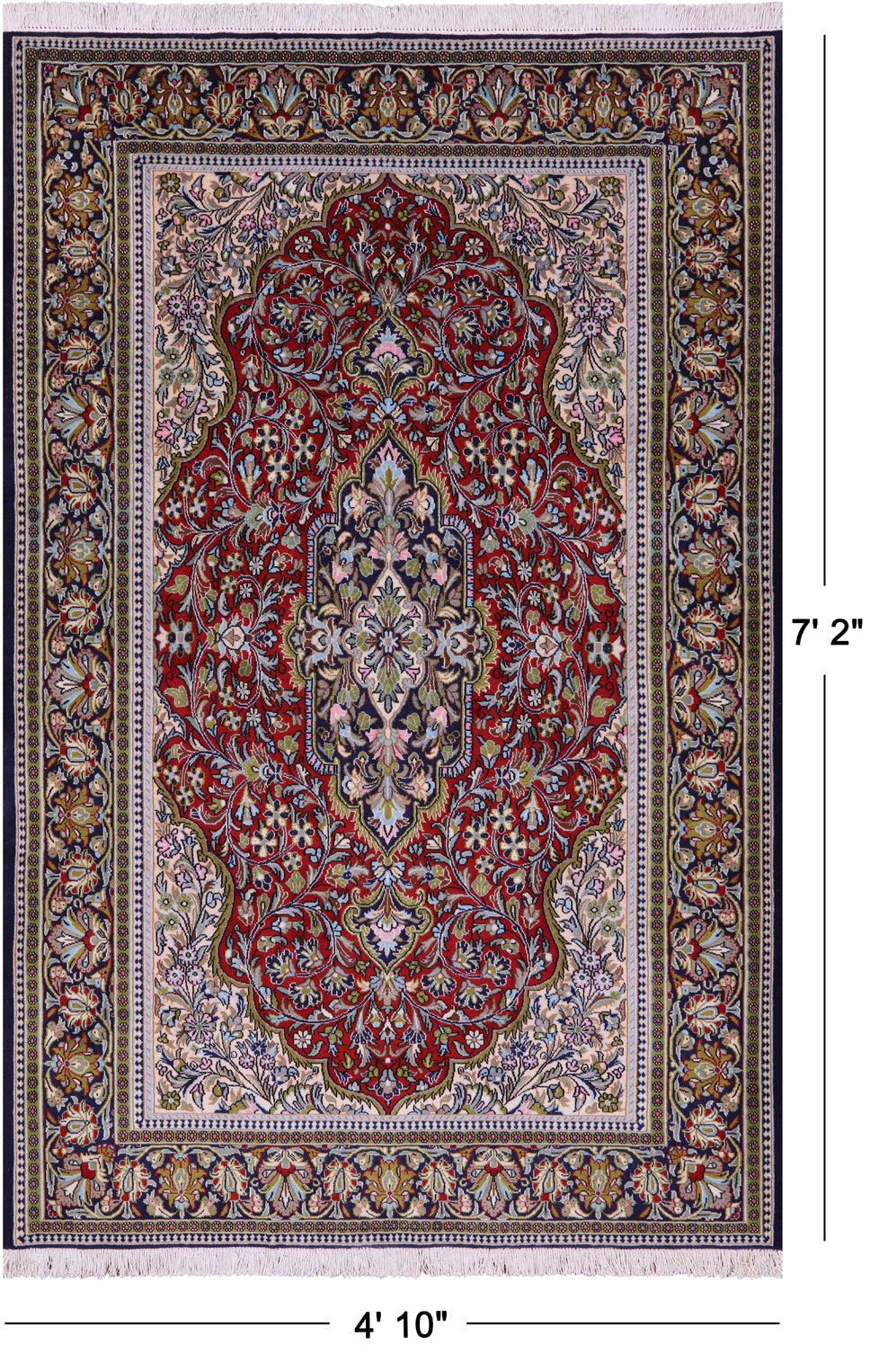 Persian Qum Hand Knotted Wool Rug - 4' 10" X 7' 2"