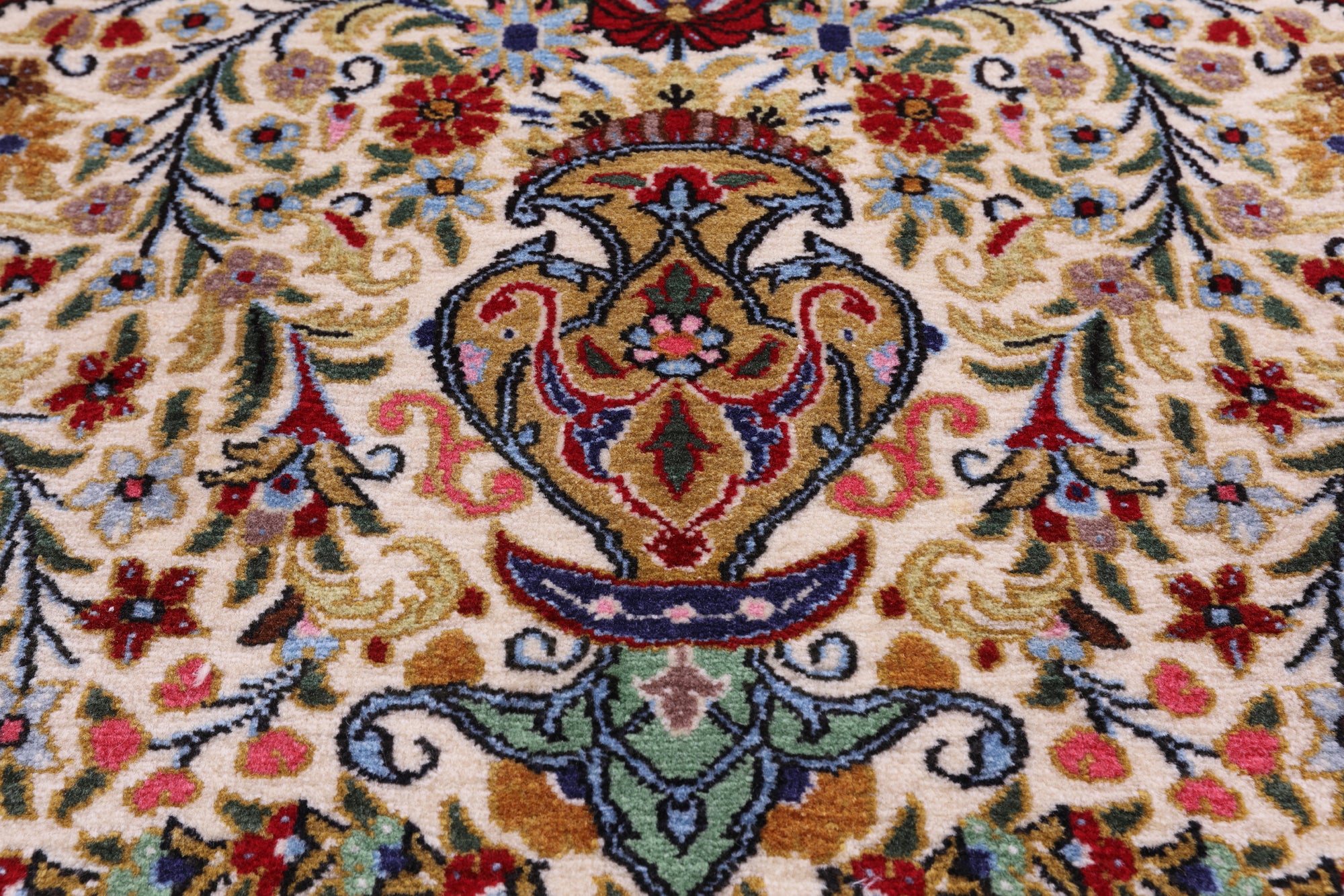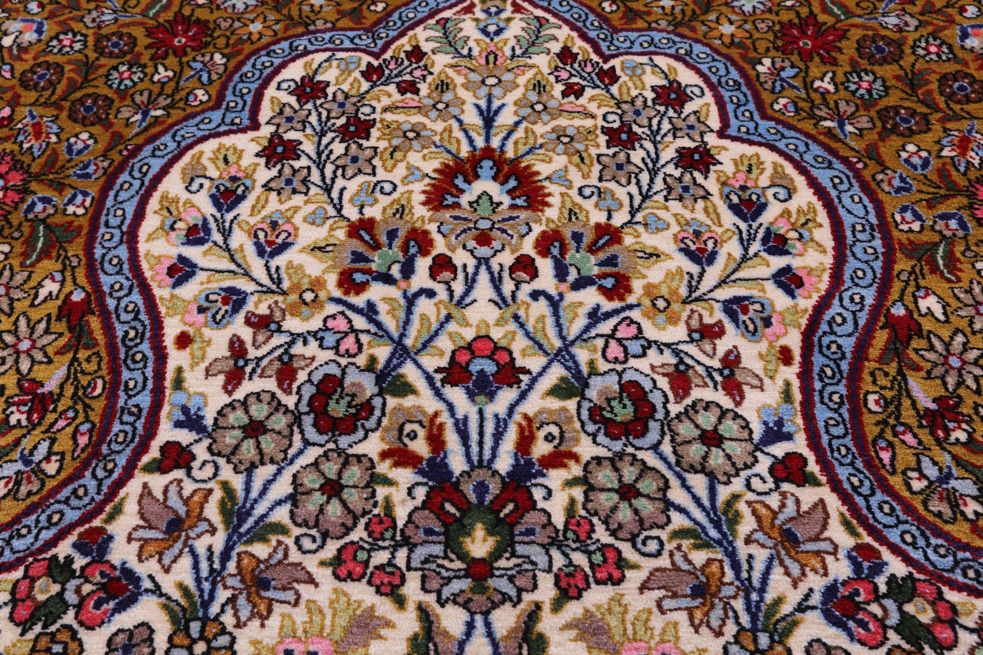 Qum Rugs known for their delicate patterns and refined craftsmanship, Qum rugs feature elegant designs woven from fine wool or silk. Their rich colors and detailed motifs bring timeless beauty and sophistication to any room.