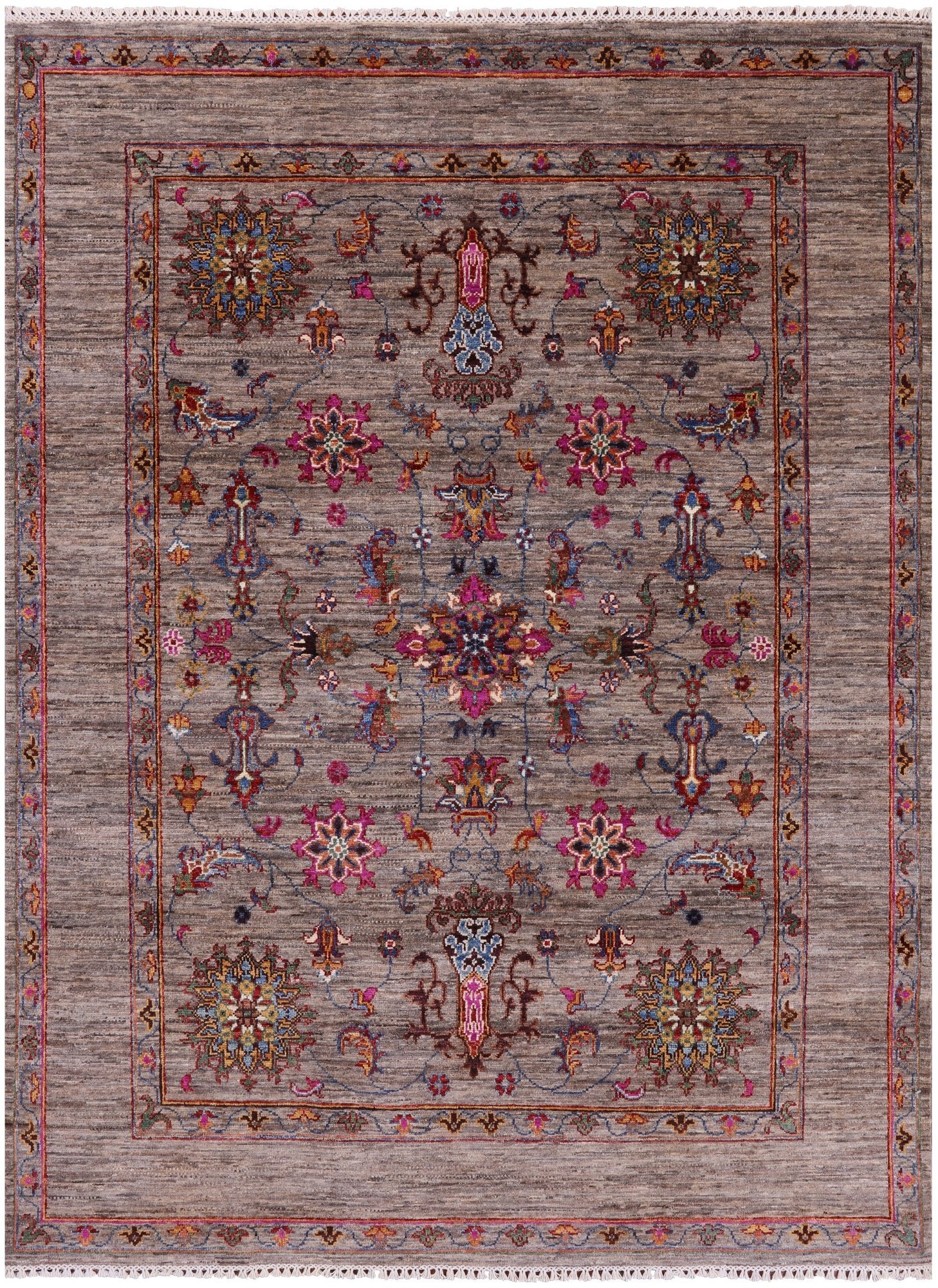 Persian Tabriz Hand Knotted Wool Rug - 5' 0" X 6' 7"