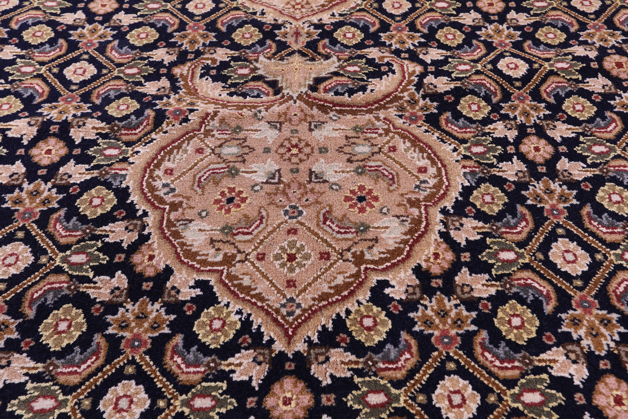 Tabriz Rugs are the most diverse and innovative in Persia due to its high-quality. Tabriz designs are hand-knotted with fine soft wool or silk, on a silk or cotton foundation, and may have either a thin silk, or wool pile. Their patterns consists of medallions surrounded by weeping willows, a cluster of trees and/or cypresses, arabesques (ornamental designs), and most popular, the four seasons used to depict the life of the Persian farmer. Their rich colors consist of red & blue with an ivory background, while newer Tabriz Rugs have softer colors such as green, blue and brown to correspond with modern interiors.