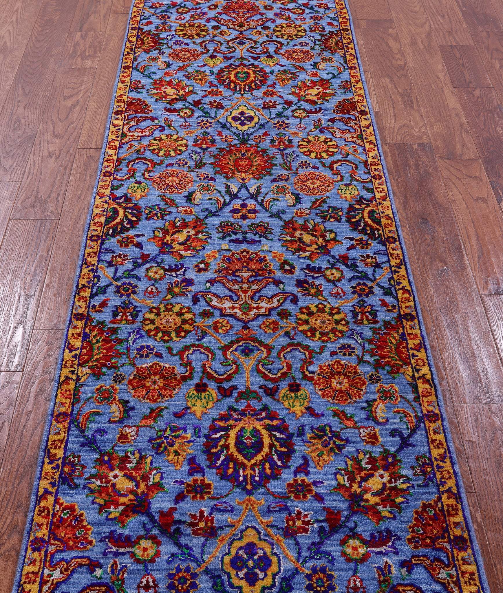 Blue Persian Tabriz Hand Knotted Wool & Silk Runner Rug - 2' 7" X 10' 2"